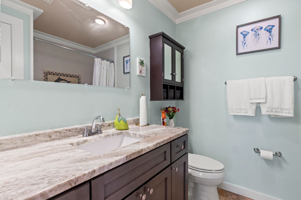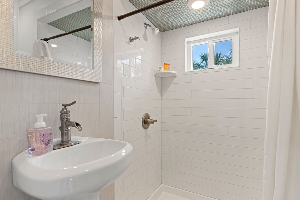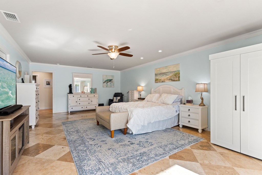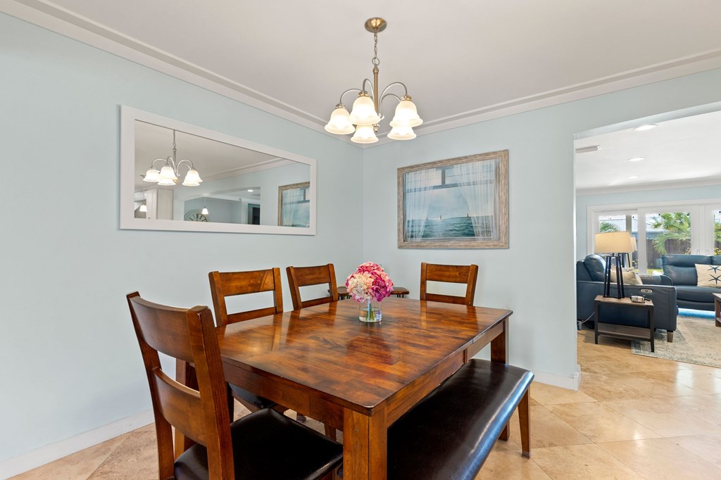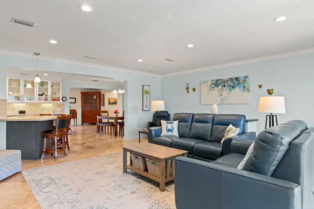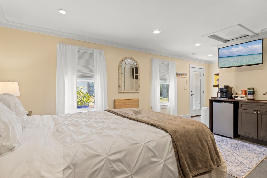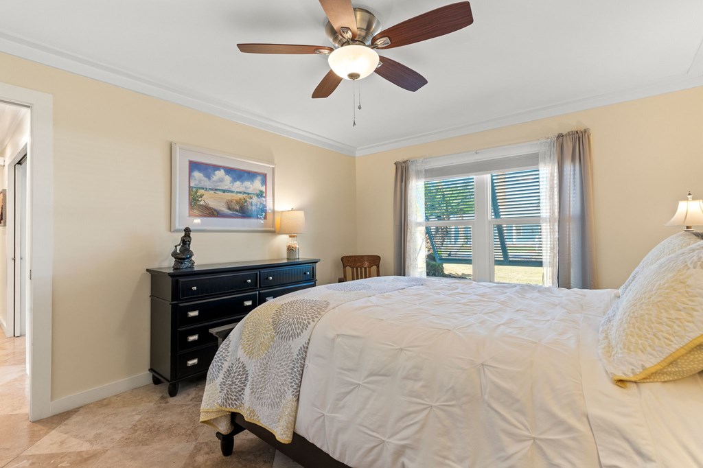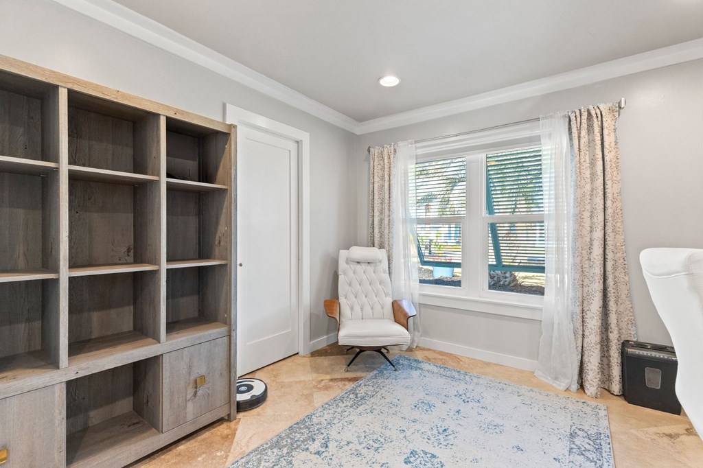 Welcome to Serenity on Seventh, a beautifully designed coastal retreat located just moments from the sugar-white sands of Mexico Beach. This thoughtfully designed property offers the perfect blend of comfort, privacy, and indoor-outdoor living with a unique courtyard-style layout. The main home features an inviting open floor plan with travertine flooring, crown molding, and abundant natural light throughout. The spacious living area is centered around a cozy fireplace with custom built-ins and a wet bar, creating an ideal setting for relaxing or entertaining. The kitchen flows seamlessly into the dining and living areas, enhancing the home's open and welcoming feel. Step outside to a beautifully landscaped courtyard-style backyard, where paver walkways, palm trees, and tropical landscaping create a private outdoor oasis. The large screened-in porch with ceiling fans and comfortable seating overlooks the courtyard and provides the perfect place to enjoy coastal breezes year-round. A rare and highly desirable feature of this property is the presence of two separate casitas, each offering private entrances and flexible living space. These guest suites provide excellent options for visiting family and friends, private home offices, or potential rental opportunities. Additional highlights include an outdoor shower, metal roof, paver patios and pathways, and a storage shed, all surrounded by well-maintained tropical landscaping that enhances the relaxed coastal atmosphere. Whether you're looking for a primary residence, a second home, or a property with income potential, Serenity on Seventh offers a unique opportunity to enjoy the laid-back lifestyle of Mexico Beach.