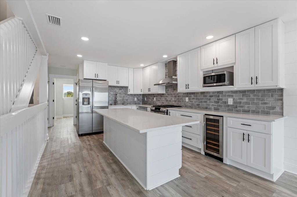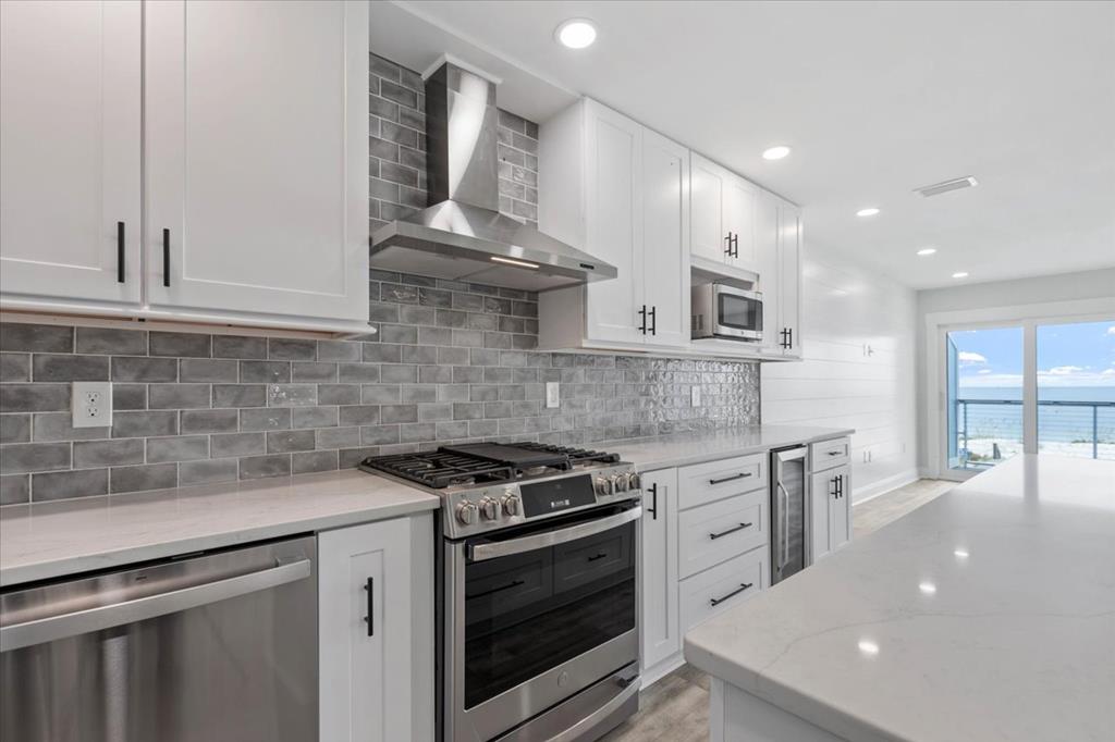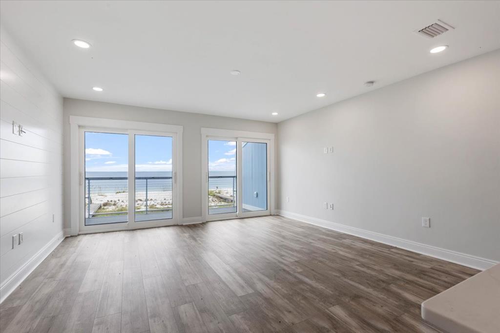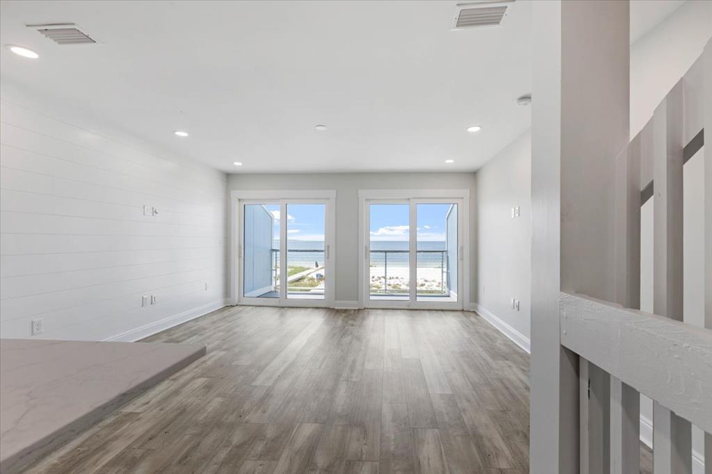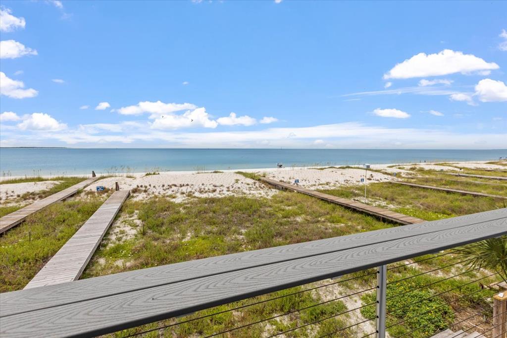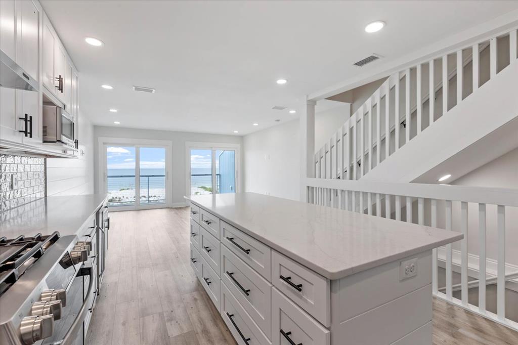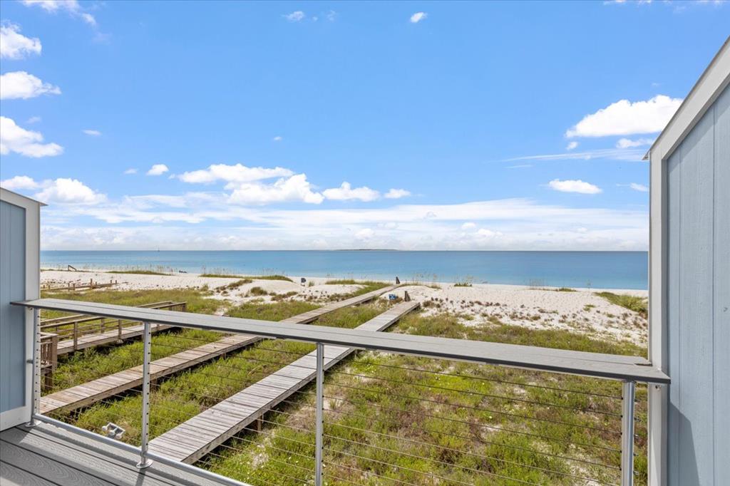 Experience coastal luxury with this stunning 3-bedroom, 3-bathroom townhome on St. Joe Beach, meticulously rebuilt by Anglin Built, LLC to blend resilience with refinement, perfect for beachside living. Step inside to discover coastal elegance. The gourmet kitchen boasts GE appliances, quartz countertops, a gas cooktop with built-in air fryer, and a wine fridge. A spacious pantry ensures ample storage for culinary essentials. Relax in the living room featuring a custom shiplap accent wall. Each floor offers a deck with Gulf front views, ideal for dining, sunbathing, or stargazing under the clear night sky. The primary suite includes a private water closet and tankless water heater for endless hot showers. A convenient top-floor laundry closet enhances household efficiency. Enjoy deeded beach access and low HOA fees, ensuring convenience and affordability without compromising on luxury. Additional amenities include a storage closet on the parking level, perfect for fishing gear and beach essentials. Completed in May 2024, this home is part of a 13-unit complex which is within easy walking distance to dining, shopping and entertainment. Also, remember that Gulf County beaches are pet friendly, so your doggies are welcome.