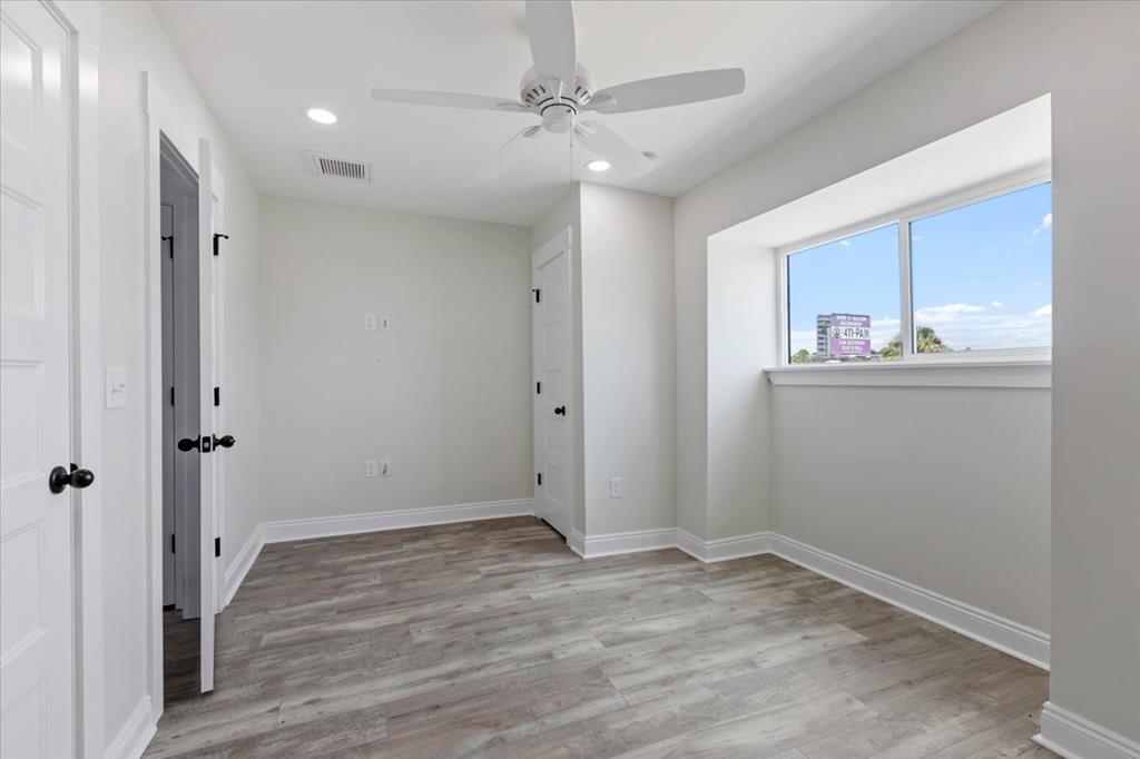 From Hwy 386 and US 98 go East on 98 past Dollar G and Express Lane. Subject property directly across from Lookout Lounge. Fourth from the east end of the blue and white building.
