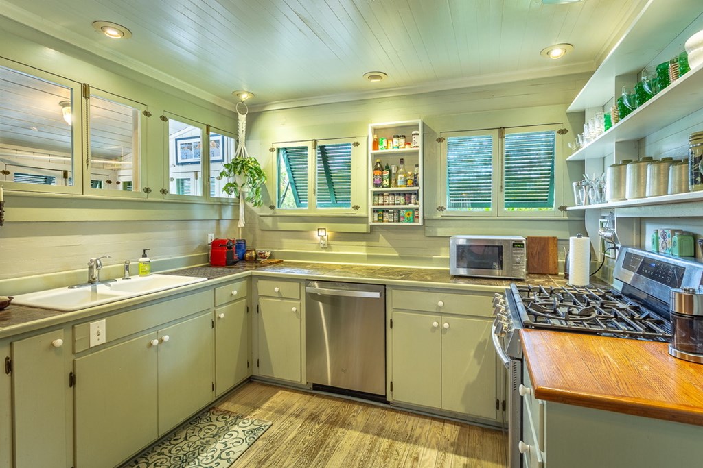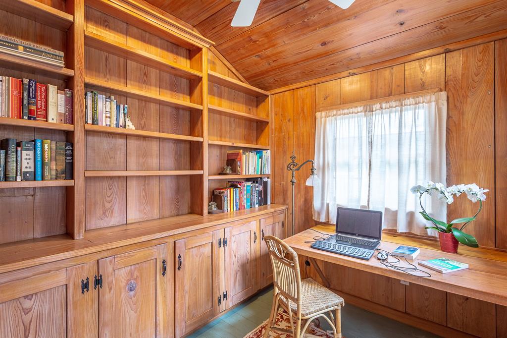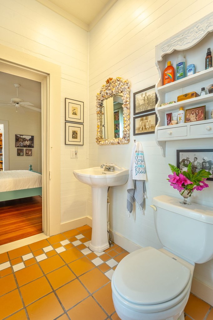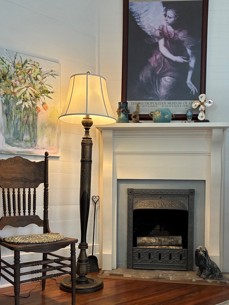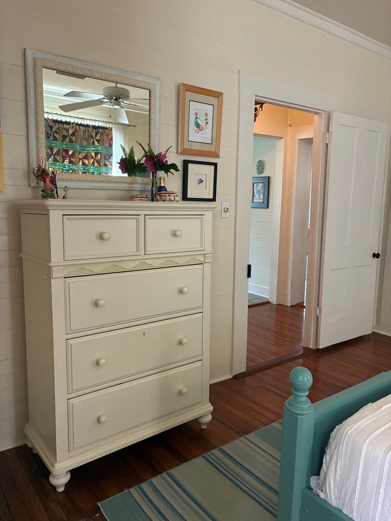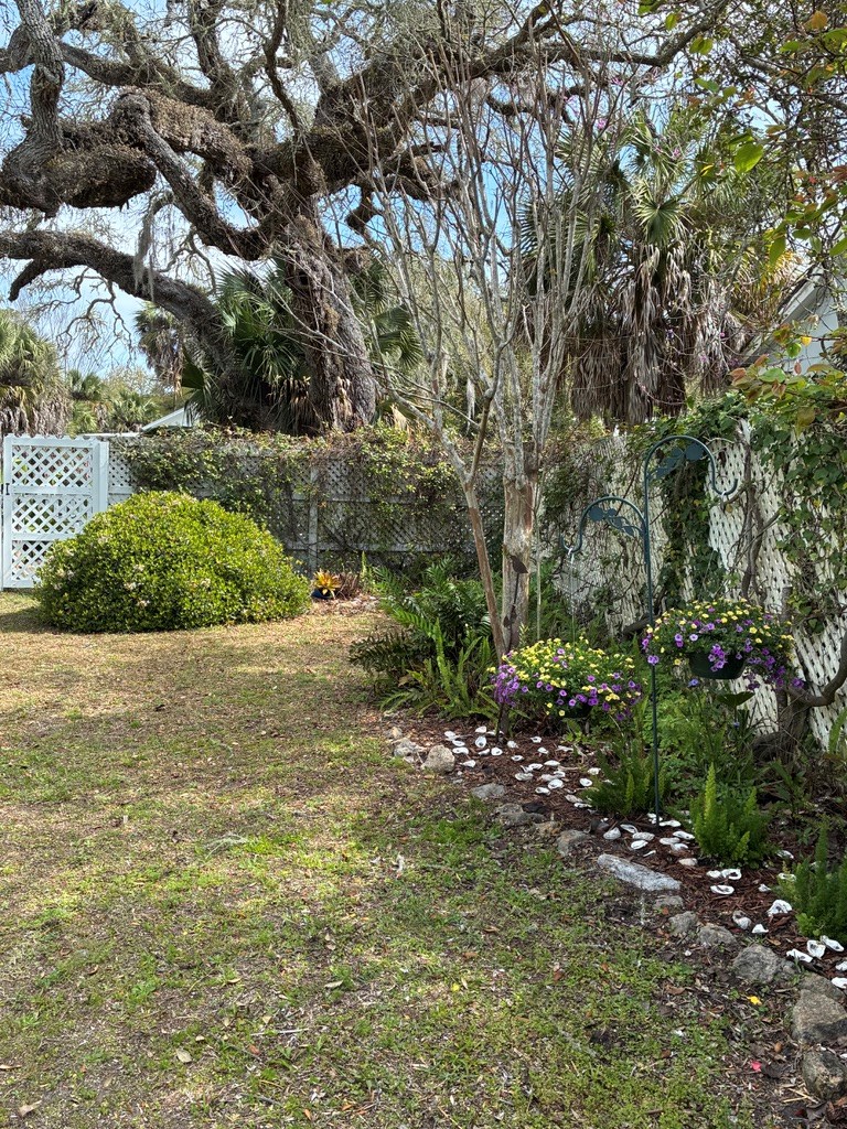 Step back in time with this charming 1840s Florida Cracker Cottage in Apalachicola's treasured Historic Southside. Situated on a corner lot just two blocks from Battery Park City Marina, this beautifully preserved 3BR/2BA home blends authentic historic character with thoughtful modern updates. Believed to date to the mid-1840s, the home is a classic example of Florida vernacular architecture, featuring heart pine floors, cypress fireplace mantels, wood walls and ceilings, and many original windows that reflect the craftsmanship of the era. The front of the home began as a traditional two-pin design with twin chimneys, and around 1900 an additional structure was incorporated, creating the larger home seen today while preserving elements of the historic dog-trot layout. Inside, historic warmth and character shine throughout the living and dining areas, anchored by the unique angled corner fireplaces that once served both rooms. The cottage kitchen is filled with natural light and efficient working triangle with gas stove and stainless appliances. The kitchen opens to the laundry room and back screened porch, then to the charming brick patio and fenced yard. The detached shed/garage offers flexible space for golf cart storage plus a studio ideal for writing, sewing, or a private office. Recent improvements provide peace of mind, including a new heat pump, tankless water heater, water softener system, attic insulation, and Miami-Dade rated hurricane shutters on all windows and doors. Additional updates include exterior painting, rebuilt fencing, upgraded plumbing, and newer appliances. Enjoy the best of Apalachicola living sitting on the shady front porch enjoying bay breezes, just two blocks from riverfront views at Battery Park, downtown shops and restaurants. Rarely does a property combine nearly two centuries of history, preserved architectural detail, and modern updates in such a walkable, historic location.