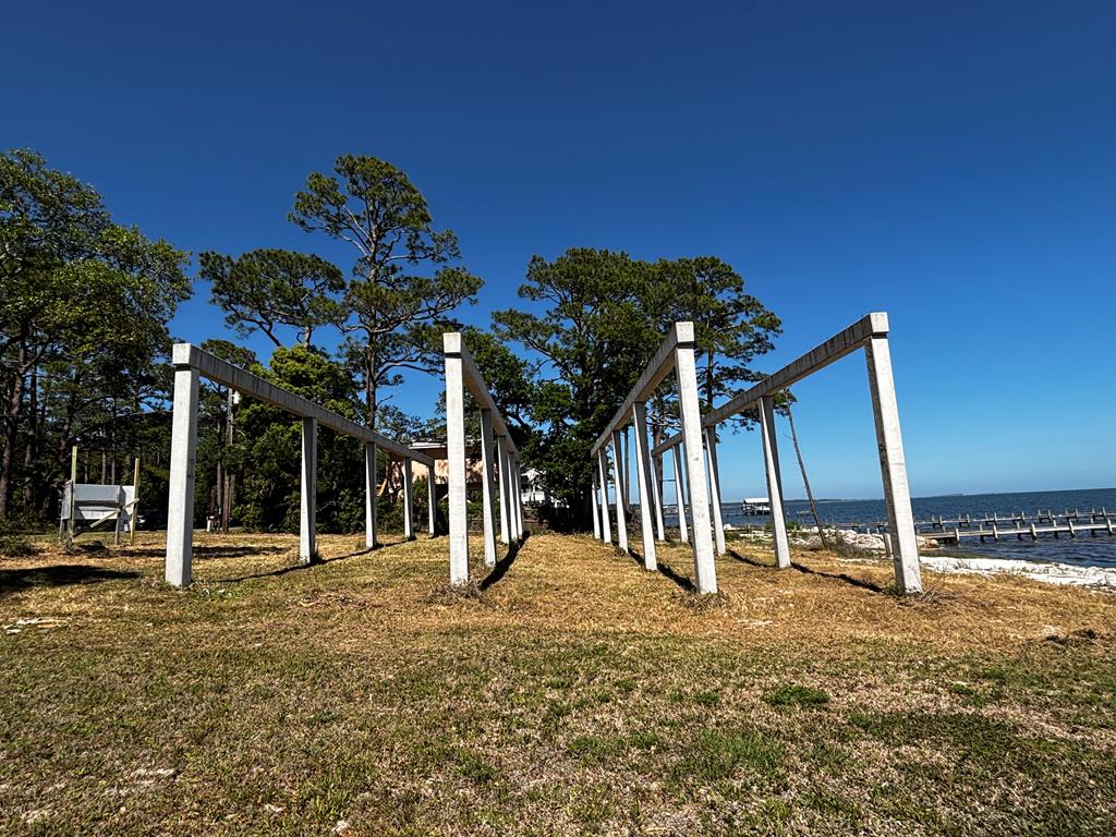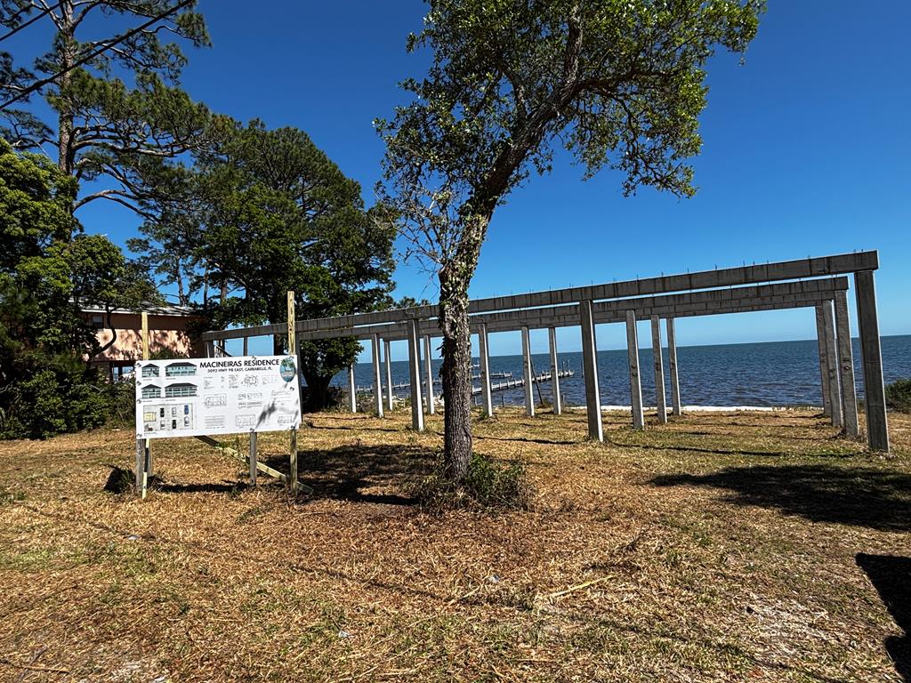 HUGE OPPORTUNITY TO PURCHASE NEW CONSTRUCTION BAY FRONT/GULF FRONT HOME. Pilings are in place - 3888 sq ft overall, 2176 sq ft heated area. Quartz countertops, porcelain tile floors, shaker cabinets, cleat pulls, farm sink, stainless appliances, Moen bath and kitchen fixtures, solid core interior doors, spray foam insulation, weatherproof ceiling fans, high impact windows, metal roof, storage room under house+++ Pick your paint colors, quartz countertop. Example of kitchen in photos is from another New Build. Too many items to list here. Architectural plans in attachments. Contact agent for more details. Owner will sell property AS IS for $287K, without anymore improvements. Waterfront Location, possible to get dock permit if desired. Perfect for fishermen!