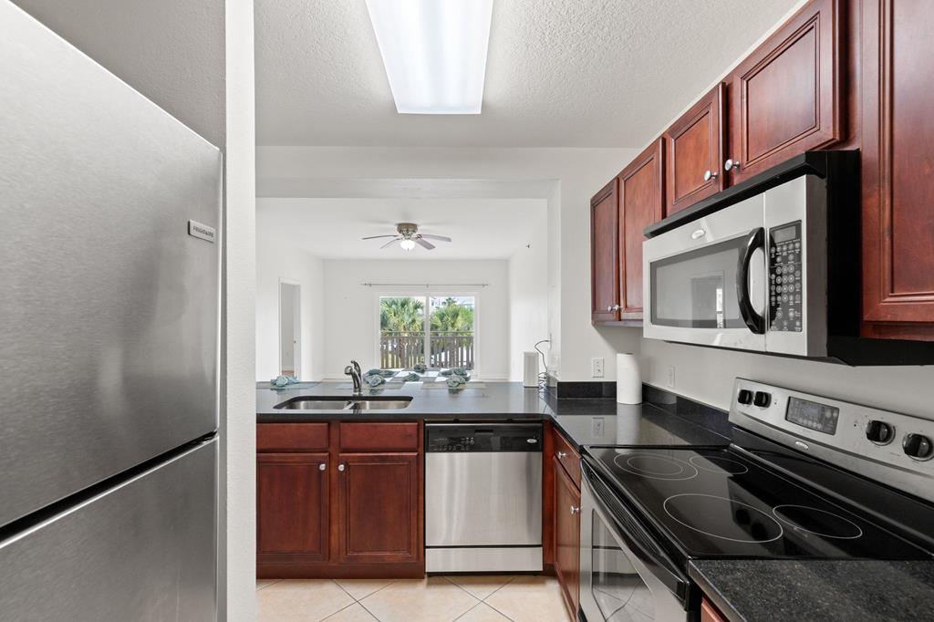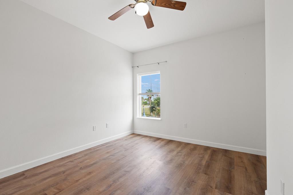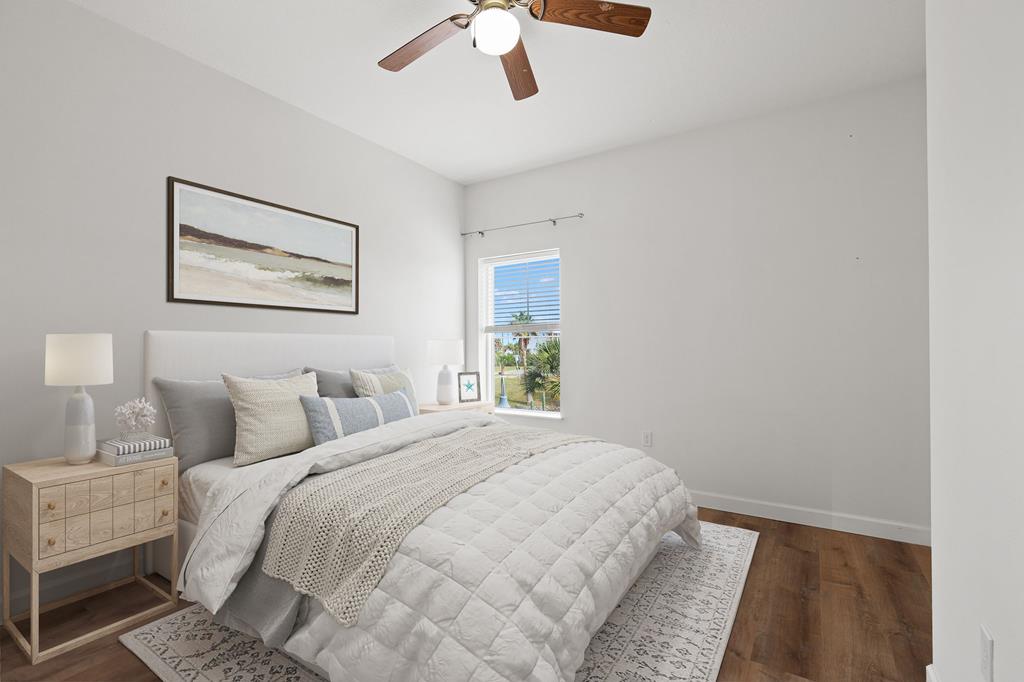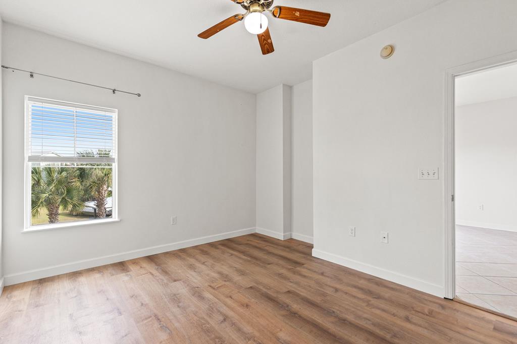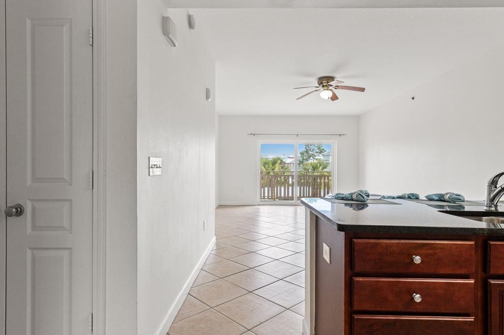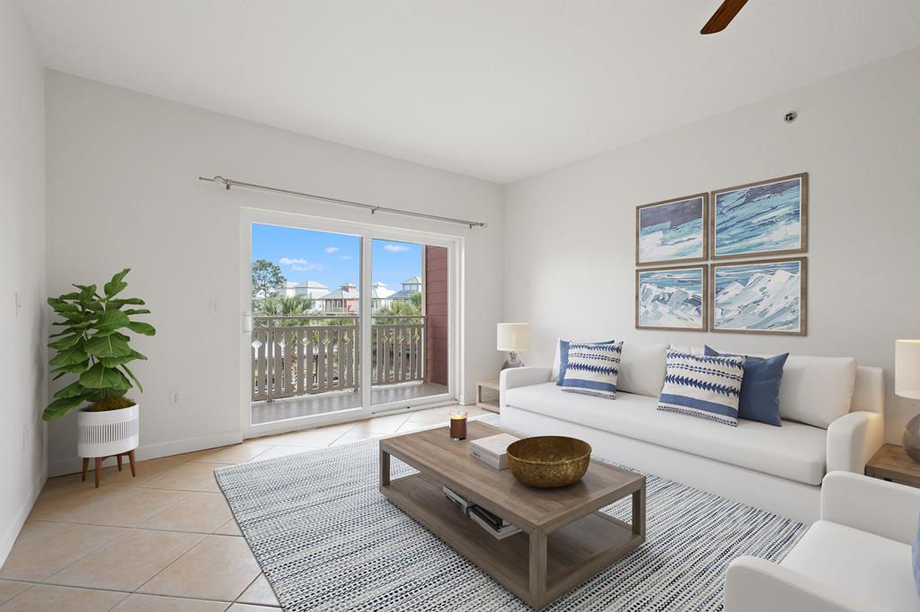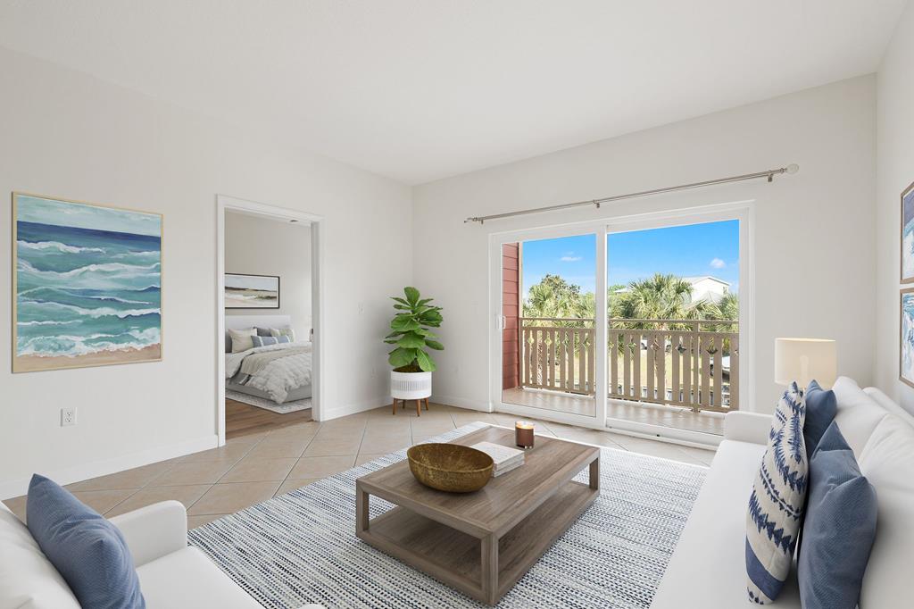 Welcome to Waterside Village-one of Mexico Beach's most desirable communities—where coastal charm meets easy, low-maintenance living. This vacant 2 bedroom, 2 bathroom condo offers a bright, open layout with soaring ceilings, abundant natural light, and a seamless flow from kitchen to living space. The kitchen is well-appointed with granite countertops, solid wood cabinetry, stainless appliances, and a breakfast bar that opens to the main living area—perfect for entertaining or casual coastal living. The space has been virtually staged to showcase its full potential, giving buyers an easy vision for furnishing and design. Step outside to your private covered balcony overlooking the resort-style pool, hot tub, and canal, framed by palm trees and coastal breezes—an ideal spot for morning coffee or evening relaxation. The spacious primary suite features a large closet and en-suite bath with dual vanities, while the second bedroom offers flexibility for guests, a home office, or rental use. Additional highlights include in-unit laundry, durable flooring throughout, and a functional split-bedroom layout. Waterside Village amenities include a beautifully maintained pool, hot tub, grilling area, and easy access to the canal. Located just a short walk or golf cart ride to the beach, dining, and local favorites, this property is perfectly positioned for full-time living, a second home, or a strong rental investment. Don't miss this opportunity to own a slice of the Forgotten Coast with water views and resort-style amenities.