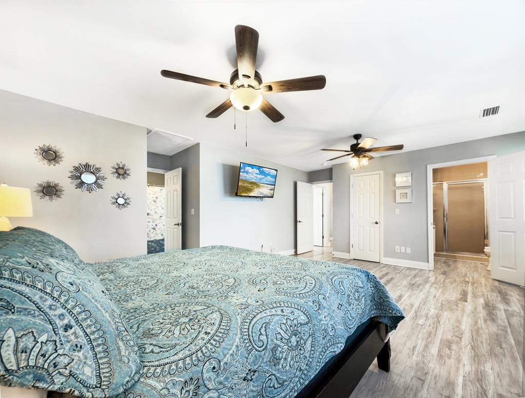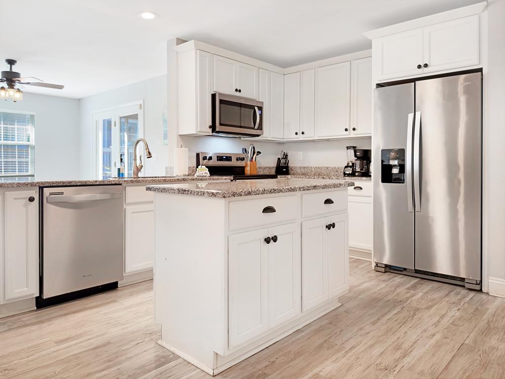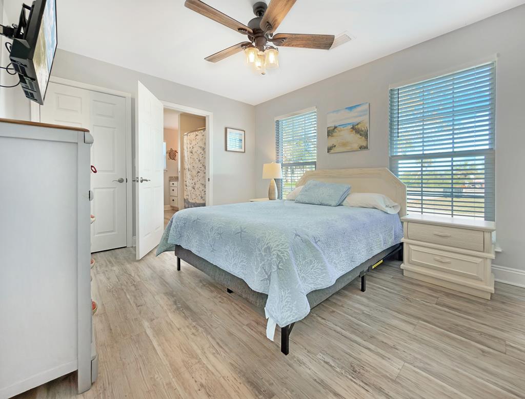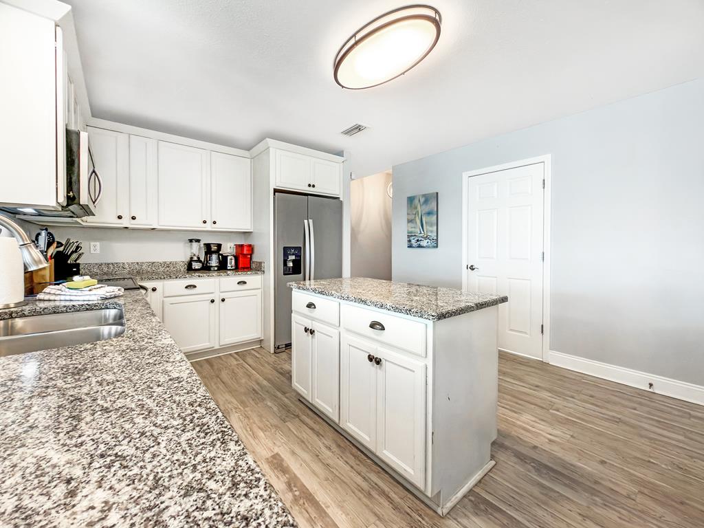 Just one block from the beautiful Gulf waters, this home on 22nd Street in Mexico Beach offers the kind of coastal lifestyle that is becoming harder to find—especially with the added benefit of being located in the desirable X flood zone, where flood insurance is not required. A standout feature is the brand-new metal roof, installed less than three weeks ago, providing immediate peace of mind and long-term value. Situated on a rare 100x100 lot (0.23 acres), this property offers exceptional space for this area, with plenty of room for guest parking, a boat, or simply enjoying a more open setting. The garage adds even more flexibility, perfect for storage or keeping a golf cart ready for quick trips to the beach. Inside, the home features a bright, open-concept design that creates a welcoming space for both everyday living and entertaining. With three generously sized bedrooms, including two with private ensuite bathrooms, along with a dedicated bunkroom, there is ample room for family and guests alike. The kitchen is thoughtfully designed with stainless steel appliances, recessed lighting, a breakfast bar, and a kitchen island, making it the heart of the home and an ideal place to gather. A spacious laundry room provides additional storage, while the sunroom-style back porch offers a peaceful retreat to enjoy your morning coffee or unwind in the evenings. The lush yard and simple, well-maintained landscaping create an inviting outdoor setting, complemented by views that add an extra touch of coastal charm. With its prime location near the beach, pickleball courts, and local shops, combined with a larger lot, recent upgrades, and a layout suited for both personal use and rental potential, this home presents a rare opportunity to own a truly versatile property in Mexico Beach.
