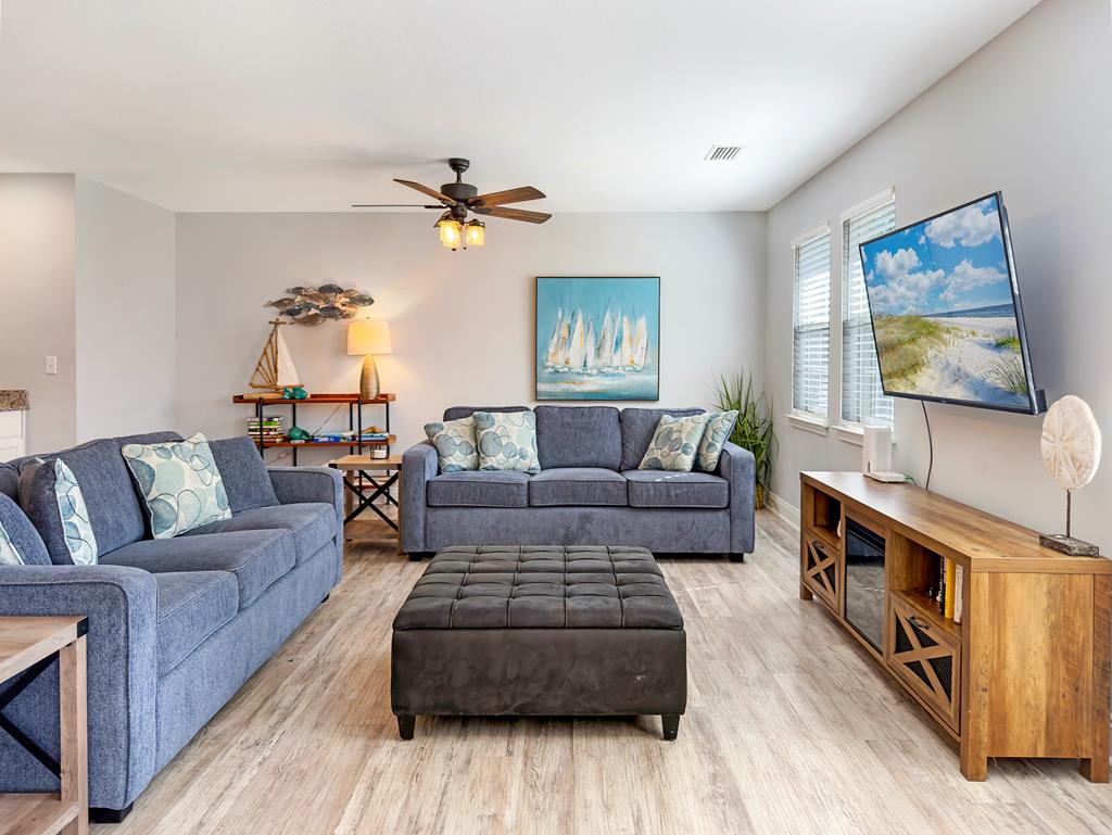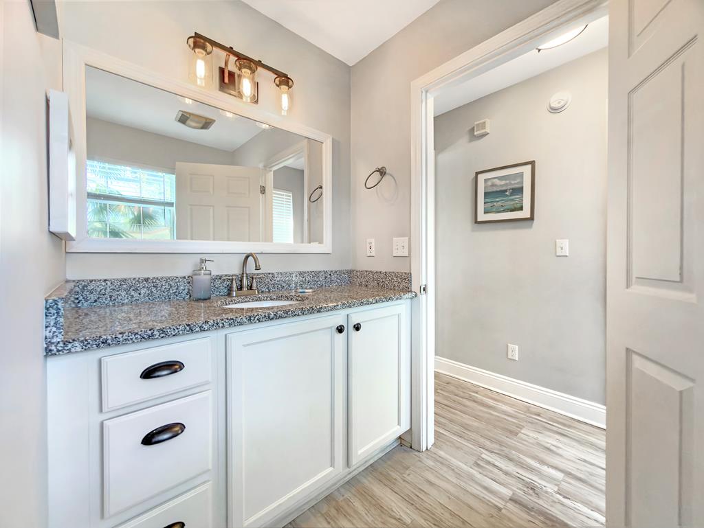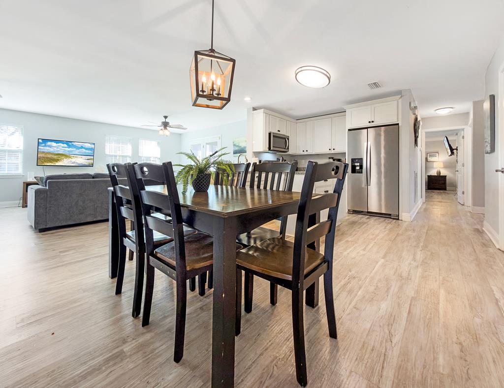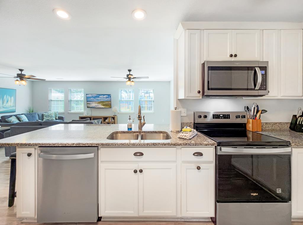 Just one block from the beautiful Gulf waters, this home on 22nd Street in Mexico Beach offers the kind of coastal lifestyle that is becoming harder to find—especially with the added benefit of being located in the desirable X flood zone, where flood insurance is not required. A standout feature is the brand-new metal roof, installed less than three weeks ago, providing immediate peace of mind and long-term value. Situated on a rare 100x100 lot (0.23 acres), this property offers exceptional space for this area, with plenty of room for guest parking, a boat, or simply enjoying a more open setting. The garage adds even more flexibility, perfect for storage or keeping a golf cart ready for quick trips to the beach. Inside, the home features a bright, open-concept design that creates a welcoming space for both everyday living and entertaining. With three generously sized bedrooms, including two with private ensuite bathrooms, along with a dedicated bunkroom, there is ample room for family and guests alike. The kitchen is thoughtfully designed with stainless steel appliances, recessed lighting, a breakfast bar, and a kitchen island, making it the heart of the home and an ideal place to gather. A spacious laundry room provides additional storage, while the sunroom-style back porch offers a peaceful retreat to enjoy your morning coffee or unwind in the evenings. The lush yard and simple, well-maintained landscaping create an inviting outdoor setting, complemented by views that add an extra touch of coastal charm. With its prime location near the beach, pickleball courts, and local shops, combined with a larger lot, recent upgrades, and a layout suited for both personal use and rental potential, this home presents a rare opportunity to own a truly versatile property in Mexico Beach.
