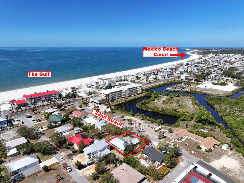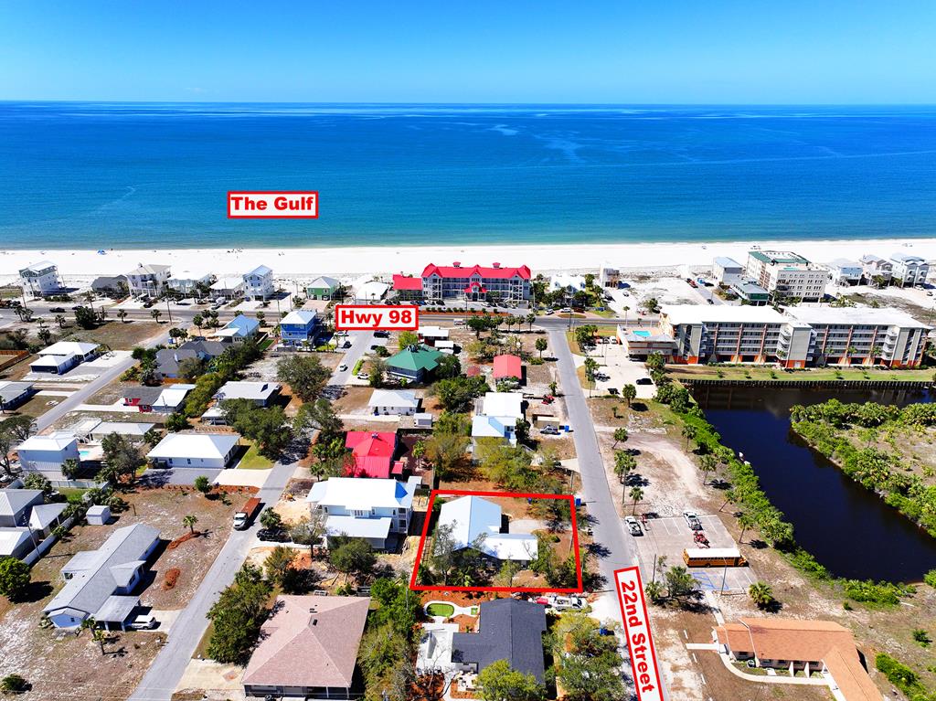 Tavel on Hwy 98 toward Panama City - take a right onto 22nd Street (across from the Driftwood Inn). The home is on the right - look for the sign.