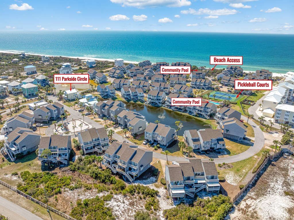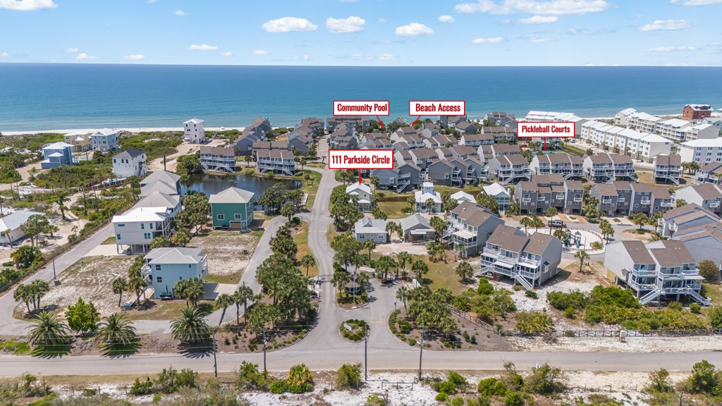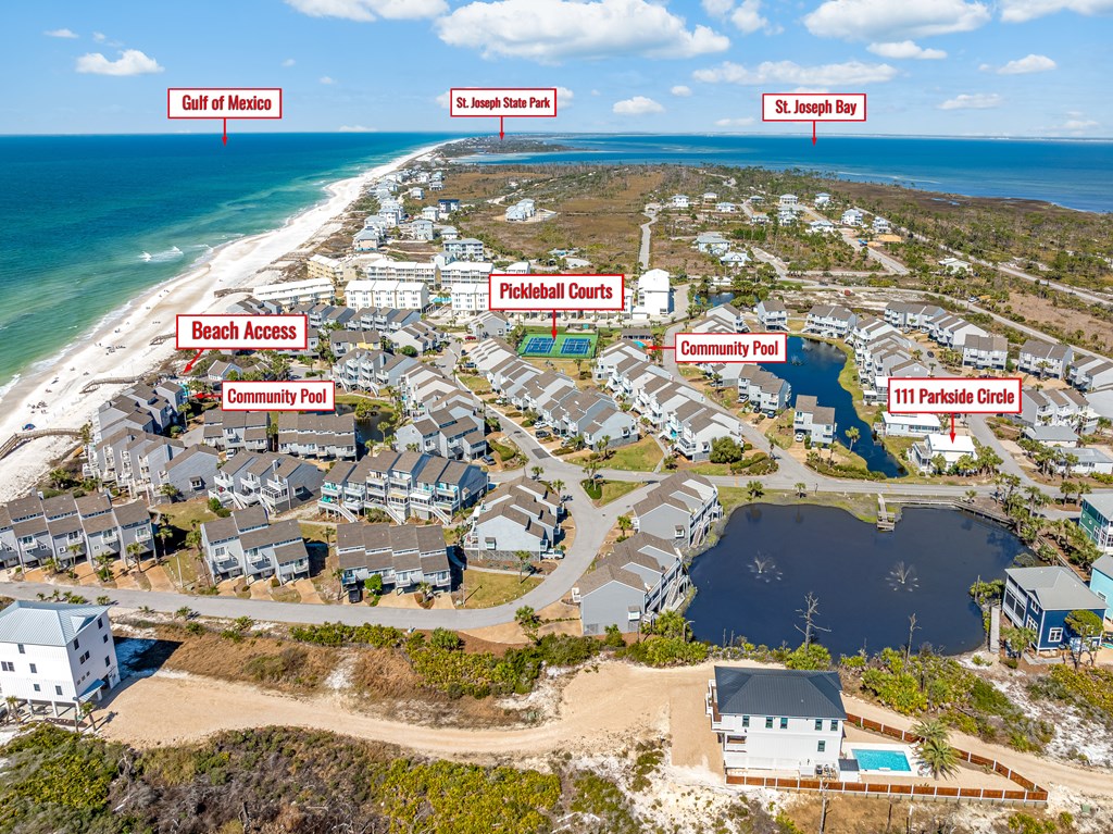 From HWY 98 turn onto SR 30-A. Go for 6.7mi and turn onto Cape San Blas Rd. Go for 8.7mi and turn left onto Seacliff Dr. Go for half a mile and turn left onto Barrier Dunes Dr. Make first right onto Parkside Circle home is on the corner to your left.