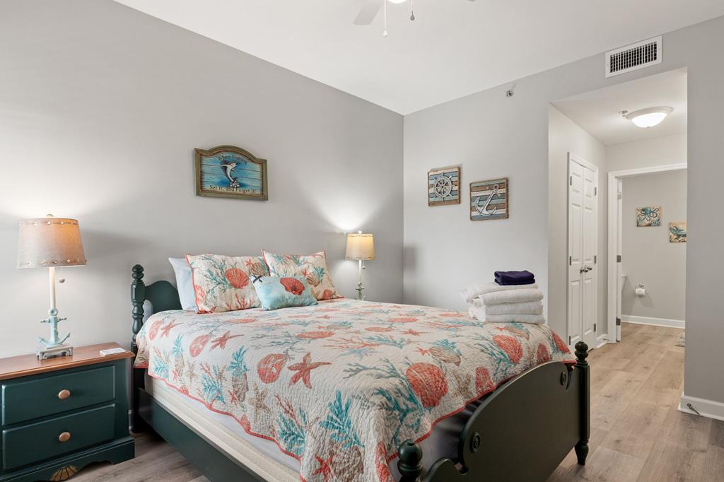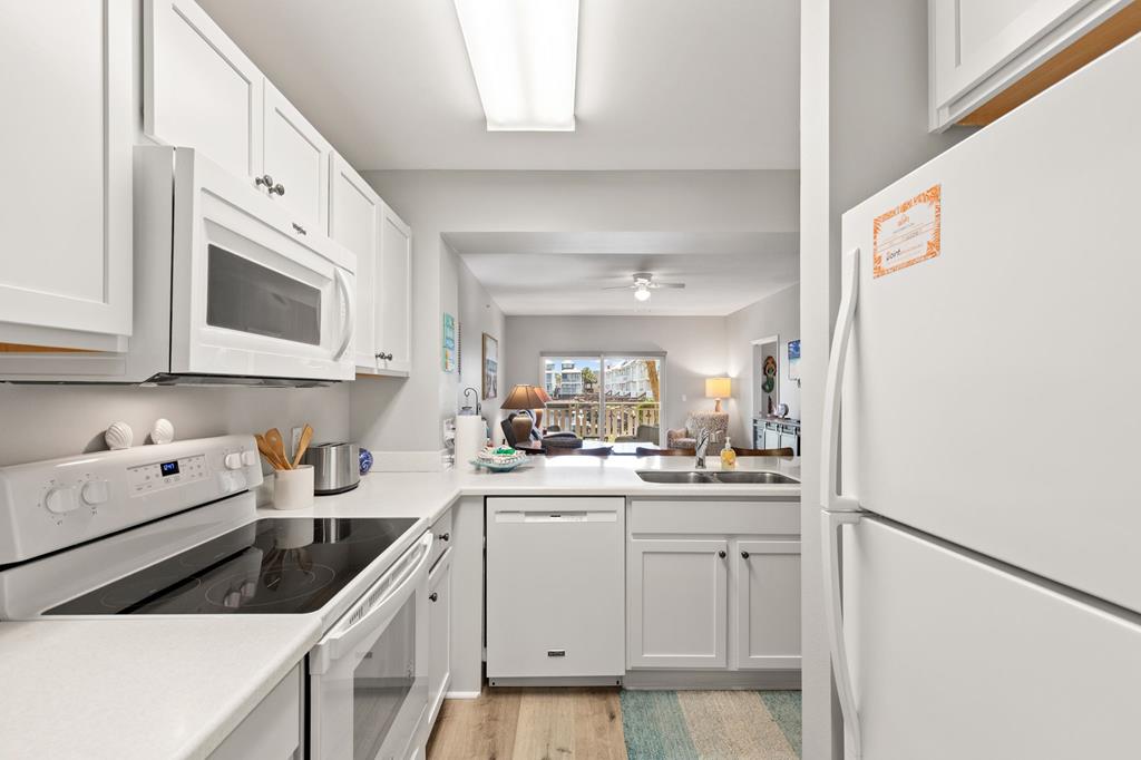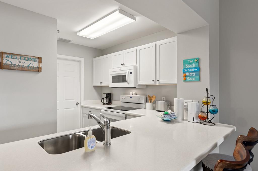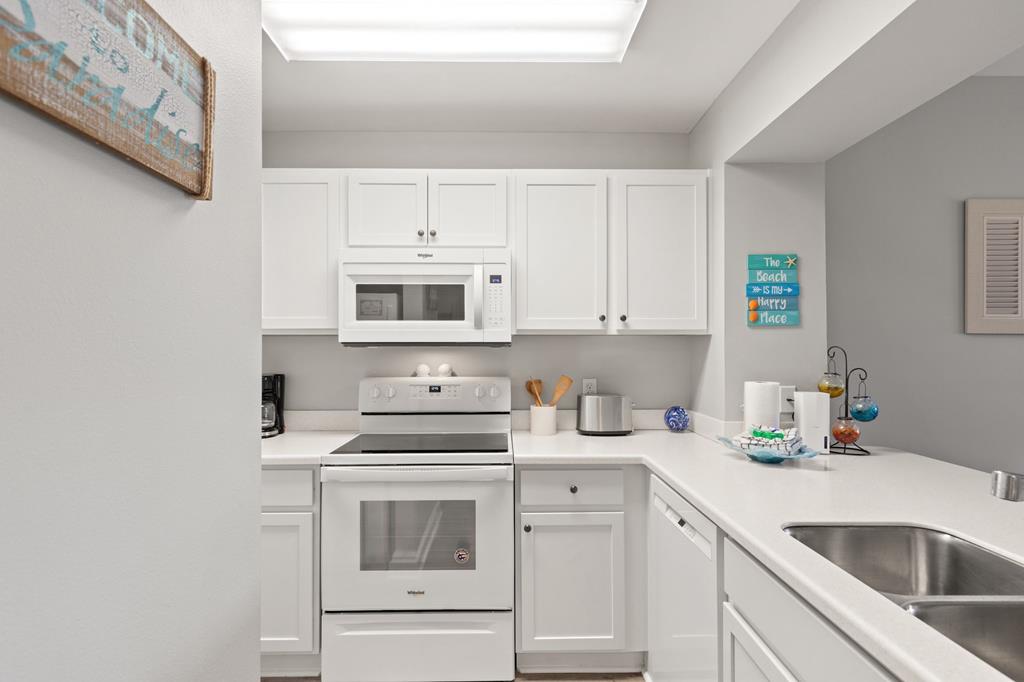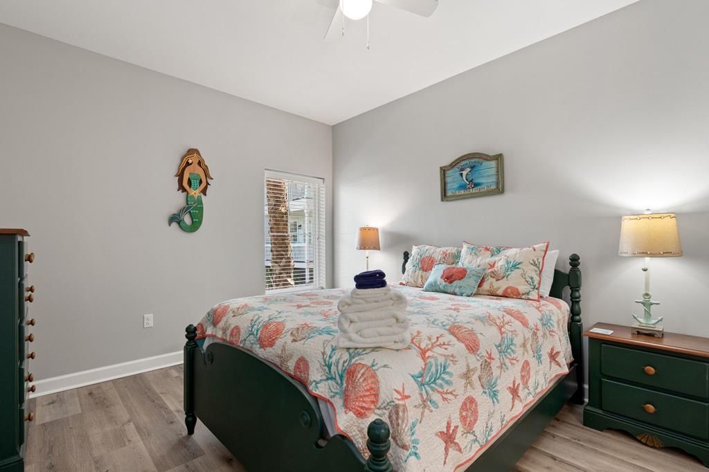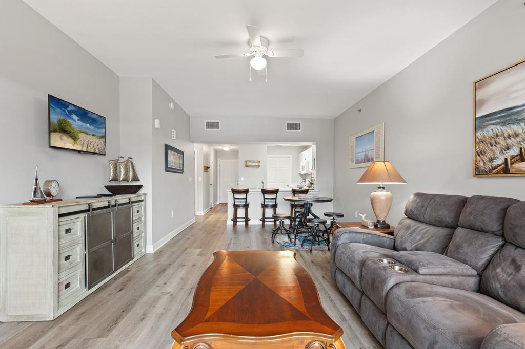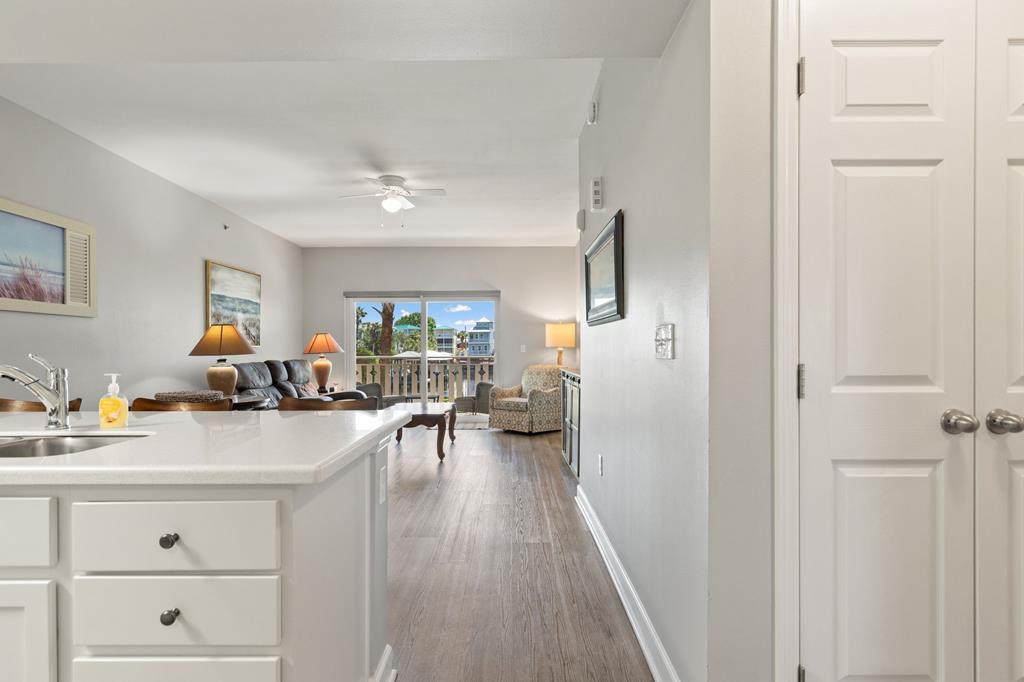 Welcome to coastal living at its finest in Waterside Village! This beautifully maintained 2 bedroom, 2 bathroom first-floor condo—no waiting on an elevator—offers the perfect blend of comfort, convenience, and waterfront lifestyle. Step inside to an open-concept layout featuring a bright kitchen with ample cabinetry, breakfast bar, and seamless flow into the spacious living and dining areas—ideal for entertaining or relaxing after a day on the water. Enjoy easy ground-level access and take in peaceful canal views from your private covered patio. Perfectly positioned just steps from the water, this unit is surrounded by palm-lined walkways and coastal charm. The primary suite offers a private bath and generous space, while the guest bedroom is well-appointed for family or visitors. Additional features include in-unit laundry and tasteful finishes that make this property move-in or rental ready. Waterside Village amenities include a community pool, hot tub, and day docks along the canal—perfect for boating, fishing, or simply enjoying the waterfront lifestyle. Located in the heart of Mexico Beach, you're just a short walk or golf cart ride to the beach, dining, and local attractions. Whether you're looking for a full-time residence, vacation getaway, or investment opportunity, this condo checks all the boxes.