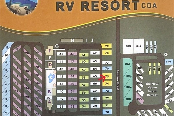 From Carrabelle head west on Hwy 98W until you come to Carrabelle Beach RV Resort turn right in to the parking lot then turn right go to the end and turn left look for the Happy Pelican