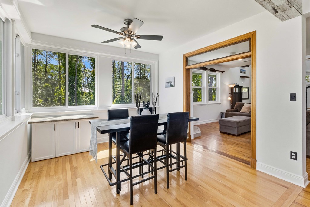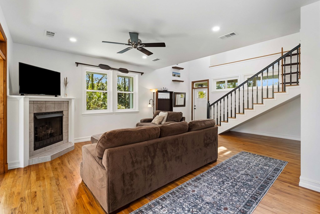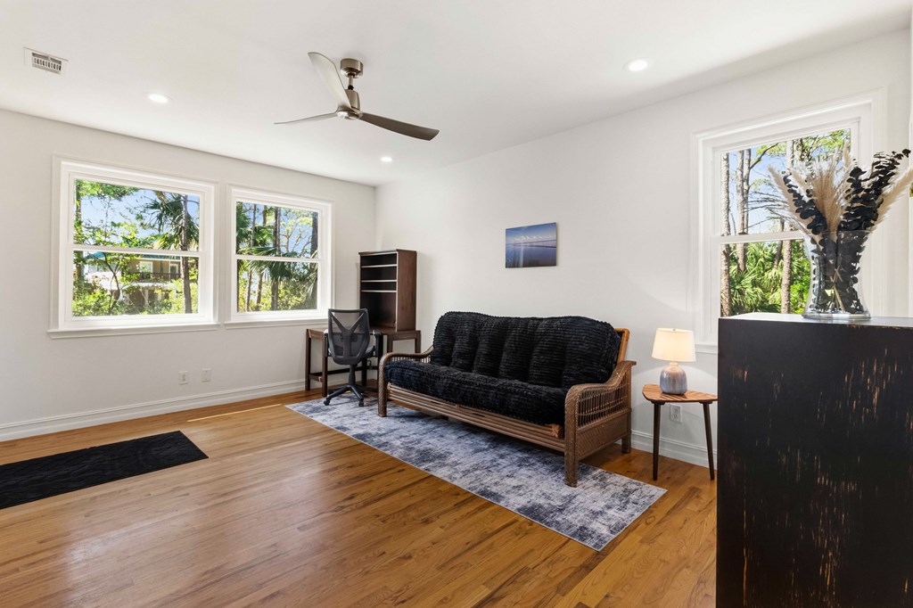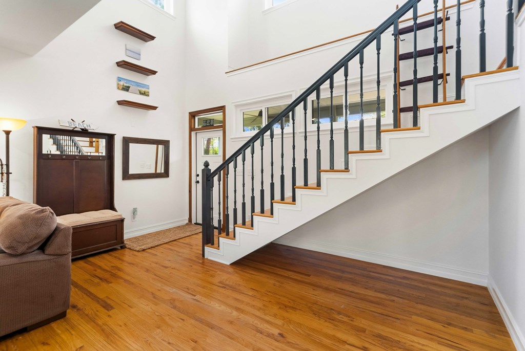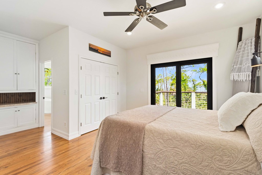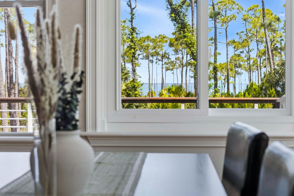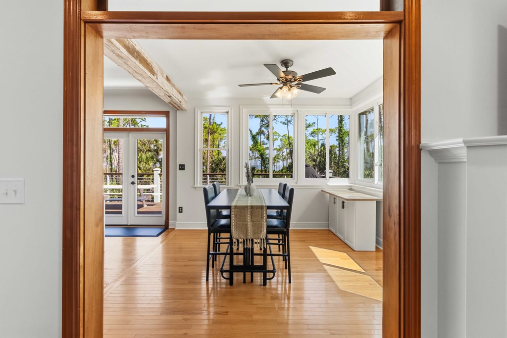 Stunning panoramic bay views from this jewel box custom home on St. George Island. This 2BR/2BA home looks out over protected state-owned land, so your view stays wide open—sunsets included—and access to the bay or beach is an easy stroll from your front door. Inside and out, there are many updates fit for modern living. Hardwood oak floors run throughout, and the layout is simple, bright, and easy to maintain whether you're here full time or using it as a second home. Both bedrooms offer privacy with loads of natural light, while the top-floor primary suite opens to its own deck—ideal for enjoying bay breezes with your morning coffee or winding down at the end of the day. Substantial updates have been recently completed: Hardie siding, impact-rated doors and windows, HVAC, hot water heater, gutters, new bathrooms, kitchen appliances and fresh paint inside and out. Two new rear decks—one on the main level and one off the primary suite—expand your outdoor living space without the upkeep, adding meaningful value and peace of mind. The property includes the adjacent lot, bringing the total to approximately .66 acres. The fenced yard with dual gates allows for easy drive-through access, with plenty of room for boat parking, gear storage, or future plans to build a neighboring house and create a family compound. Native landscaping and citrus trees keep maintenance low while attracting local wildlife—eagles, osprey, owls, peregrine falcons, red shouldered hawks, egrets, herons are regular visitors. Additional features include a ground-level storage room, outdoor shower, and outdoor shed. Having had only 2 owners and never used as a rental, this home has been carefully maintained as a full-time residence, however rentals are allowed. Being just 2.5 blocks to the Gulf beach and five blocks to favorite island restaurants and shops, this is an immaculate, updated coastal property with room to grow and views that will make you never want to leave!