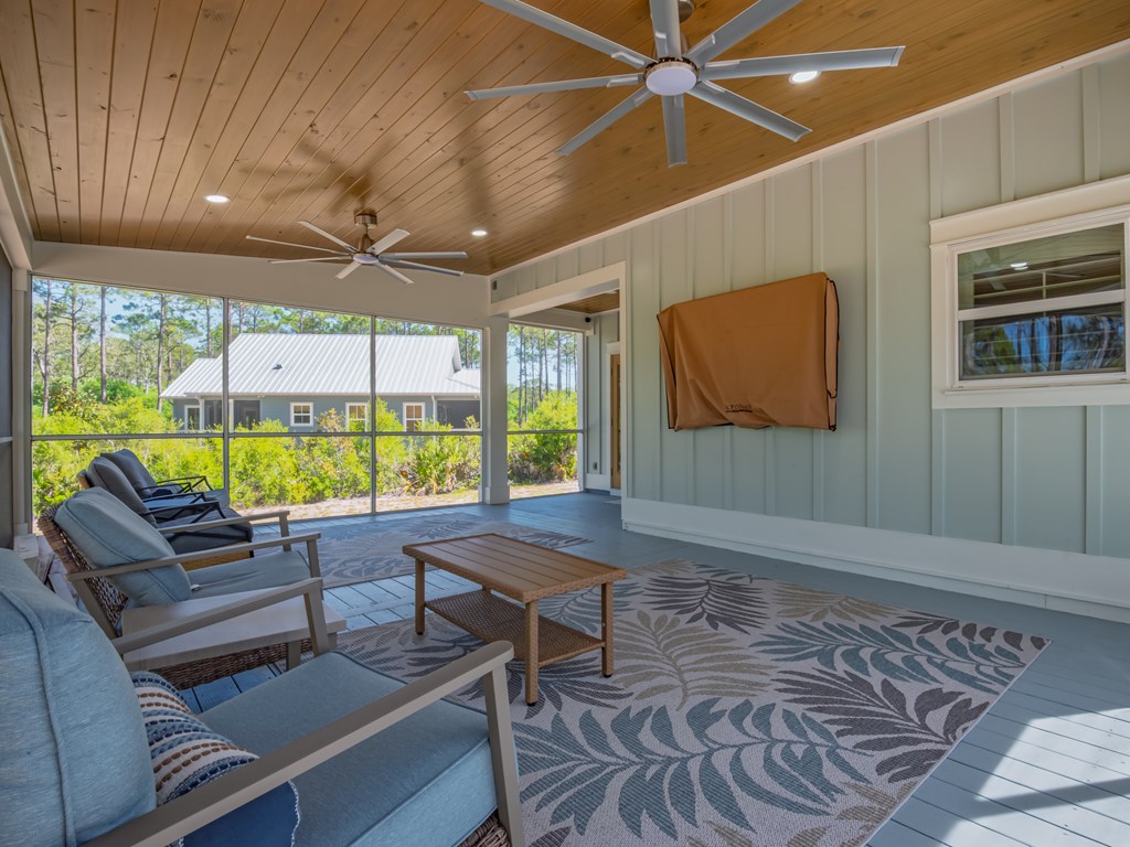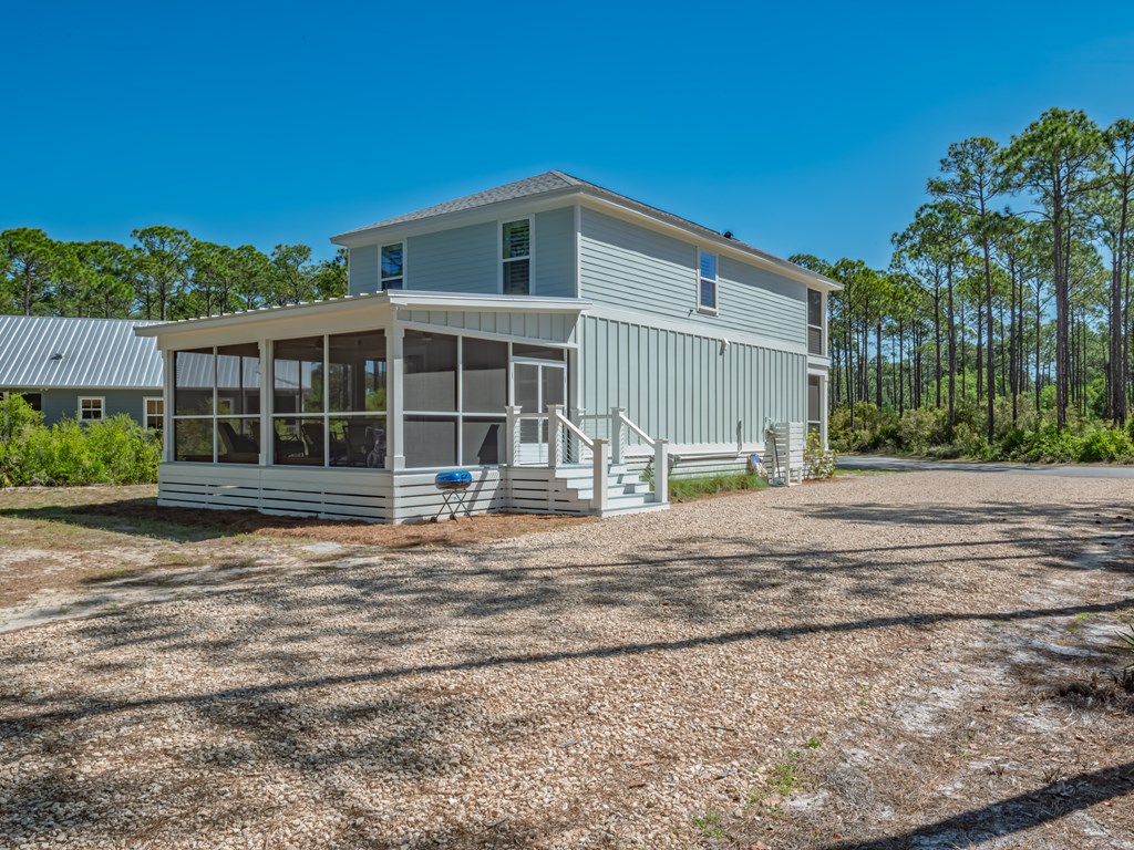 Welcome to 122 Treehouse Circle in the gated east side of SummerCamp Beach, a standout coastal community on Florida's Forgotten Coast known for its quiet beauty, private beach access, and preserved natural setting. Built in 2022, this 3-bedroom, 2.5-bath home offers 1,886 square feet of thoughtfully designed living space with a refined coastal feel and valuable owner upgrades throughout. Designed for relaxed indoor-outdoor living, the home features shiplap accents in multiple rooms and a huge screened porch spanning the entire rear of the house, creating an inviting extension of the living space and a perfect vantage point to enjoy the permanent greenspace behind the home. The backdrop of protected natural area adds a rare sense of privacy and serenity that buyers actively seek in SummerCamp Beach. A short golf cart ride from the community's white-sand Gulf beach, scenic boardwalks, and private beach club with pool and gathering areas, this property is well positioned for buyers searching for a Forgotten Coast beach house, SummerCamp Beach East home, gated coastal community, or a primary residence, second home, or vacation retreat in St. Teresa, Florida. SummerCamp Beach also has an active vacation-rental presence, as short-term rentals are allowed, giving this property added appeal for buyers seeking a second home with income-producing potential. SummerCamp Beach is known for its blend of Old Florida character, Gulf access, and preserved landscape. Official community materials describe more than 750 acres, a four-mile white-sand beach, and resident amenities that include the Beach Club pool, grills, showers, and lockers. Whether you are looking for a full-time home, a second-home escape, or an investment-minded coastal property, 122 Treehouse Circle offers a compelling opportunity in one ofSt. Teresa's most desirable gated communities.