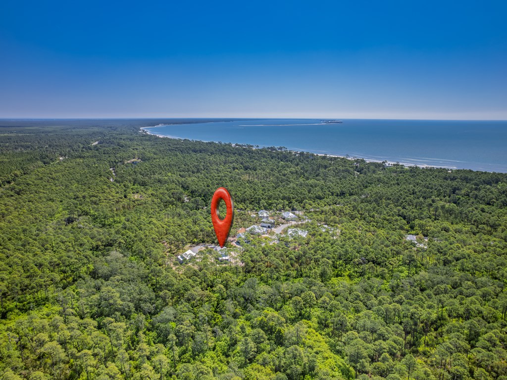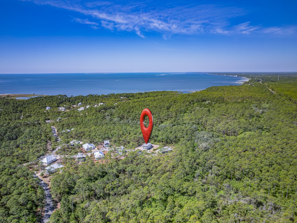 Hwy 98 to SummerCamp Rd, R on Fishhook, R on Treehouse