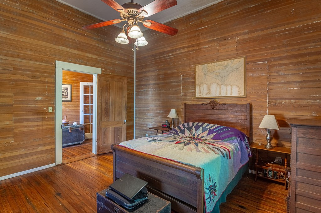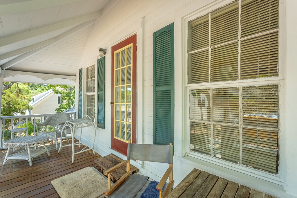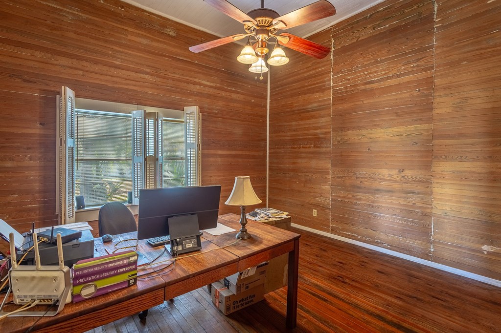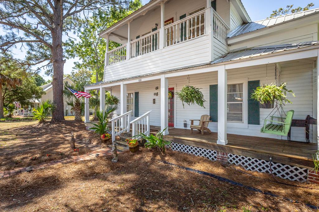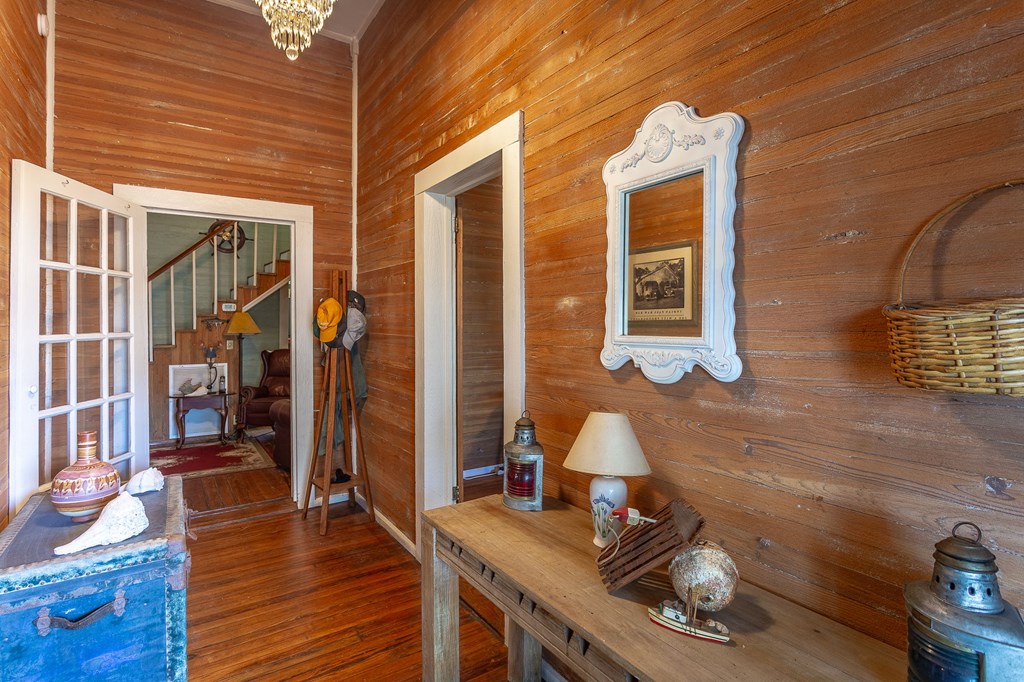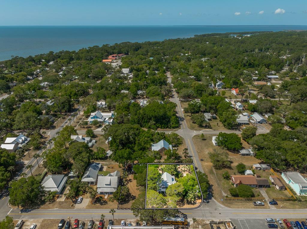Charming circa-1900 pine and cypress home in Apalachicola's historic Northside, rich with character. Set on a beautiful corner lot, high and dry in the "X" flood zone - no flood insurance required! - shaded by mature pines and blooming azaleas, this inviting property offers the warmth and craftsmanship of Old Florida living with a layout designed for modern function. Beautiful tongue and groove cypress walls and ceiling are unfinished and ready for buyer to stain or paint as desired. The first floor features two spacious front bedrooms, a central den that serves as the heart of the home, and a bright kitchen and dining area at the rear of the house that opens onto a shady back deck—perfect for morning coffee or outdoor dining. Upstairs, two additional bedrooms and a full bath, including one bedroom that opens directly onto the charming front balcony, a perfect perch to enjoy the peaceful neighborhood and gentle breezes. The generous corner lot provides ample room for parking, gardening, or future possibilities. The owner also owns the adjacent lot with a storage shed, which is available for purchase with the home—an exceptional opportunity for added space, privacy, or expansion. Sold mostly furnished with antiques and nautical decor. Ideally located just 3/4 mile from downtown Apalachicola with its celebrated shops, restaurants, and waterfront charm, and only five blocks from bayfront Lafayette Park, this historic property offers the character of classic Apalachicola in a great corner location with potential room to expand!