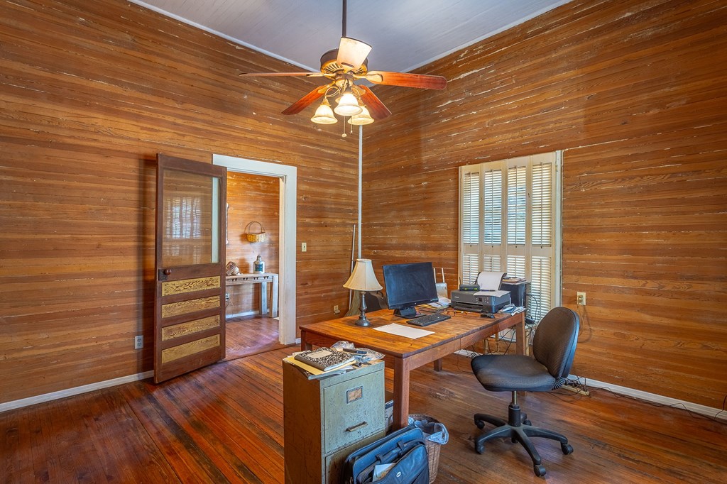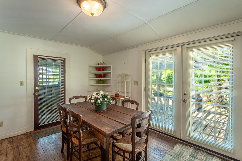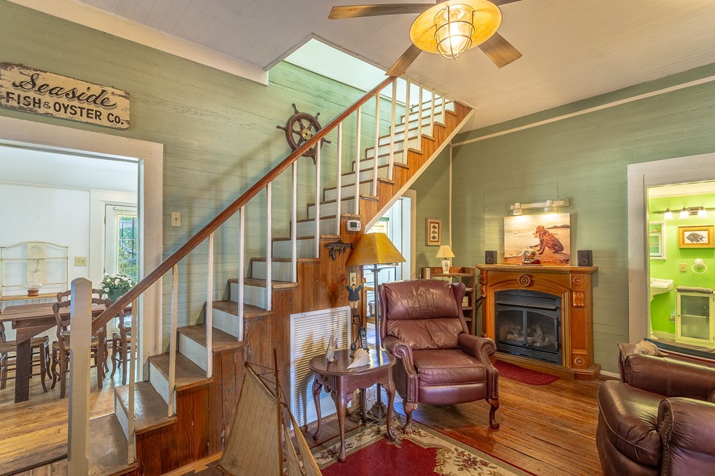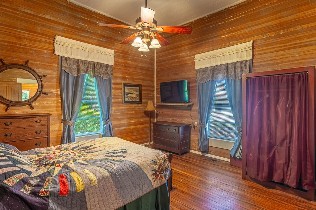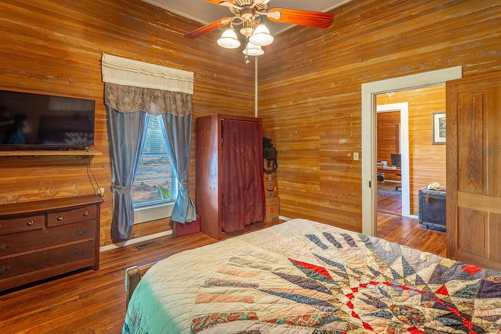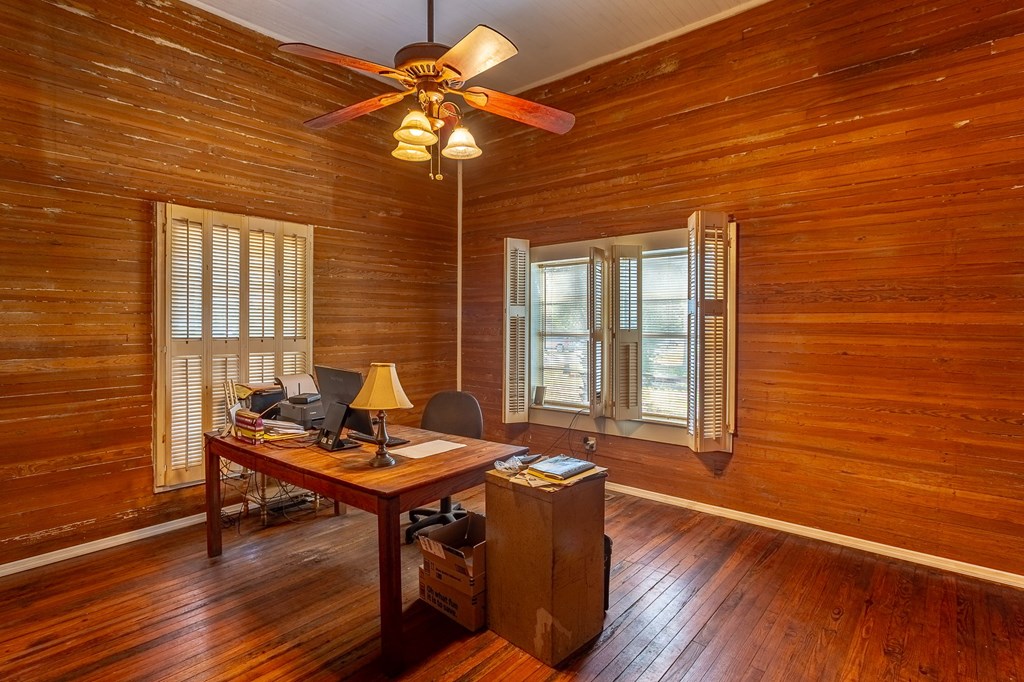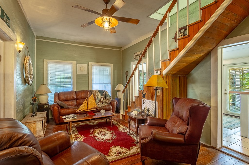 Charming circa-1900 pine and cypress home in Apalachicola's historic Northside, rich with character. Set on a beautiful corner lot, high and dry in the "X" flood zone - no flood insurance required! - shaded by mature pines and blooming azaleas, this inviting property offers the warmth and craftsmanship of Old Florida living with a layout designed for modern function. Beautiful tongue and groove cypress walls and ceiling are unfinished and ready for buyer to stain or paint as desired. The first floor features two spacious front bedrooms, a central den that serves as the heart of the home, and a bright kitchen and dining area at the rear of the house that opens onto a shady back deck—perfect for morning coffee or outdoor dining. Upstairs, two additional bedrooms and a full bath, including one bedroom that opens directly onto the charming front balcony, a perfect perch to enjoy the peaceful neighborhood and gentle breezes. The generous corner lot provides ample room for parking, gardening, or future possibilities. The owner also owns the adjacent lot with a storage shed, which is available for purchase with the home—an exceptional opportunity for added space, privacy, or expansion. Sold mostly furnished with antiques and nautical decor. Ideally located just 3/4 mile from downtown Apalachicola with its celebrated shops, restaurants, and waterfront charm, and only five blocks from bayfront Lafayette Park, this historic property offers the character of classic Apalachicola in a great corner location with potential room to expand!
