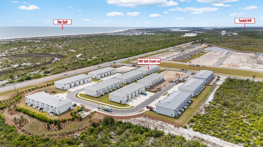 Experience easy coastal living at 380 Salt Creek Ln in Mexico Beach. Located in the new Salt Creek townhome community, this 3-bedroom, 2.5-bath townhome offers distant Gulf views, modern finishes, and a turnkey setup. Sold fully furnished including golf cart, this property is ready for you to enjoy from day one. The open-concept layout features luxury EVP flooring, quartz countertops, stainless steel appliances, white cabinetry with brushed nickel hardware, and a spacious living area designed for gathering after a day on the water. Located within a half mile of Mexico Beach's beautiful white sand beaches, this property is ideal as a primary residence or second-home beach getaway. Priced to sell with furnishings and golf cart included, this is an easy opportunity to start enjoying the Mexico Beach lifestyle.
