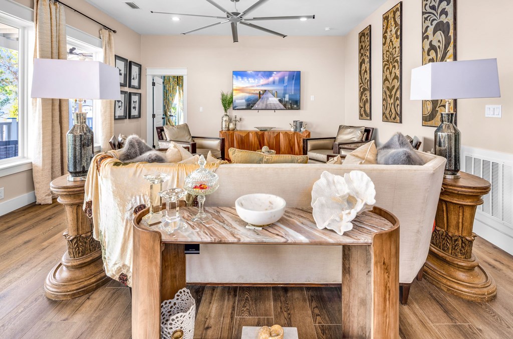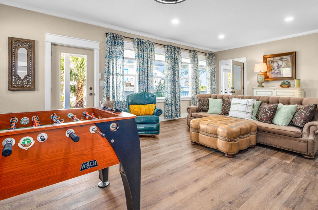 Exceptional 7-bedroom, 8.5-bath coastal estate located on St. George Island, offering sweeping water views, expansive outdoor living, and a design tailored for both luxury enjoyment and large-group accommodations. This impressive residence features approximately 5,796 square feet of heated and cooled living space, complemented by nearly 3,000 square feet of covered and open decking to capture coastal breezes and panoramic surroundings. Designed for comfort and functionality, the home offers multiple gathering areas alongside private bedroom suites, creating an ideal setting for multi-generational living or vacation use. The outdoor experience includes a resort-style heated and cooled pool with spa, outdoor kitchen, and generous entertaining space. Interior features include dual kitchens with premium appliances, spacious dining and living areas, and spa-style amenities including a sauna and steam shower. Property has strong rental potential. Offered with furnishing negotiable, allowing for a seamless transition for personal use or continued rental operation. Whether you are seeking a private coastal retreat, legacy family property, or investment opportunity, this home delivers a rare combination of size, amenities, and location. Public records does not reflect accurate room count records. See documents for appraisal sketch. Call for your tour and LIVE THE BEACH LIFE!