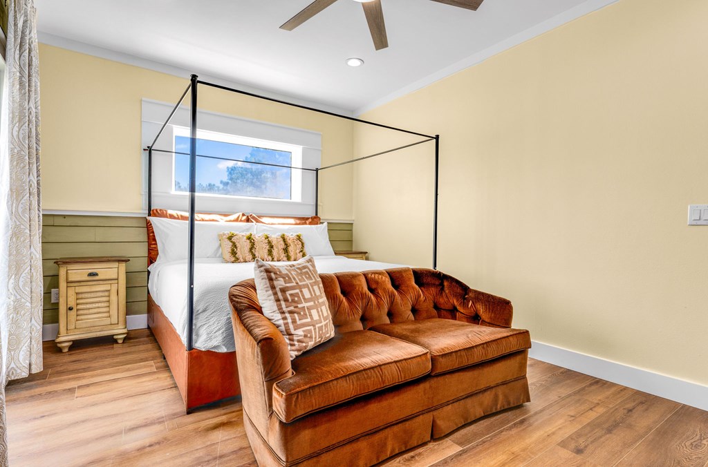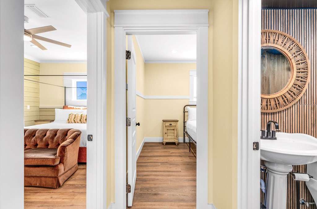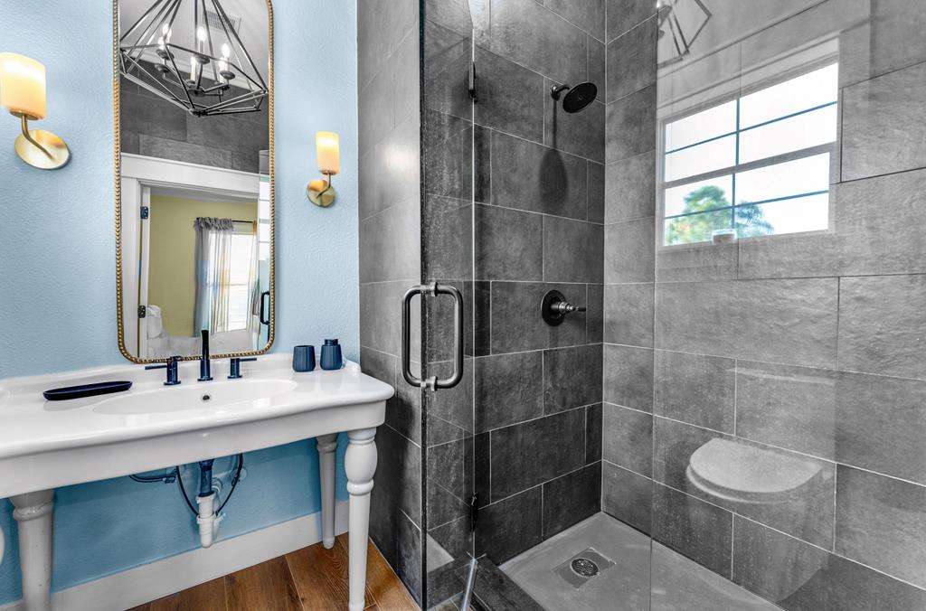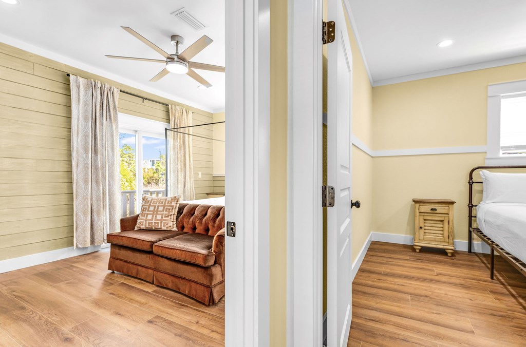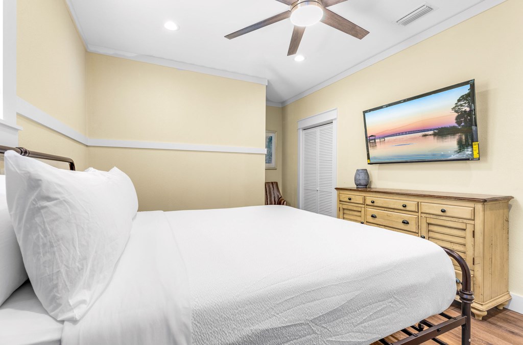 From St. George Island Lighthouse, Right on W. Gulf Beach Dr. Right on 5th St, then right on W. Bay Shore Dr. Left on Quinn St & house is on right. Look for sign.