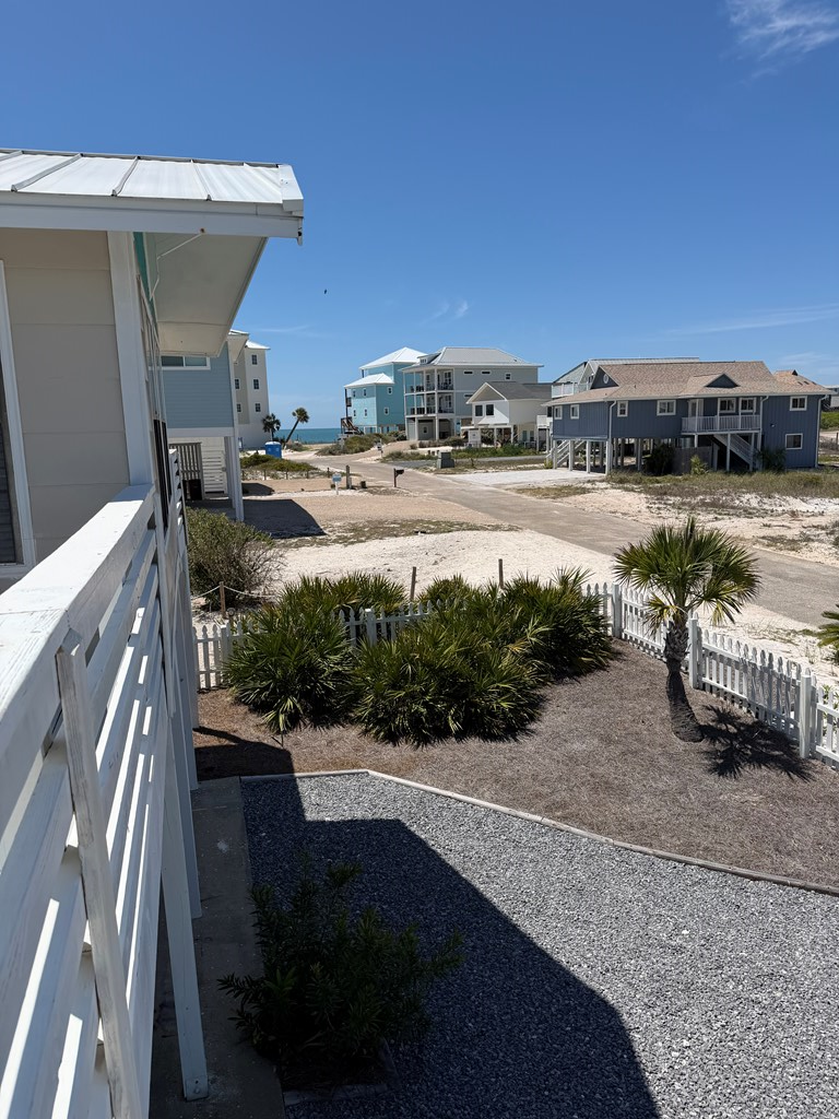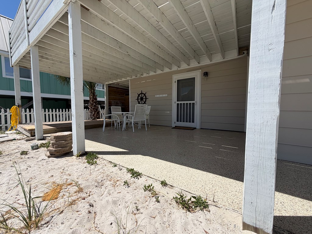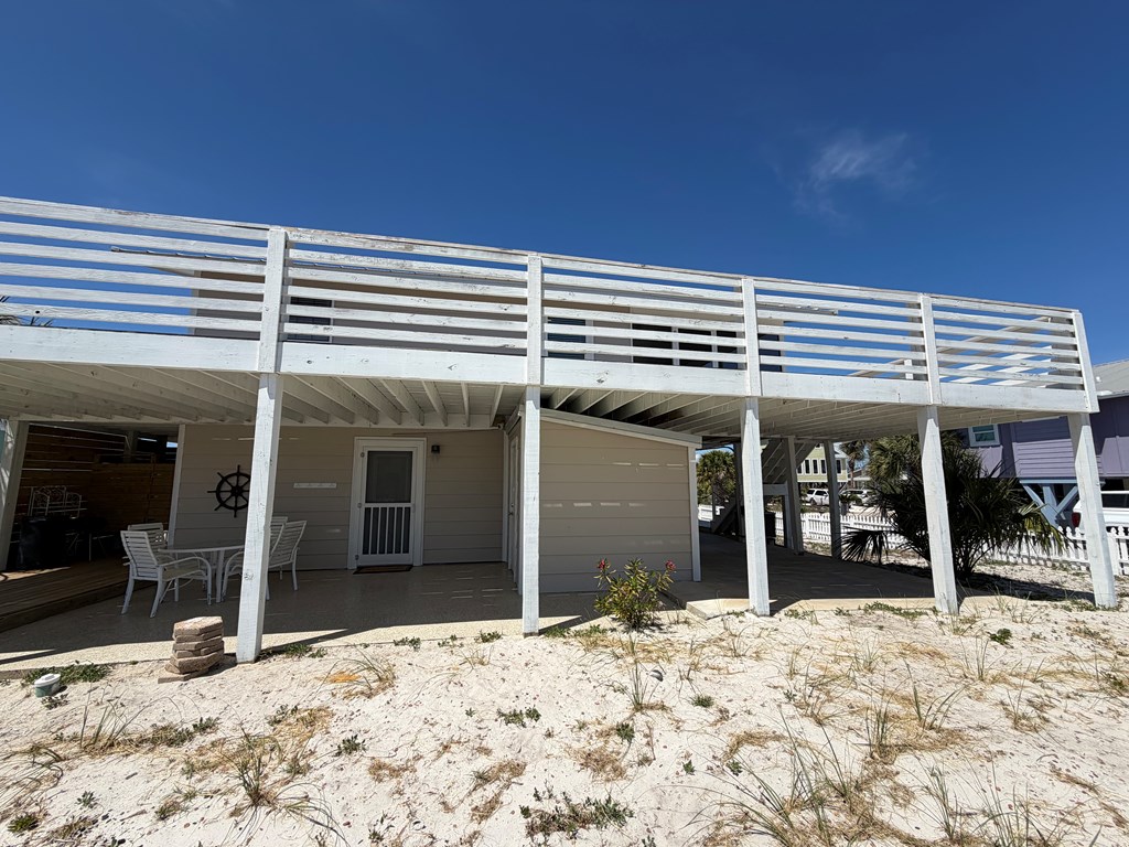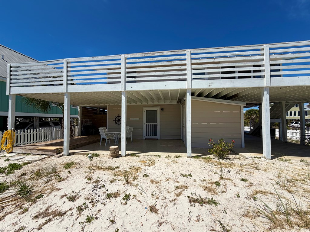 Coastal Living with a View! This inviting 3-bedroom, 2-bath beachside retreat delivers the perfect mix of laid-back comfort and everyday functionality. Take in Gulf views from the spacious decks and enjoy the coastal breeze. Upstairs, a light-filled open living area creates an easy, welcoming flow for gathering and entertaining, complemented by a full bath for added convenience. The kitchen has been refreshed with quartz countertops and offers plenty of cabinet space to keep everything organized. Downstairs, all three bedrooms are thoughtfully tucked away, offering privacy and a quiet escape at the end of the day. Outside, the generous yard provides room to design your dream pool or outdoor oasis, while the outdoor shower makes post-beach cleanups effortless. With plenty of parking and being sold fully-furnished, this home is ready to enjoy from day one. Never rented but ideally positioned for income potential, this property offers flexibility whether you're looking for a second home, primary residence, or future investment near the water.