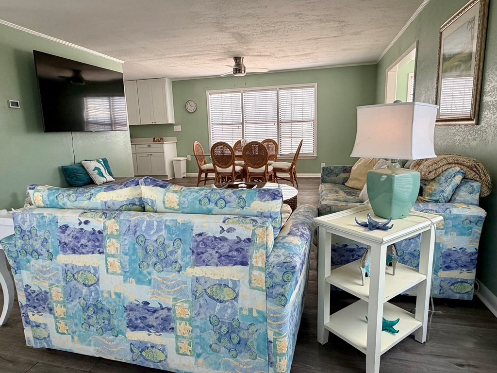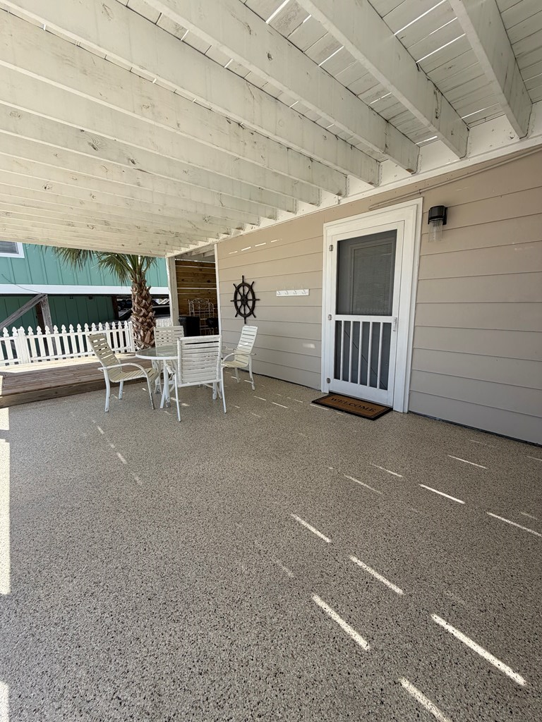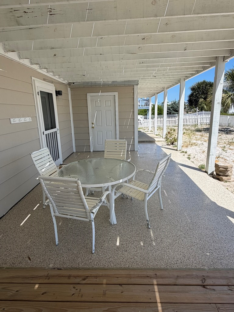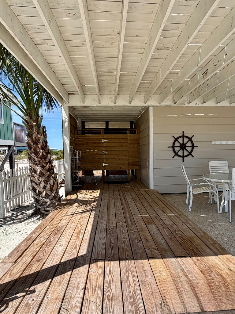 Coastal Living with a View! This inviting 3-bedroom, 2-bath beachside retreat delivers the perfect mix of laid-back comfort and everyday functionality. Take in Gulf views from the spacious decks and enjoy the coastal breeze. Upstairs, a light-filled open living area creates an easy, welcoming flow for gathering and entertaining, complemented by a full bath for added convenience. The kitchen has been refreshed with quartz countertops and offers plenty of cabinet space to keep everything organized. Downstairs, all three bedrooms are thoughtfully tucked away, offering privacy and a quiet escape at the end of the day. Outside, the generous yard provides room to design your dream pool or outdoor oasis, while the outdoor shower makes post-beach cleanups effortless. With plenty of parking and being sold fully-furnished, this home is ready to enjoy from day one. Never rented but ideally positioned for income potential, this property offers flexibility whether you're looking for a second home, primary residence, or future investment near the water.
