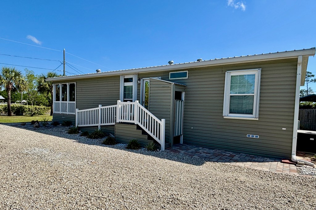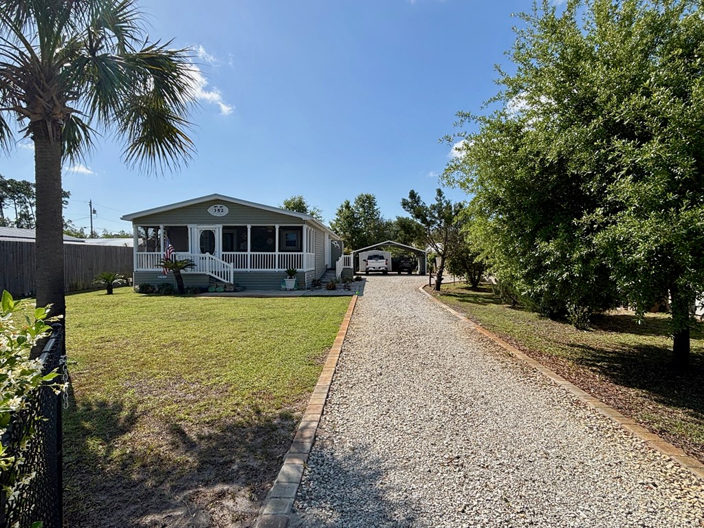 FISHERMAN"S PARADISE WITH ROOM FOR IT ALL! BRING YOUR BOAT! Beautiful 2-bedroom, 2-Bath home featuring an open floor plan, spacious living area, and a large kitchen with a island, and ample cabinetry. Enjoy impact windows, recessed lighting, and a new metal roof (2020). Relax on the screened and covered front porch, surrounded by lush landscaping. Property includes a rock driveway with brick pavers, outdoor shower with hot & cold water, storage building, shallow well, sprinkler system to keep the beautiful grass green, handicap ramp, carport, and brand-new hurricane shutters. Fenced yard offers space for a boat, and a pool. Just a 5-minute golf cart ride to the WHITE SANDY BEACHES. NO HOA'S and SHORT TERM RENTALS ALLOWED! Call Today For A Showing. IT WANT LAST LONG.