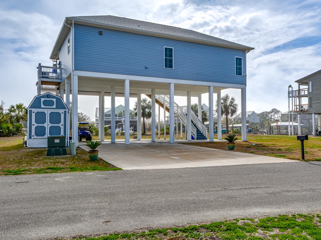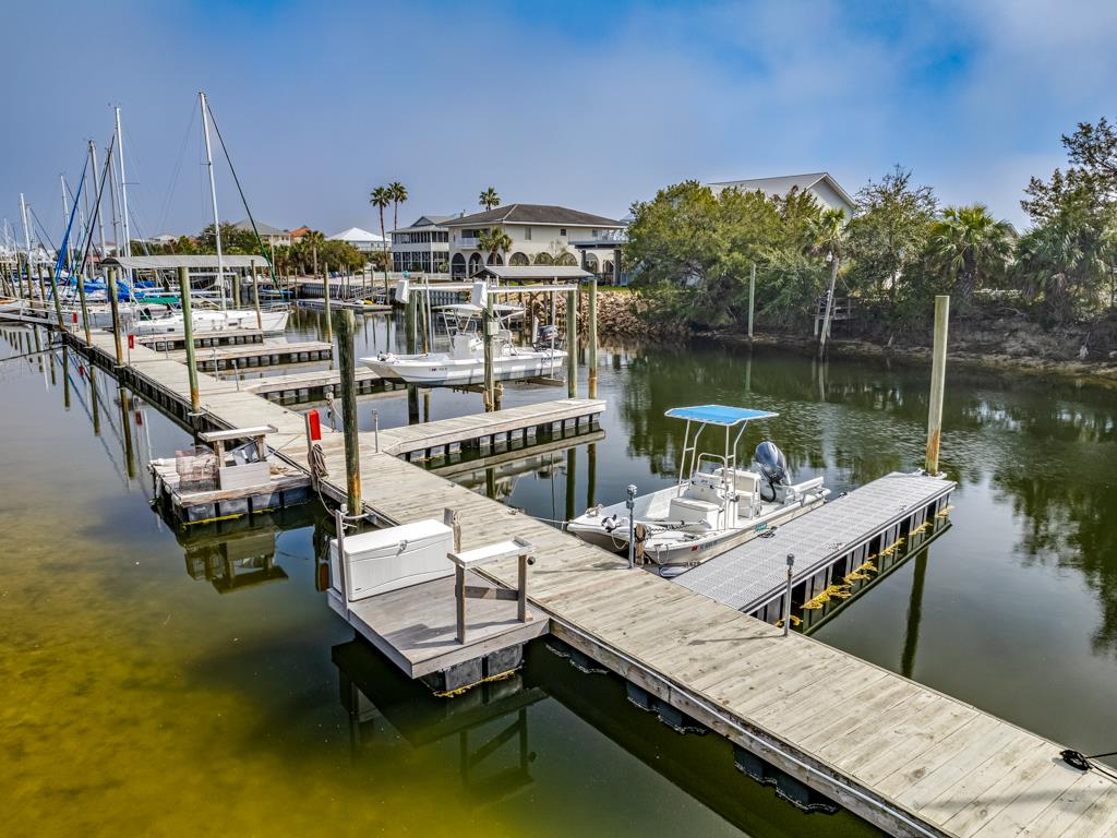 Introducing one of Shell Point's stunning coastal residences seeking a new owner in the gated community of Snug Harbor. This exquisite 2 year-old, 2-bedroom, 2-bathroom home, featuring a home office that can serve as a third bedroom, is a true waterfront gem. Situated on a deep-water canal lot, this custom-built home is elevated 25 feet above sea level, offering breathtaking water views and a private boat slip. The property boasts a storage shed, golf cart, and an exterior lift leading to a partially open sun deck. Beneath the home, a concrete slab provides ample parking for multiple vehicles and recreational equipment. Residents can enjoy the community amenities, including a pool and clubhouse with regular events. Designed for effortless living, this open floor plan features 11-foot coffered ceilings, custom window treatments, and a luxurious primary closet. The butler's pantry is equipped with an on-demand water heater and a large electric water heater, ensuring convenience at your fingertips. A stackable washer and dryer, along with abundant storage to complete the functional layout. Perfect for entertaining, the spacious design accommodates gatherings with family and friends. Located adjacent to Shell Point Marina, this home is turn key ready for you to create your own coastal family memories. Home comes with a fully transferable builder warranty for peace of mind. Please note, the seller does not carry flood insurance; prospective buyers should verify its necessity. Conveniently located just 11 miles from essential amenities such as Winn-Dixie, Walmart, medical facilities, and the Crawfordville city limits, with a short drive to Tallahassee, this property offers both tranquility and accessibility. Don't miss the opportunity to own this exceptional home. Schedule your private showing today, Shown by appointment only. Listing Agent must be present for Viewing