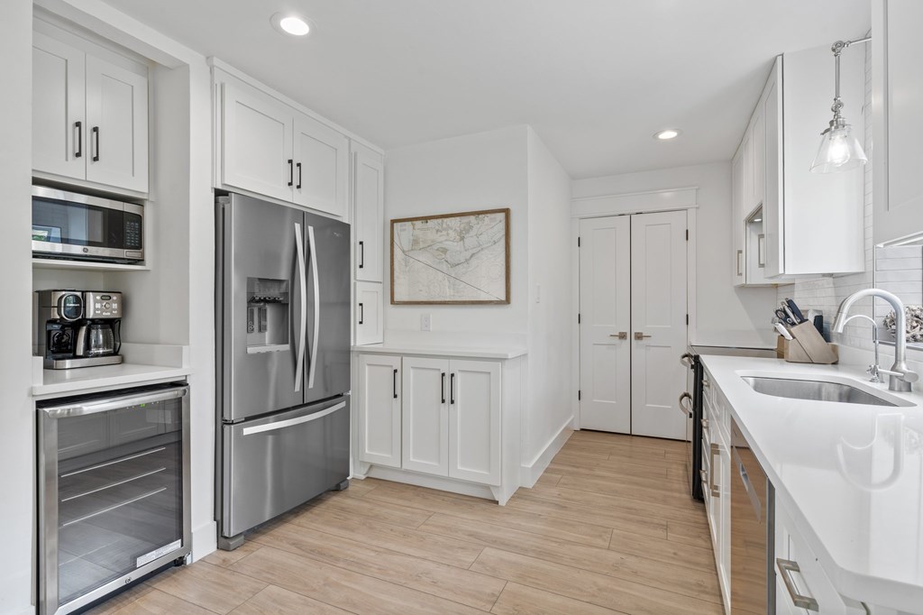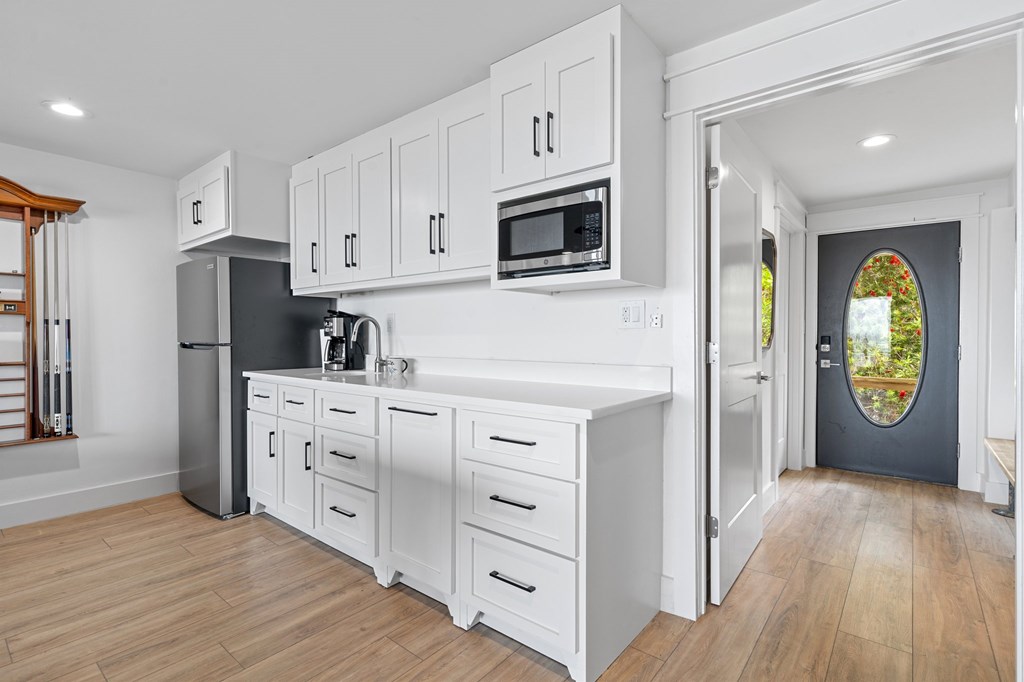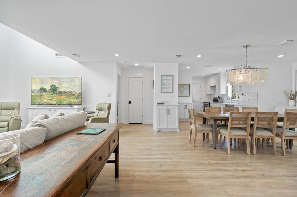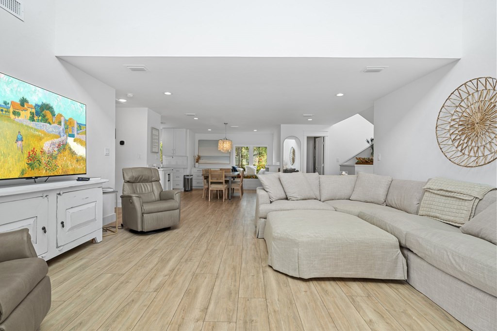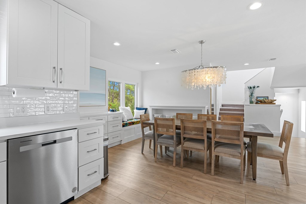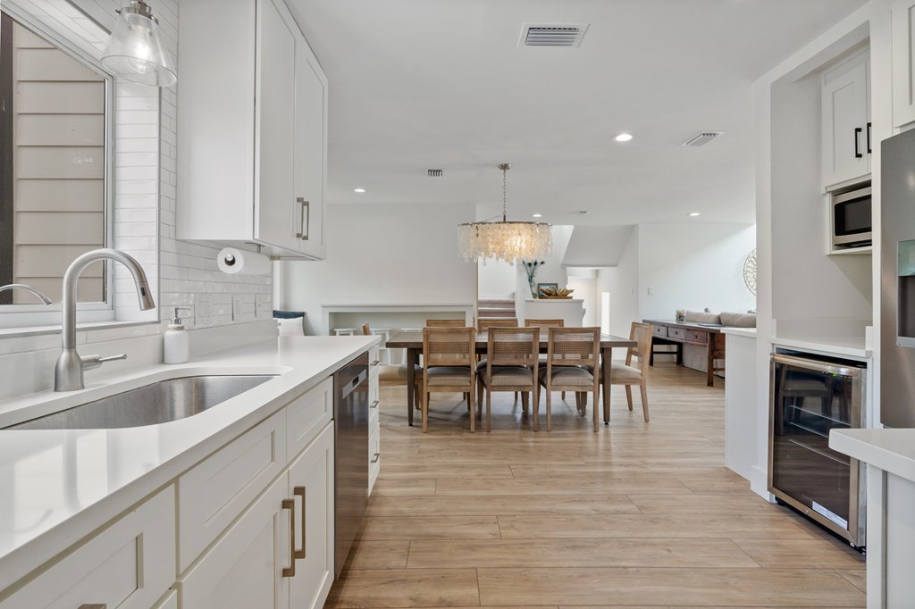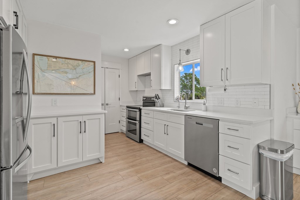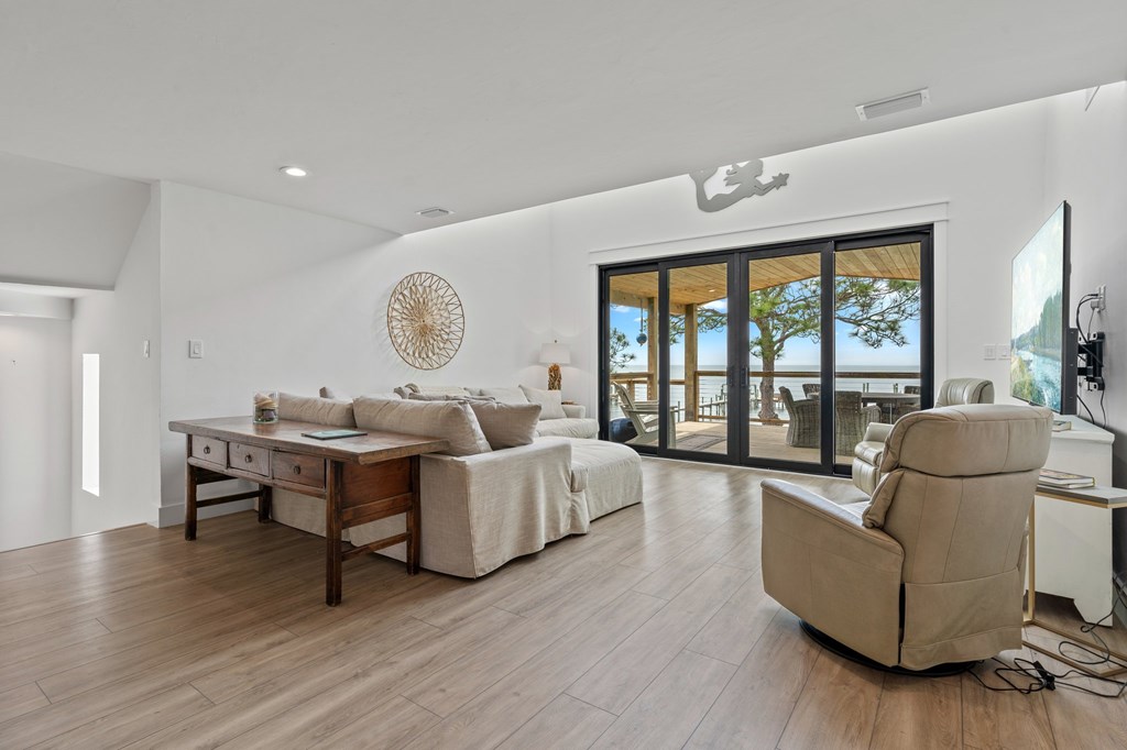 Completely renovated in 2024. New Hardie board siding, new custom cabinets, new lighting, Quartz countertops, new plank flooring, new sinks, doors, windows, faucets, 17x16 covered porch added, exterior stairs added, huge deck, new dock and boat lift, new sheetrock and paint, 3 new HVACs, new ductwork and 2 dehumidifiers, hottub. Wonderful floorplan set up for multiple families, Bedroom, kitchenette, and family room on first floor, main kitchen, primary bedroom on the second floor, two bedrooms, and loft on the third floor. Amazing view on the bay, deep water dock, perfect for entertaining! See associated docs for complete list and specs. Sq footage approximate Buyer to verify all info.