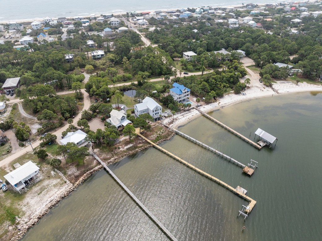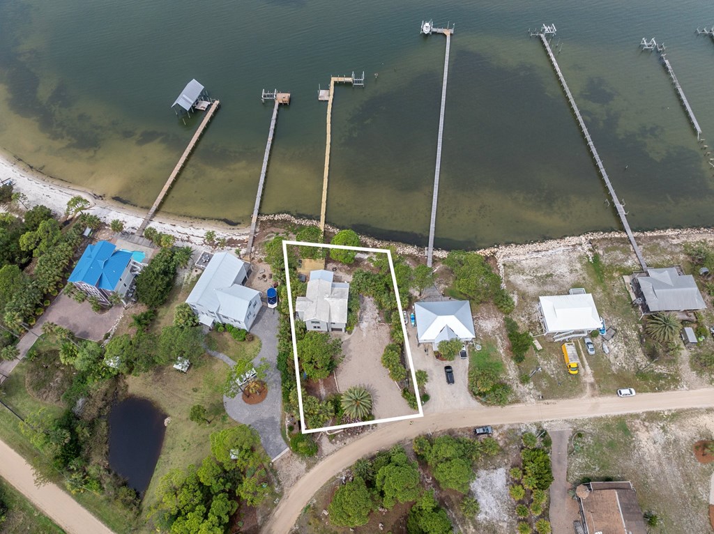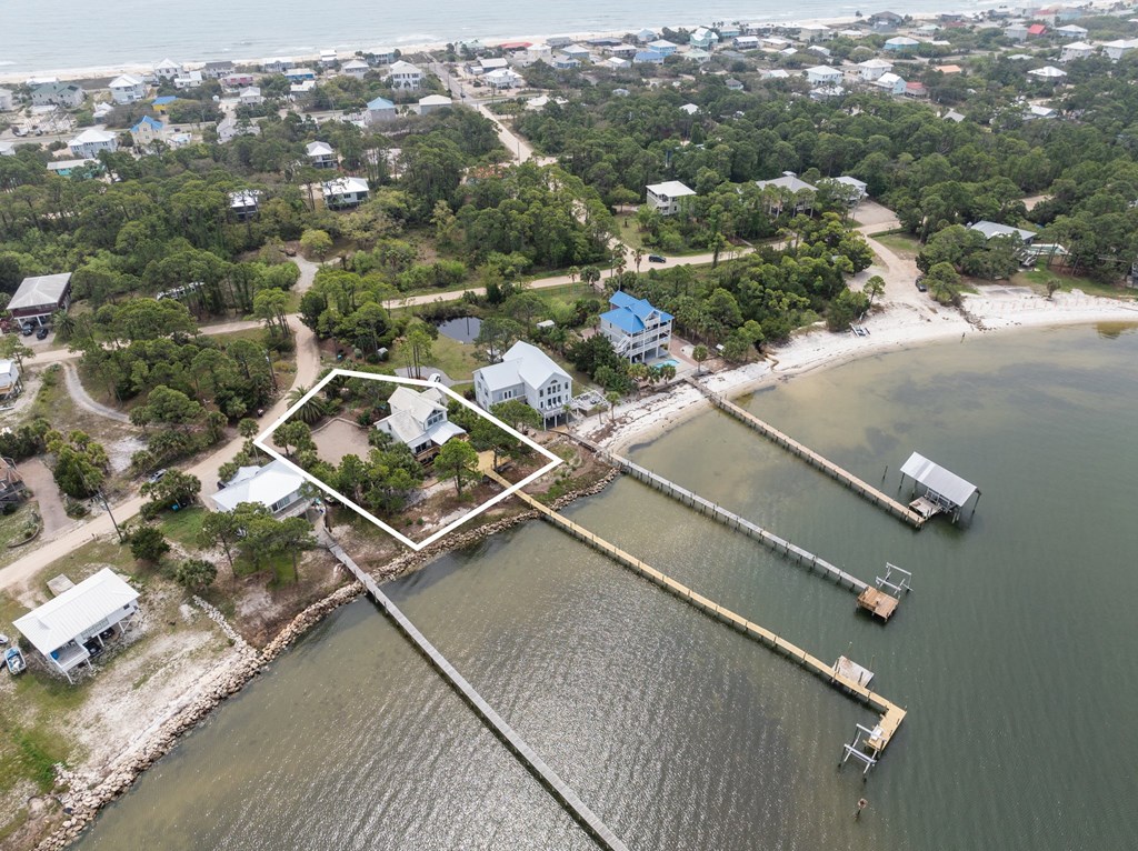West on Gulf Beach Drive, right on 9th Street, right on Bay Shore Drive, left on Marks Street, house on left (bay front!)