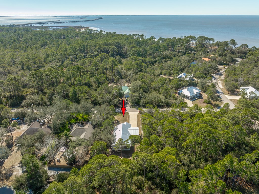 From Hwy 98 West, South on South Bayshore Drive, East (left) into Las Brisas subdivision, right onto Las Brisas Drive.