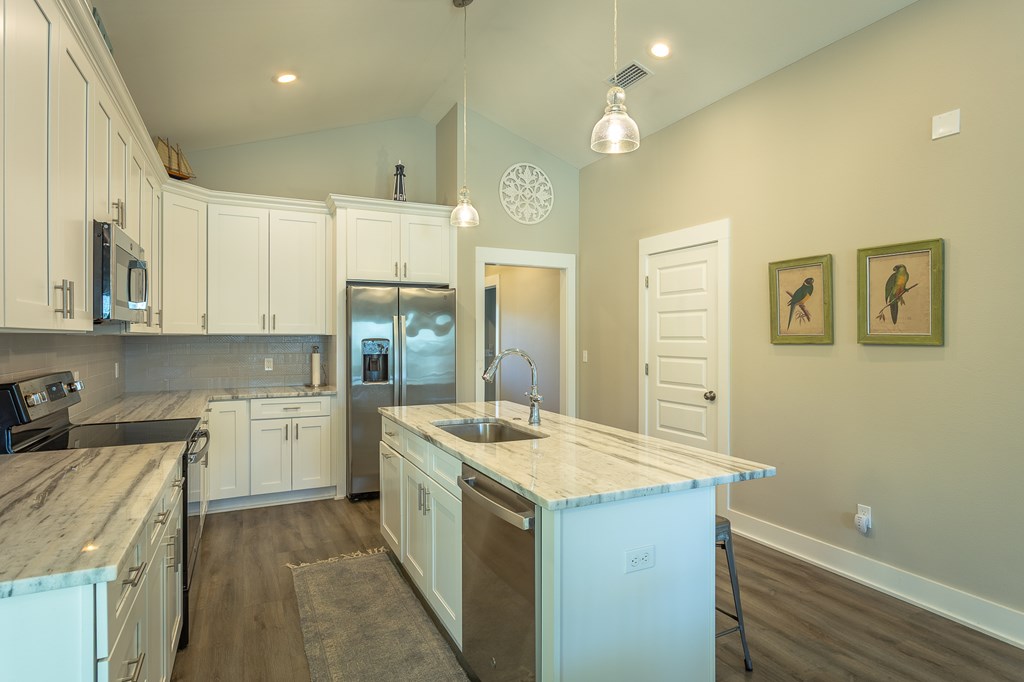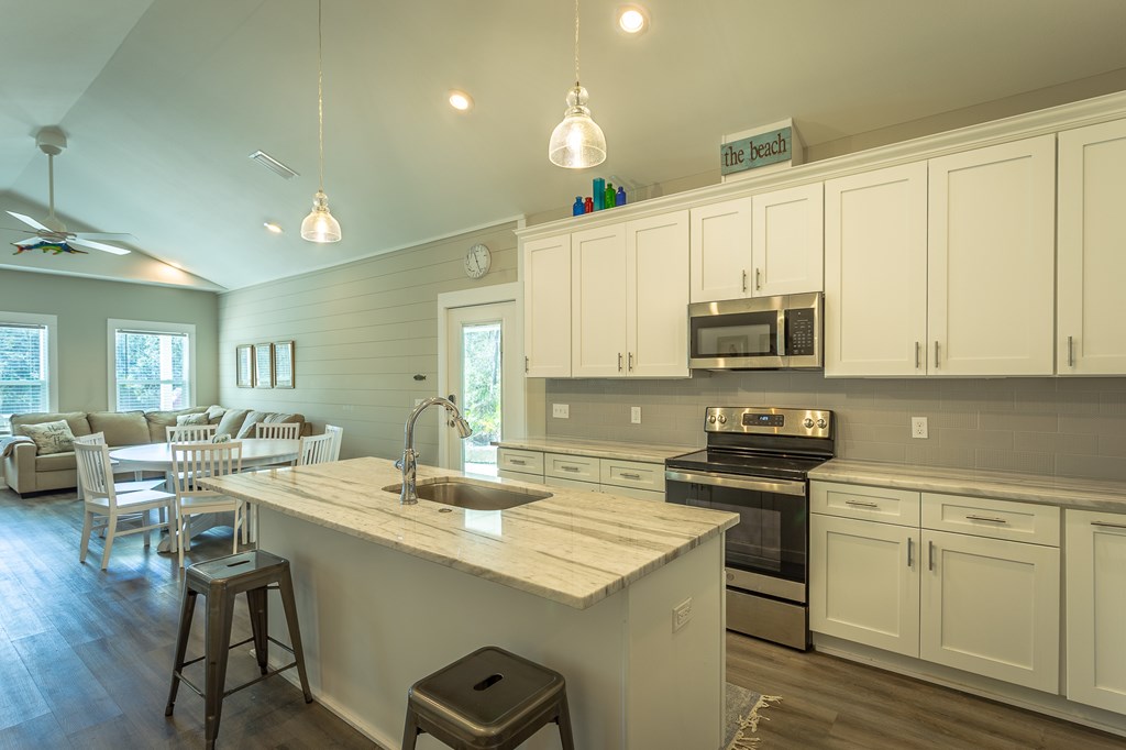 Welcome home to your Coastal Retreat Minutes from the Acclaimed Beaches of St. George Island! This beautifully designed 3 BR, 2 BA home, built in 2023, is located in the charming Las Brisas subdivision, a quiet coastal community with a tennis court. Featuring modern styling, a vaulted living area, and durable LVP and tile flooring, this home blends comfort and elegance. The spacious master suite boasts a coffered ceiling, ensuite bath, and private north-facing porch, perfect for relaxing. Additional highlights include a separate laundry room, cement plank siding, and a standing seam metal roof for lasting durability. Conveniently located near boat launches, local restaurants, live music venues, and shopping, this home offers the best of coastal living. Homes is offered fully furnished! X-Flood Zone! Schedule your private tour today!