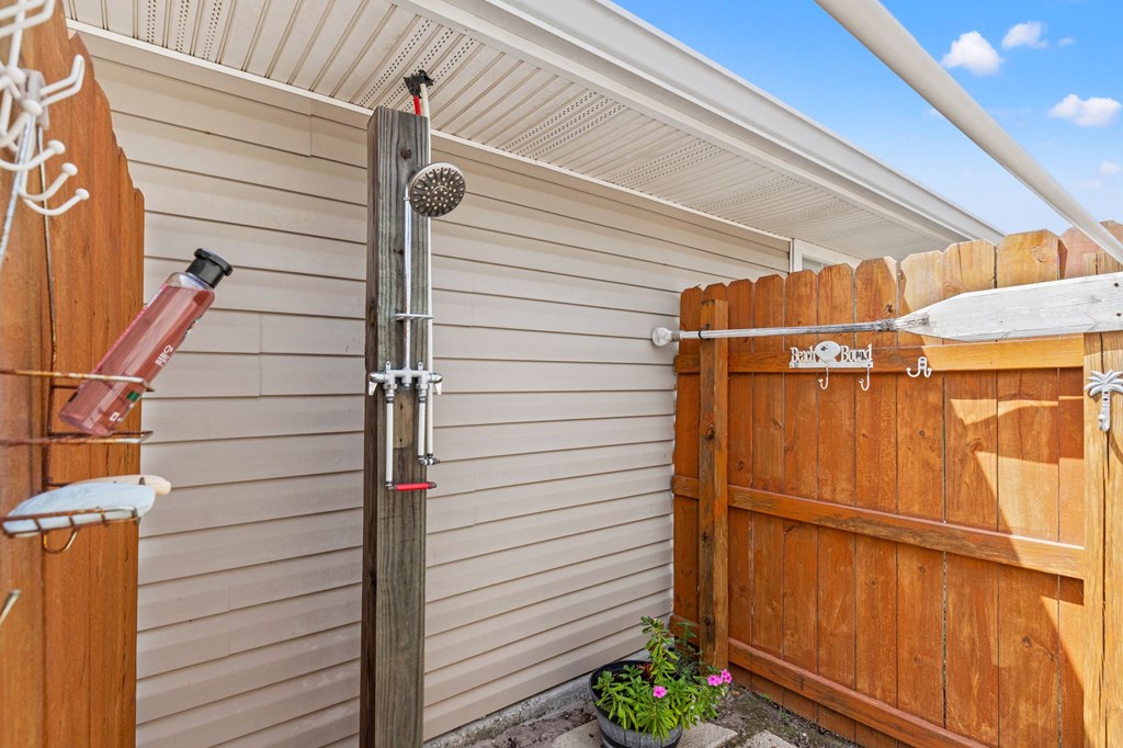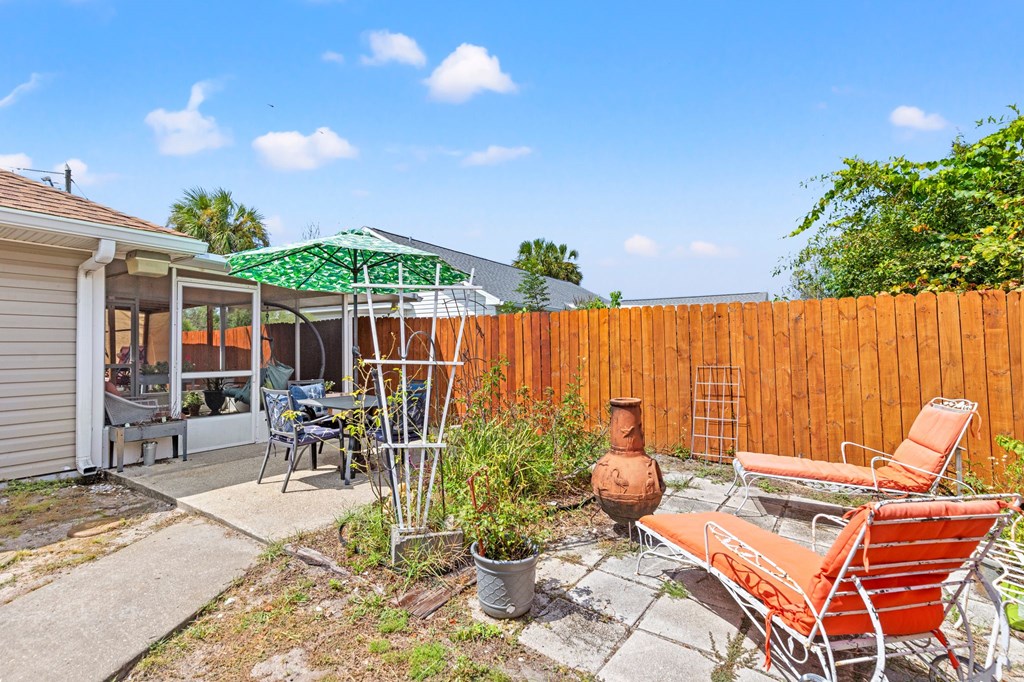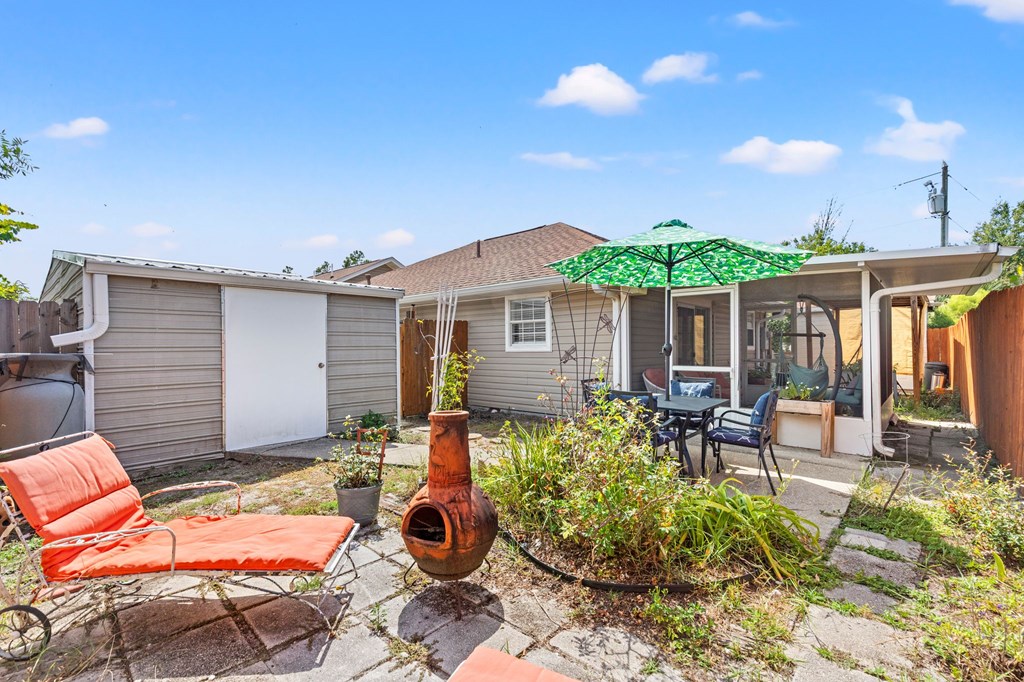 Coastal Retreat on a Private Dead-End Street – 2 Bed / 2 Bath Home in Mexico Beach. Tucked away at the end of a quiet dead-end street, this 2 bedroom, 2 bathroom home offers the privacy and charm of small-town coastal living just minutes from the Gulf. Inside, you'll love the open-concept living and dining area with abundant natural light and coastal color tones. The kitchen features stainless steel appliances, a gas range, and plenty of cabinetry, while the spacious primary suite opens directly to the screened porch for seamless indoor-outdoor living. A comfortable guest bedroom and full bath ensure room for family and visitors. Outdoors, this property shines with its fenced backyard retreat — enjoy evenings on the screened porch, relax under the shaded pergola swing, or gather on the patio. A private outdoor shower is perfect after a day at the beach, while raised garden beds and a 12-foot by 24-foot air-conditioned storage shed adds practicality and charm. Whether you're searching for a full-time residence, a vacation home, or an investment property, this coastal retreat offers comfort, privacy, and the relaxed Mexico Beach lifestyle.