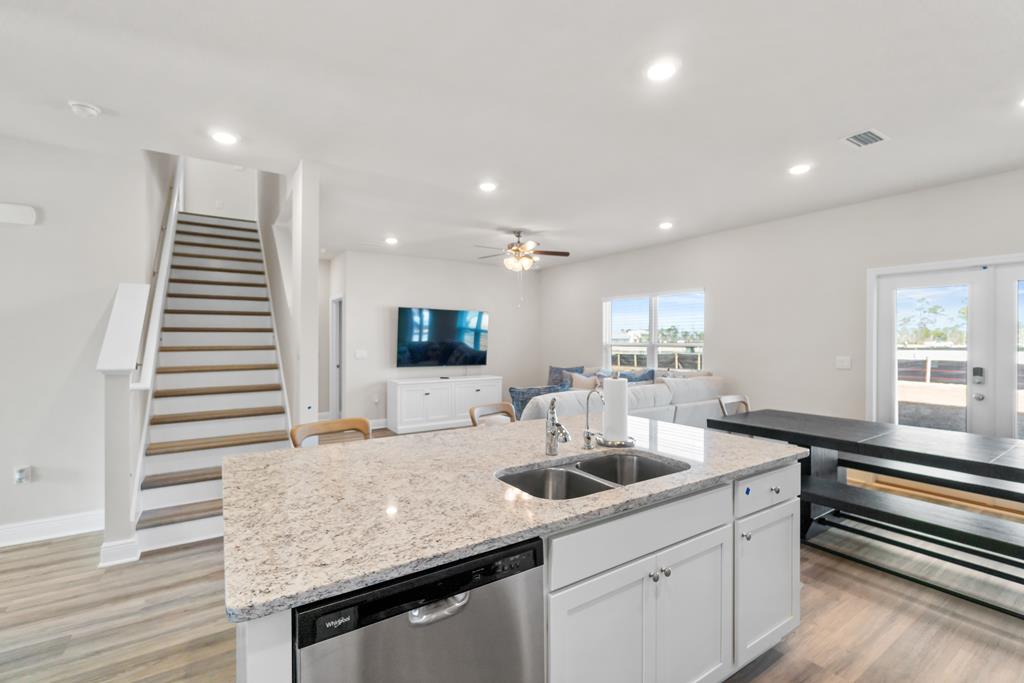 Experience coastal living in this stunning Carol floor plan home, perfectly situated on a corner lot in the desirable WindMark Beach community. Due to the home's unique location, the backyard may provide space for a swimming pool (If approved by the WindMark Beach Homeowners Association). Currently a successful short-term rental, this property offers great income potential or the ideal beach retreat. The open layout features a bright living area, white kitchen cabinets, granite countertops, stainless appliances, and a large center island perfect for entertaining. Upstairs, the spacious primary suite includes a walk-in closet, soaking tub, and separate shower. EVP flooring, 9-ft ceilings, and durable cement board siding add beauty and function. Enjoy relaxing on the porch, or take a short stroll to the beach, pools, trails, and local shops. Furnishings are negotiable, making this an easy investment opportunity in Port St. Joe's premier coastal community!