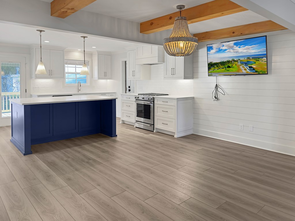 Experience coastal living at its finest in this fully renovated 4-bedroom, 2-bathroom home in the heart of Port St. Joe. Every detail has been thoughtfully upgraded to provide modern comfort and timeless charm. Relax on the spacious front porch and soak in stunning views of St. Joseph's Bay from your porch swing, or entertain guests on the expansive back deck—perfect for barbecues and afternoon gatherings. Inside, you'll find an open-concept design with hand-crafted custom cabinetry, a chef's dream kitchen built for family and friends, and large bedrooms filled with natural light. Both bathrooms feature luxurious custom tile showers, while fresh paint, new flooring, and stylish finishes throughout give the home a bright, inviting feel. The renovation also included a brand-new A/C unit and new windows, ensuring energy efficiency, comfort, and peace of mind for years to come. For added convenience and lifestyle ease, the home features a covered carport with a built-in storage room—ideal for keeping your beach gear, golf cart, or outdoor essentials tucked away—as well as an additional shed for even more space. Tucked away on a quiet street, yet just a quick golf-cart ride to downtown restaurants, shops, and entertainment, this property perfectly blends charm, comfort, and location. This home truly has it all—modern upgrades, coastal charm, and an enviable lifestyle that lets you enjoy the very best of Port St. Joe. Virtural Tour: https://my.matterport.com/show/?m=FSyzMM93Qn8