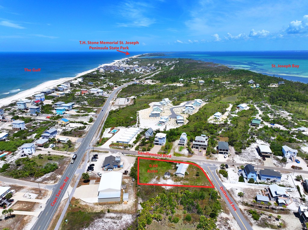From Port St. Joe - Head east on Monument, slight right onto CR 30A for 6.7 miles. Turn right onto Cape San Blas Rd for 8.3 miles. Turn right onto Sandlewood Blvd. Property will be on the right. See signs.