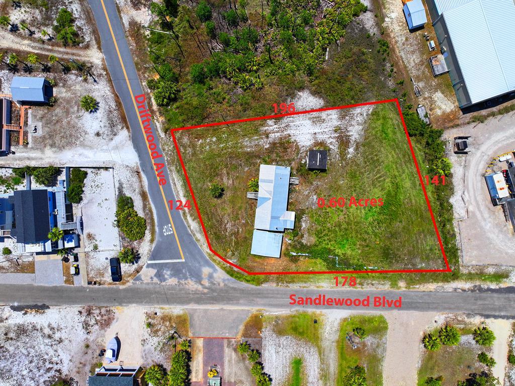 Exceptional 0.60-acre corner lot with flexible Mixed-Use zoning. Ideal for residential, commercial, or a combination of both! Featuring dual road frontage (approx. 178' on Sandlewood and 124' on Driftwood), this property offers outstanding visibility, easy access, and ample space for parking or future expansion. An existing structure on site provides a great head start perfect for a temporary office, workshop, or storage space while your plans come together. Utilities are already in place, saving time and cost for development. Whether you're dreaming of a coastal business location, vacation rental, or live-work setup, this property offers the freedom and flexibility to bring your vision to life. Perfectly positioned, this is a prime opportunity for your next investment. No HOA dues!