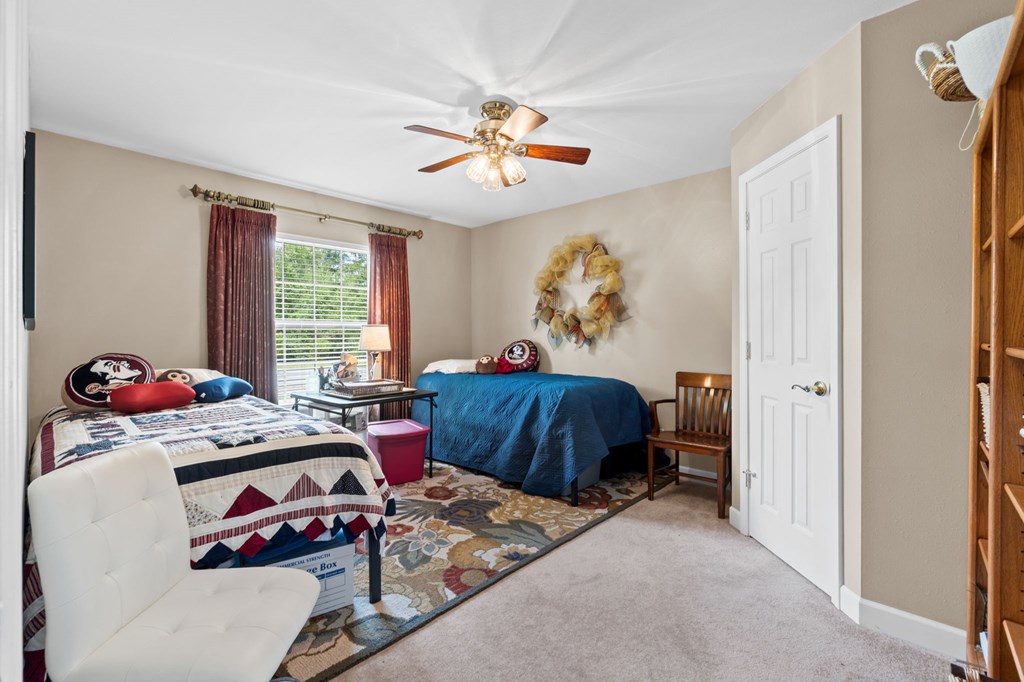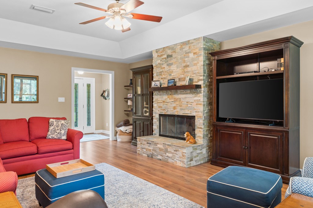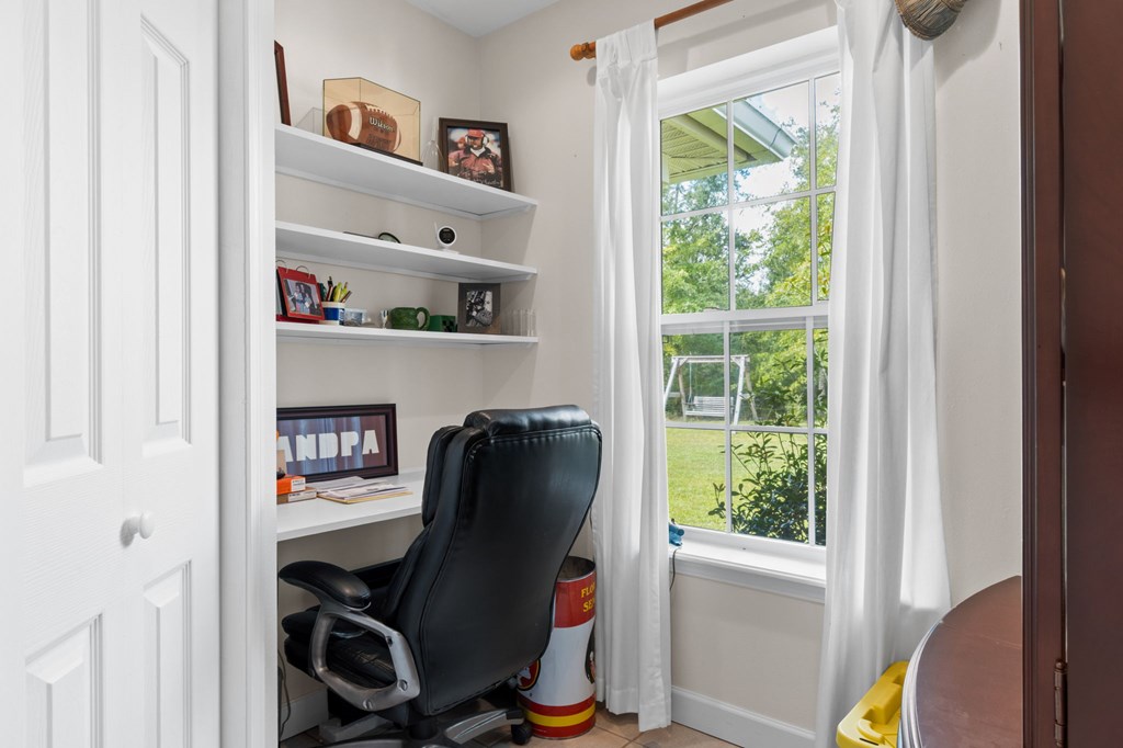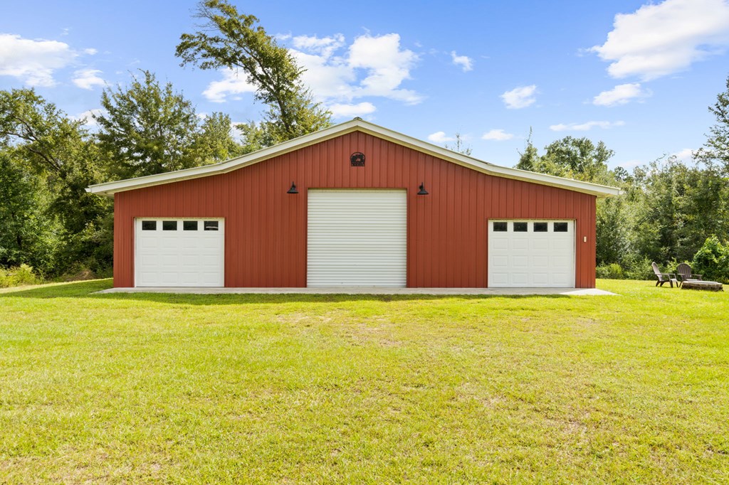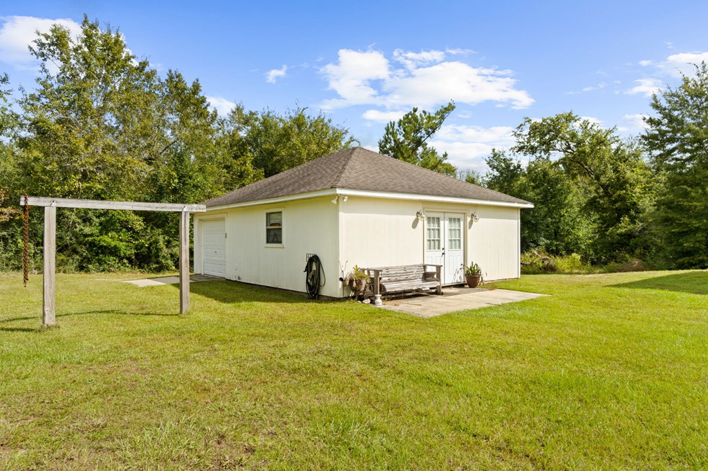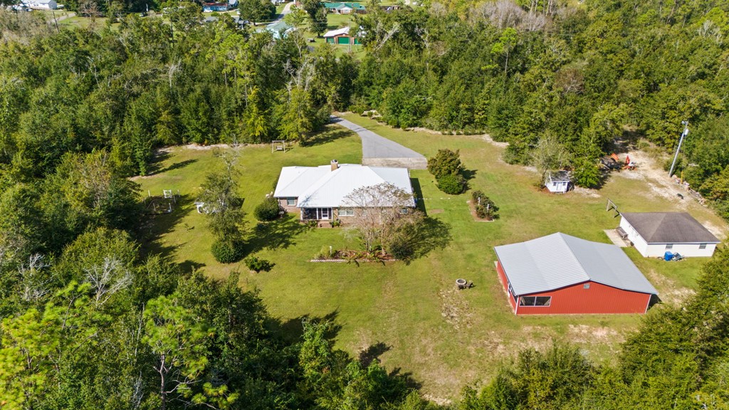 Hidden by a private drive, sits your dream home! Complete with 4 bedrooms, two-baths and an office space situated on 5 acres! Step inside to find classic hardwood floors throughout the main living areas, adding timeless warmth and character. Each bedroom is outfitted with plush carpeting for comfort, while the baths and laundry feature low-maintenance tile for easy living. The heart of the home centers around a stone-accented wood-burning fireplace, creating a cozy focal point for family gatherings and quiet evenings. The spacious kitchen is a cook's dream, complete with three pantries, providing space for groceries and gadgets! A breakfast bar divides the kitchen from the formal dining area that overlooks the private backyard and provides access to the screened back porch. After a long day, retreat to the master suite and soak away the days worries in a bubble bath or steamy shower. The double vanity and custom closet finish this space with class! Plenty of room for a growing family or guests in any of the three additional bedrooms, one even offers bunk beds, maximizing your hosting capabilities! Outside, discover a three bay barn with a screened outdoor kitchen, large enough to accommodate your boat, tractor and other toys! An additional workshop and play house could easily serve as a hobby spaces, a studio, or be converted into an in-law suite. Near the fenced gardening space you'll a potting shed on the backside of the well pump house, perfectly positioned for tending to your blooms, storing tools or potting next season's harvest. The double garage, currently used as an additional entertaining space but easily transitions back to secure vehicle storage. Surrounded by mature trees and natural beauty, this property combines the serenity of country living with thoughtful design and room to grow—an inviting retreat ready to welcome you home.