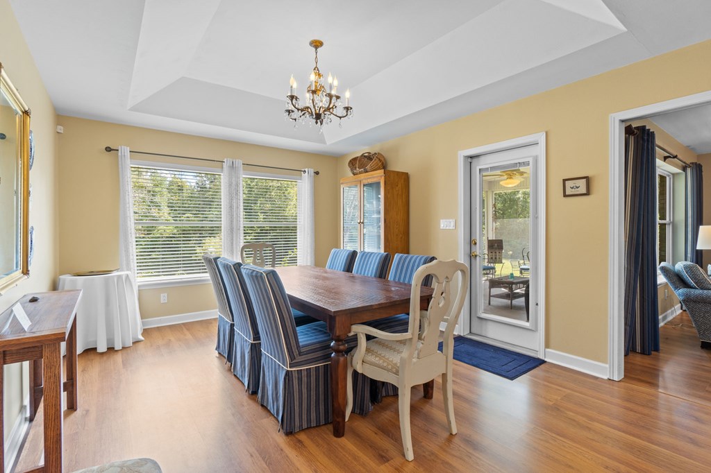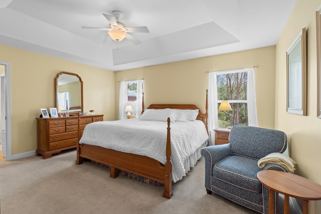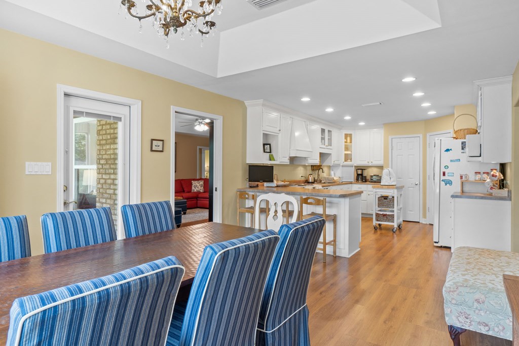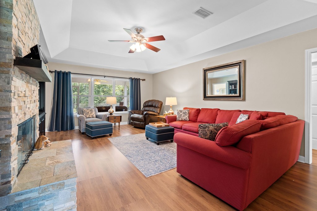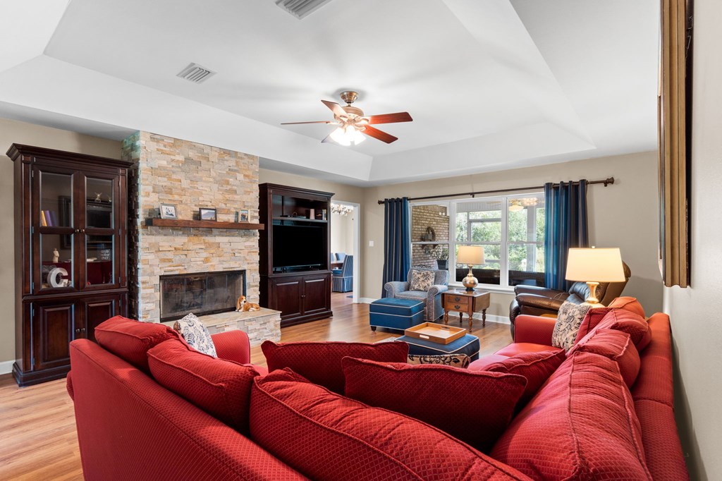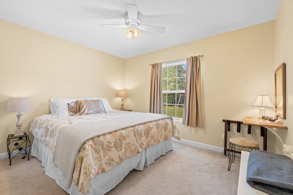 Hidden by a private drive, sits your dream home! Complete with 4 bedrooms, two-baths and an office space situated on 5 acres! Step inside to find classic hardwood floors throughout the main living areas, adding timeless warmth and character. Each bedroom is outfitted with plush carpeting for comfort, while the baths and laundry feature low-maintenance tile for easy living. The heart of the home centers around a stone-accented wood-burning fireplace, creating a cozy focal point for family gatherings and quiet evenings. The spacious kitchen is a cook's dream, complete with three pantries, providing space for groceries and gadgets! A breakfast bar divides the kitchen from the formal dining area that overlooks the private backyard and provides access to the screened back porch. After a long day, retreat to the master suite and soak away the days worries in a bubble bath or steamy shower. The double vanity and custom closet finish this space with class! Plenty of room for a growing family or guests in any of the three additional bedrooms, one even offers bunk beds, maximizing your hosting capabilities! Outside, discover a three bay barn with a screened outdoor kitchen, large enough to accommodate your boat, tractor and other toys! An additional workshop and play house could easily serve as a hobby spaces, a studio, or be converted into an in-law suite. Near the fenced gardening space you'll a potting shed on the backside of the well pump house, perfectly positioned for tending to your blooms, storing tools or potting next season's harvest. The double garage, currently used as an additional entertaining space but easily transitions back to secure vehicle storage. Surrounded by mature trees and natural beauty, this property combines the serenity of country living with thoughtful design and room to grow—an inviting retreat ready to welcome you home.