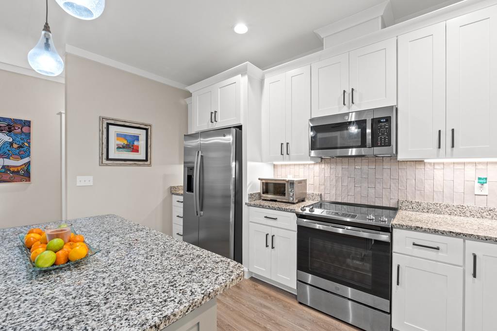 Immaculate one-owner, custom-built home offering exceptional quality, style, and comfort just minutes from the white-sand beaches of Mexico Beach. This 3-bedroom, 3-bath home features an open-concept floor plan with a spacious living area, perfect for entertaining. The kitchen is both beautiful and functional, featuring granite countertops, a custom tile backsplash, large island with additional storage, upgraded lighting, and enhanced electrical features. The primary suite includes a spa-like ensuite with double vanities, a soaking tub, tiled walk-in shower, and a large custom walk-in closet. Enjoy indoor-outdoor living with French doors leading to a screened-in porch ideal for relaxing in the coastal breeze. Numerous upgrades include oversized 2-car garage with EV charger, aluminum fencing with solar lighting, 6-inch gutters, dining room chandelier, and top-down bottom-up blinds. Professionally landscaped yard features hardscape rock accents, brick pavers, and mature trees, including Sylvester palms, Japanese pines, a tupelo tree, Japanese maple, and a Meyer lemon tree. Located in the desirable Casuna subdivision, residents enjoy access to a community pool, clubhouse, and well-maintained surroundings—all just a short golf cart ride from the beach, shops, and restaurants. This beautifully upgraded home is move-in ready and perfect for full-time living. You'll enjoy a peaceful neighborhood vibe, friendly neighbors, and a real sense of community. No short-term rentals allowed.