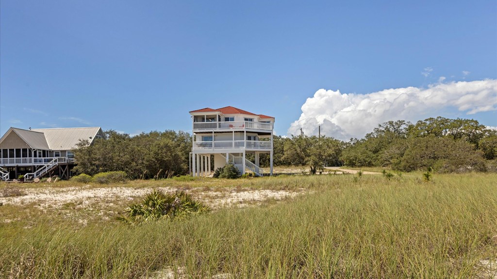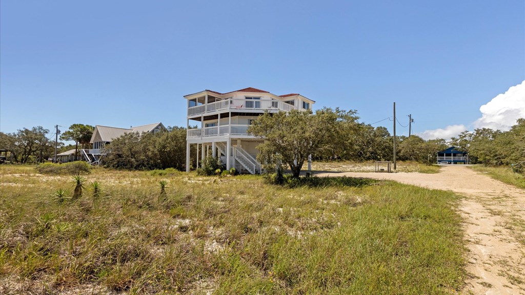 Bald Point Beach Estate aptly named "Heavenly Sunrise" offers a rare opportunity to own an income producing vacation beach rental with room to expand. Offered with two additional beachside lots where you can build your own rental empire or create a generational legacy family beachfront compound. The opportunities and possibilities are what separates this from any single lot property. Being sandwiched between the sugar white sand beach the area is known for and the award-winning Bald Point State Park creates a quiet getaway far from the hustle and bustle found on most Florida beaches. Built in 2004 the 1952 sqft home features 4 bedrooms and 3 baths with all bedrooms featuring oceanside porches and water views. The top level features living room, dining area, kitchen, and a master bedroom- all with wide open ocean views on one side, and picturesque undeveloped old Florida on the other. With a well established rental history since 2008 the home is a consistent winner on VRBO with 5 star reviews galore. Keep things the way they are and enjoy the privacy the extra lots offer to Heavenly Sunrise or explore the possibilities of expanding. Either way you are situated in the unique and unspoiled beachside setting Bald Point is known for.