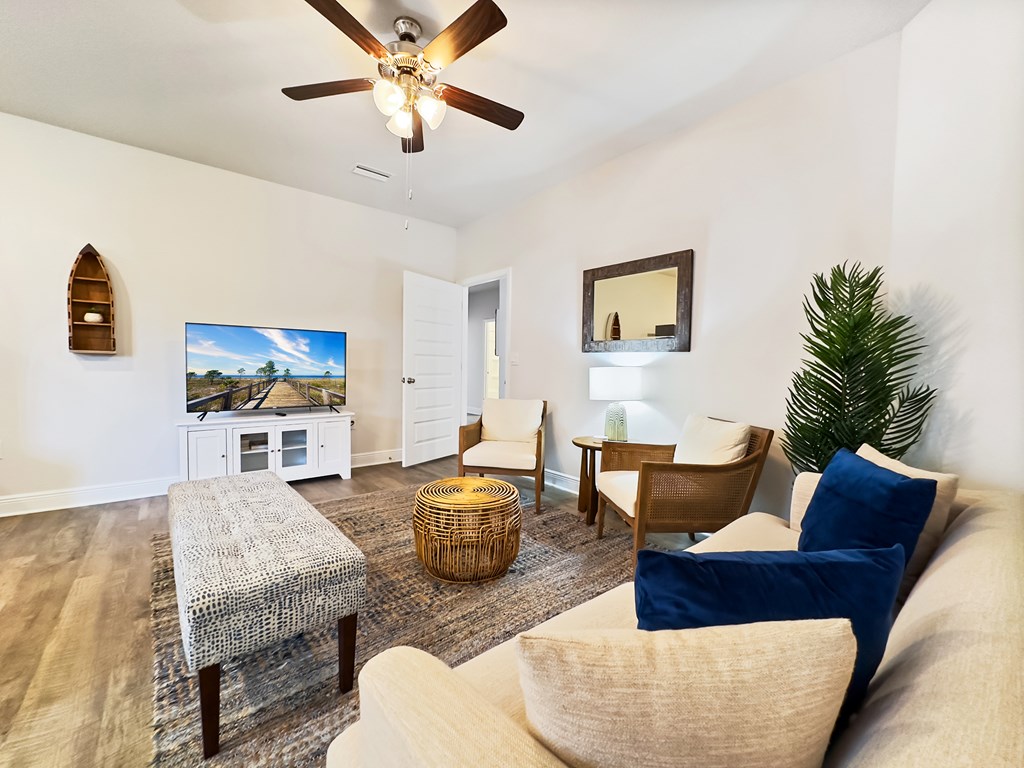 Discover the perfect blend of coastal luxury and modern comfort in this beautifully upgraded 4-bedroom, 3-bath home located in the sought-after Windmark Beach community. Built in 2022, this home offers approximately 2,197 sq. ft. of open living space, filled with natural light and high-end finishes that complement the relaxed beach lifestyle of Florida's Forgotten Coast. Thoughtfully enhanced with over $36,000 in custom upgrades, including a screened porch enclosure ($4,500), extended back deck ($2,500), epoxy garage flooring ($7,500), custom laundry cabinetry ($6,500), kitchen backsplash ($2,500), outdoor privacy wall ($7,500), landscape irrigation well ($2,500), and garage A/C system ($2,500). Every detail has been designed for style, function, and year-round enjoyment. Inside, you'll find quartz countertops, stainless steel appliances, luxury vinyl plank flooring, and a spacious open-concept layout perfect for entertaining. The primary suite features a spa-like bath and generous walk-in closet. An attached two-car garage, designer finishes, and coastal craftsman architecture make this home truly turnkey. Windmark Beach is a premier master-planned community offering resort-style amenities—private beach access, community pool, fitness center, scenic boardwalks, and miles of walking and biking trails. The Town Center provides shops, dining, and entertainment just minutes away. Whether you're looking for a full-time residence, vacation getaway, or strong investment property, 746 Backwater Rd delivers unmatched value and lifestyle. Experience the serenity of Windmark Beach and the charm of Port St. Joe living at its finest.
