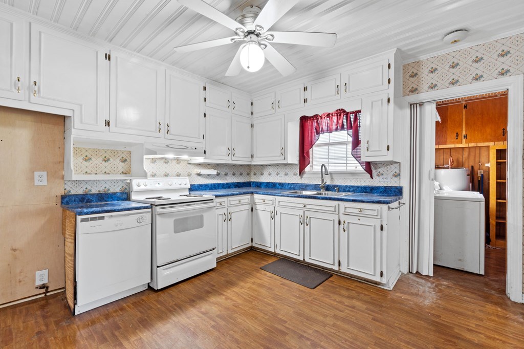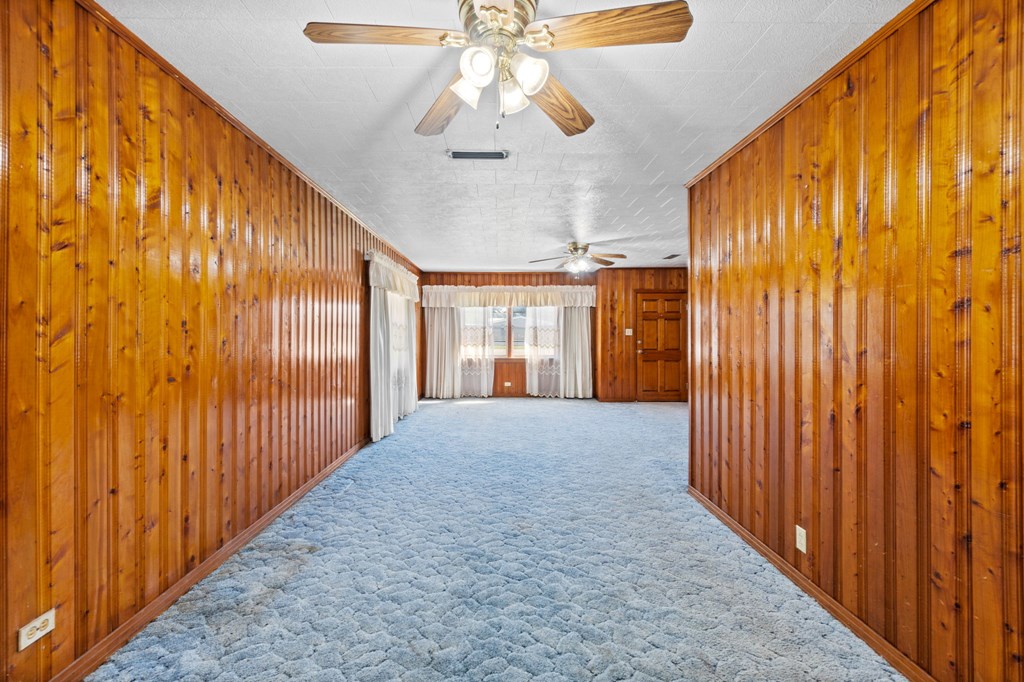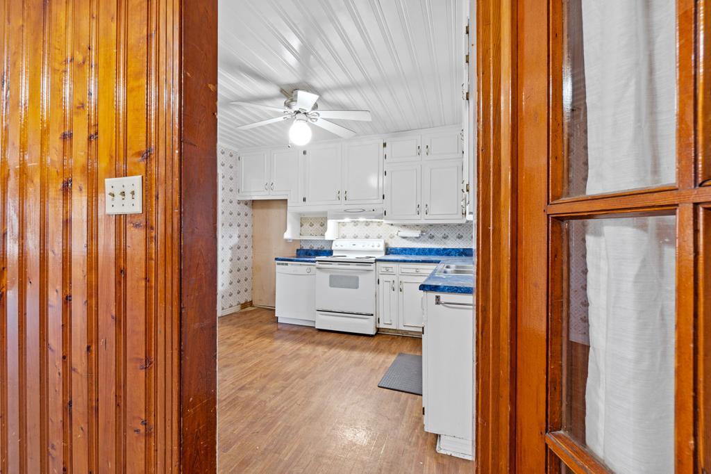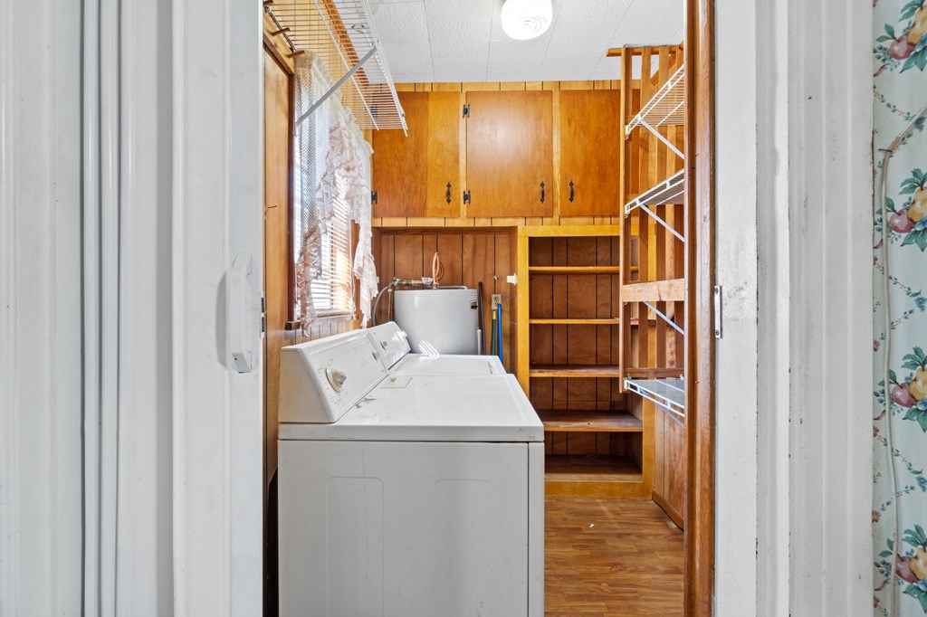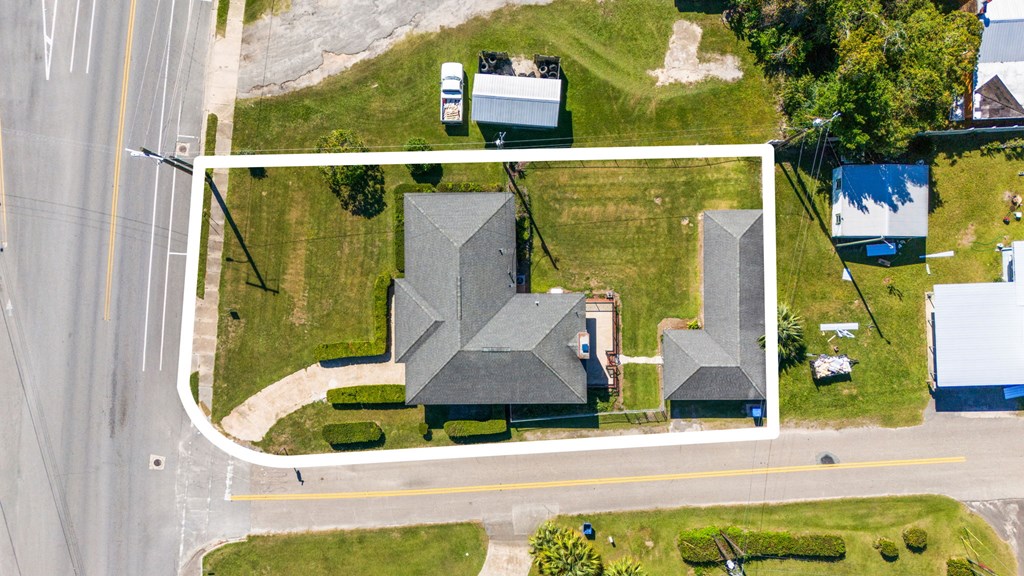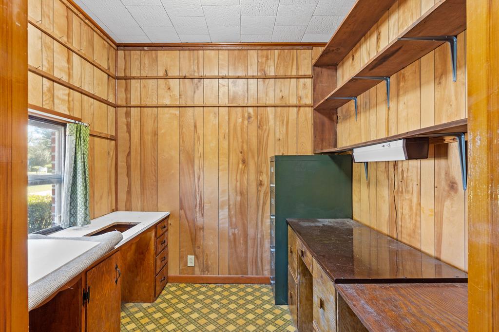 Welcome home to this single owner 3 bedroom, 2 bath brick residence in the heart of downtown Wewahitchka, offering tranquil views of Lake Alice. Comfortably set on just over a quarter of an acre, this solidly constructed home features concrete block walls and timeless details throughout. Classic oak hardwood floors (under carpet) and tongue-and-groove walls lend warmth and character to much of the interior, creating a welcoming sense of nostalgia. The kitchen offers ample workspace and connects seamlessly to the laundry area, which provides a large pantry space and additional storage. An expansive living room addition serves as the perfect gathering spot, featuring a cozy wood-burning fireplace and direct access to the open patio, ideal for relaxing or entertaining. A versatile office or hobby room extends the home's functionality, allowing room for creative pursuits or remote work. Outdoors, the chain-link fenced backyard offers plenty of space for pets or gardening, complemented by an additional carport, workshop, and outdoor kitchen setup. From its enduring craftsmanship to its convenient downtown location, this home captures the charm of small-town living with room to make it your own.