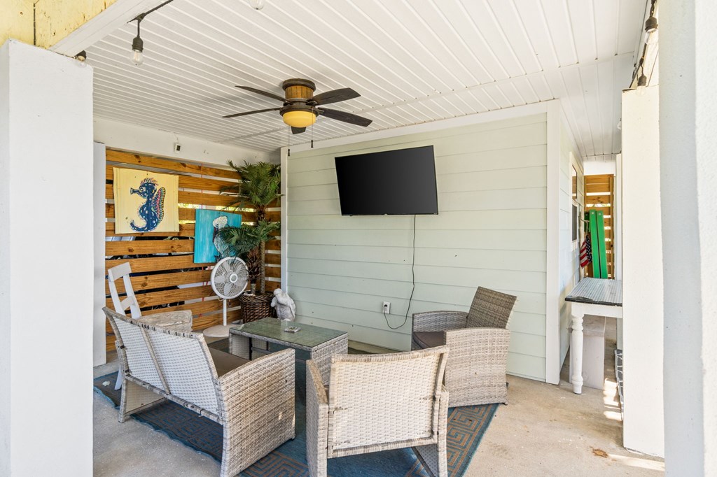 This immaculate 3-bedroom, 2-bath home offers the perfect blend of comfort, charm, and income-producing potential—just one block from the Gulf and a short ride to the heart of Mexico Beach. Located on a quiet dead-end street with no HOA, this well-maintained property is ideal for full-time living, a vacation getaway, or a short-term rental.Outdoor living is a dream here: relax on the wraparound porch, gather around the firepit in the privacy-fenced backyard, or enjoy quiet moments in one of the home's cozy garden nooks. The lush landscaping includes mature fruit trees and tropical plants, all kept vibrant by a well-fed sprinkler system. A peek-a-boo view of the Gulf adds a touch of coastal magic, and the large storage area underneath provides ample space for beach gear, an extra refrigerator for soft drinks and more. Bonus: the street legal golf cart and commercial ice maker convey with the sale! For your guests convenience there is a 50AMP Plug for an RV or Camper. Mexico Beach awaits with its sugar-white sand, crystal-clear water, and laid-back vibe. Stroll along miles of scenic sidewalks, grab a coffee at Caribbean Coffee, browse local gift shops and the candy store, or explore the growing dining scene with new restaurants opening soon. Whether you're biking, walking, or cruising in your golf cart, the area offers a relaxed coastal lifestyle that's hard to beat.This turnkey home is priced to sell and packed with features that make it a standout investment. If you're looking for a beachside retreat with character, convenience, and income potential—this is the one.