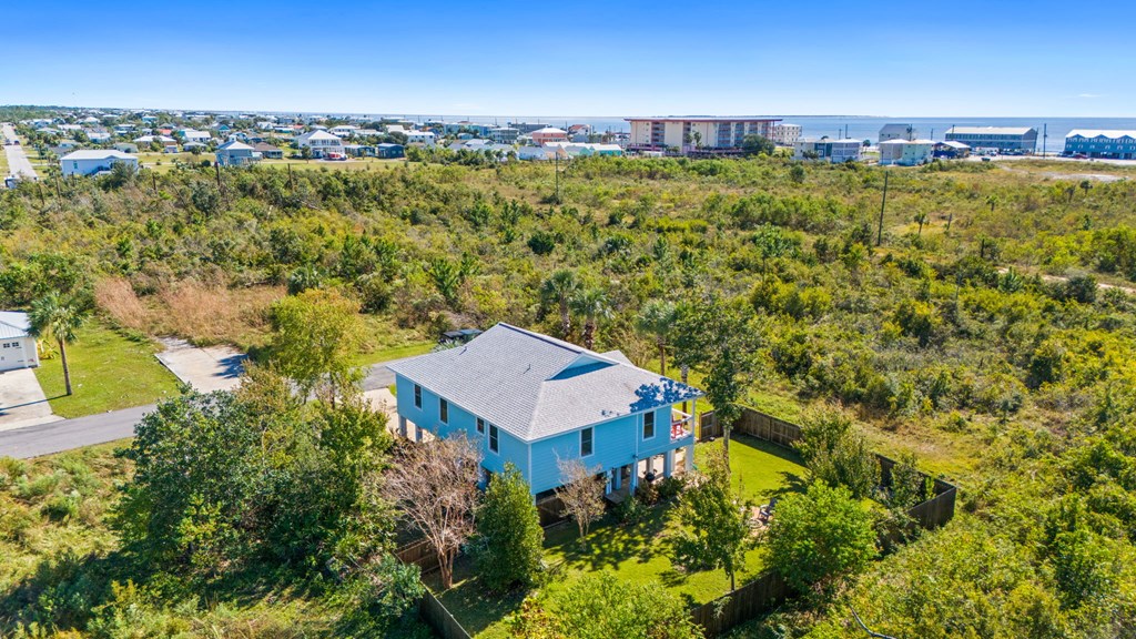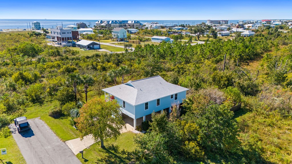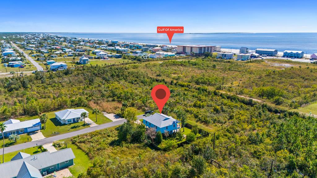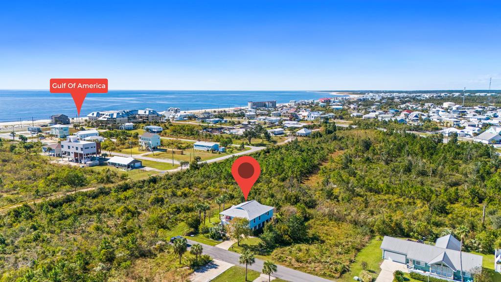From Hwy. 98 in Mexico Beach turn north on 15th St. and take the first right onto Hatley Dr. House is at the end of the street on the right.