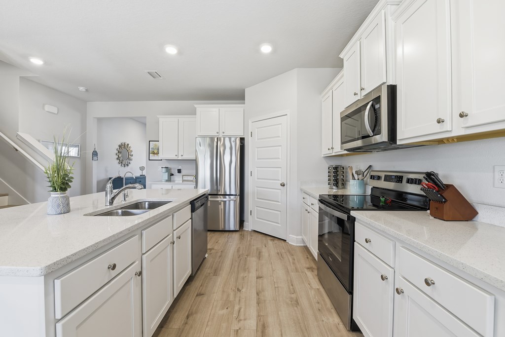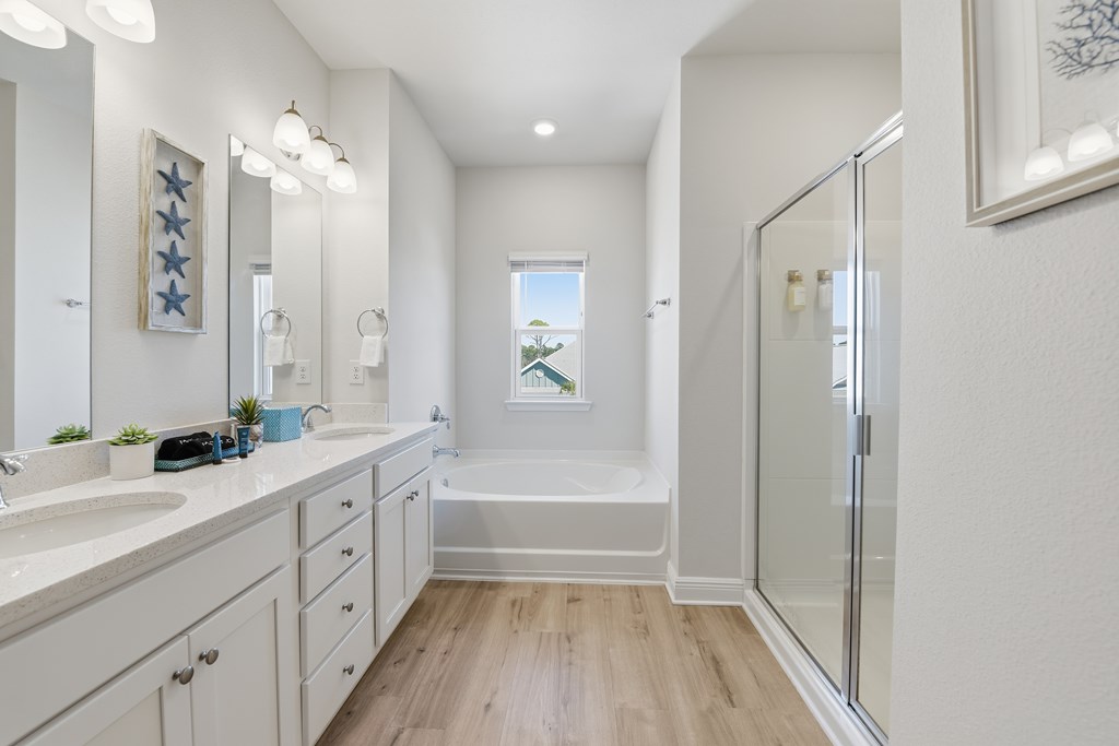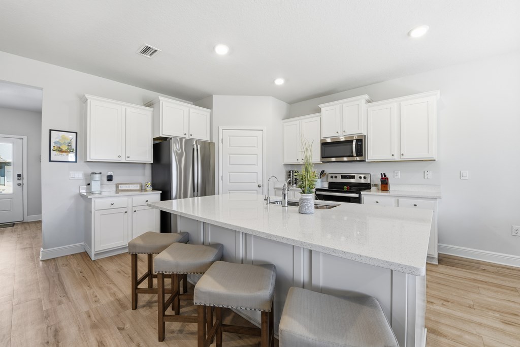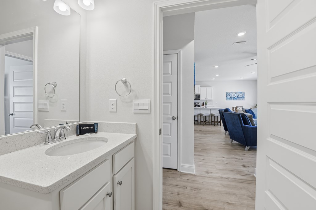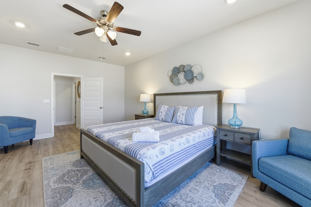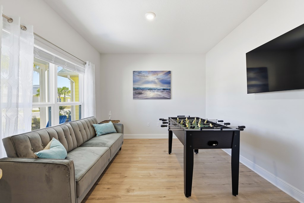 Luxury Coastal Living in WindMark Community - Welcome to 138 Pond Cypress Cove, a rare opportunity to own a fully furnished, turnkey coastal masterpiece in the highly sought-after WindMark Beach community. Perfectly positioned on a quiet cul-de-sac, this five-bedroom, three-bath Carol floorplan redefines coastal living with generous spaces, refined finishes, and effortless charm. Just beyond the backyard, residents can enjoy a short stroll along the boardwalk leading directly to the beach or spend sunny afternoons at the gorgeous community pool, located just steps away. From the second-floor bedrooms and bonus flex space, you'll enjoy peaceful, picturesque views of the water, creating the perfect backdrop for relaxation. Designed to comfortably accommodate up to twelve guests, this spacious retreat is ideal for personal enjoyment, a second-home getaway, or a profitable short-term rental investment. The main level welcomes you with an open-concept living area filled with natural light, enhanced by 9-foot ceilings that create an airy, spacious atmosphere and elevate the home's sense of openness throughout. The heart of the home is the beautifully appointed kitchen, featuring white cabinetry, quartz countertops, stainless steel appliances, and an island with seating—perfect for entertaining family and friends. A versatile multi-purpose room on the first floor offers the option of a private office, media room, music room or formal dining space, while a guest bedroom and full bath provide comfort and convenience for visitors. Ascend the stairs to the second level, where you'll find four additional bedrooms, including the luxurious primary suite, which features a private sitting area, spa-inspired ensuite bathroom, and an expansive walk-in closet. A shared bath and a spacious upstairs flex or lounge area offer plenty of room for everyone to unwind and take in the serene water views from above.