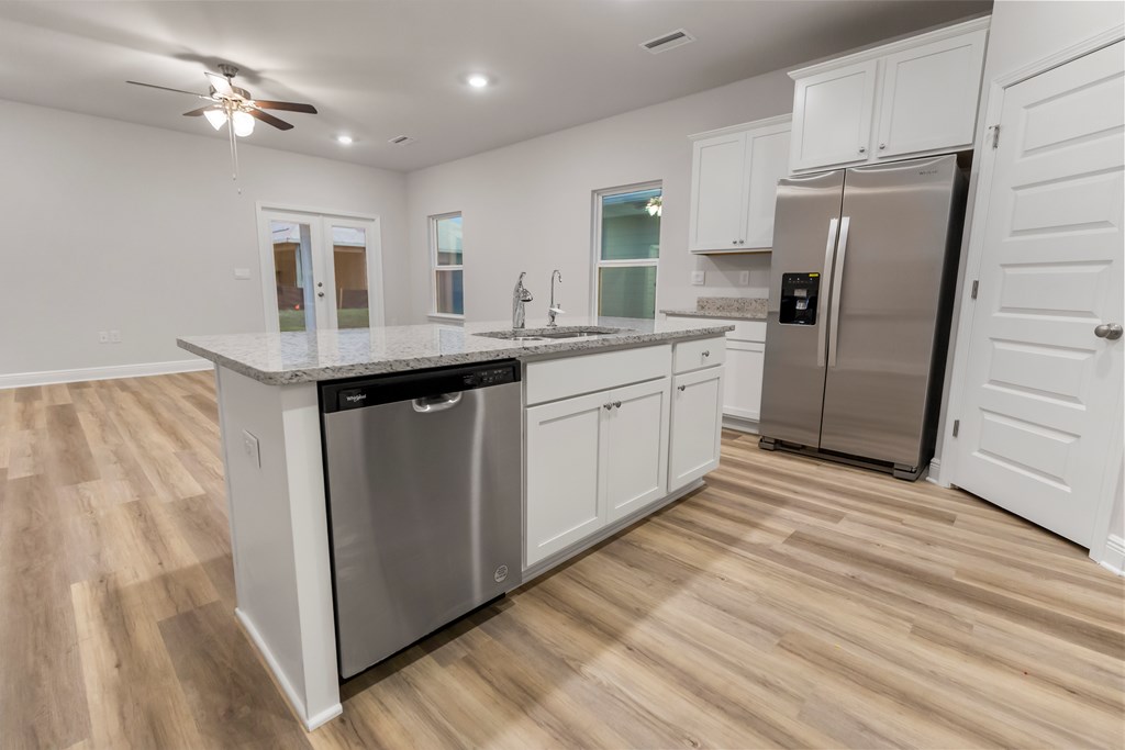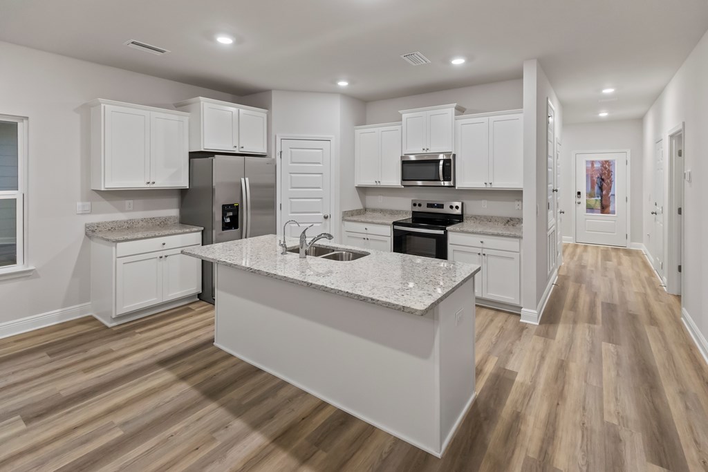 Discover coastal living at its finest with 512 Vermillion Circle, a stunning Kennedy floor plan home located in the picturesque WindMark Beach community of Port St. Joe, Florida. This beautifully designed residence seamlessly blends modern elegance with coastal charm, featuring an open-concept layout highlighted by soaring 9-foot ceilings and abundant natural light. The chef's kitchen boasts sleek granite countertops, under-mount sinks, and stylish 5-panel wood doors, all set atop durable engineered vinyl plank flooring that flows throughout the home's spacious 4 bedrooms and 3 bathrooms. A private mother-in-law suite, complete with its own entrance, full kitchen, bedroom, bath, independent climate control, and laundry area, offers versatile living options perfect for extended family or potential rental income. Beyond your doorstep, WindMark Beach offers deeded beach access, scenic boardwalks, miles of trails, a resort-style pool, a state-of-the-art fitness center, charming shops, delightful restaurants, and secure, friendly neighborhood vibes. Embrace a lifestyle of relaxation, convenience, and natural beauty in this exceptional home and vibrant community.