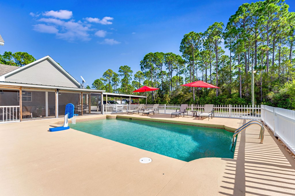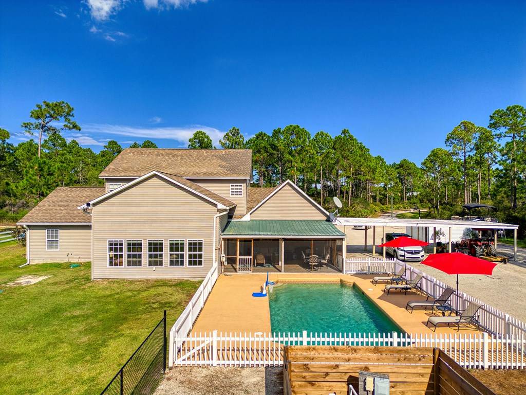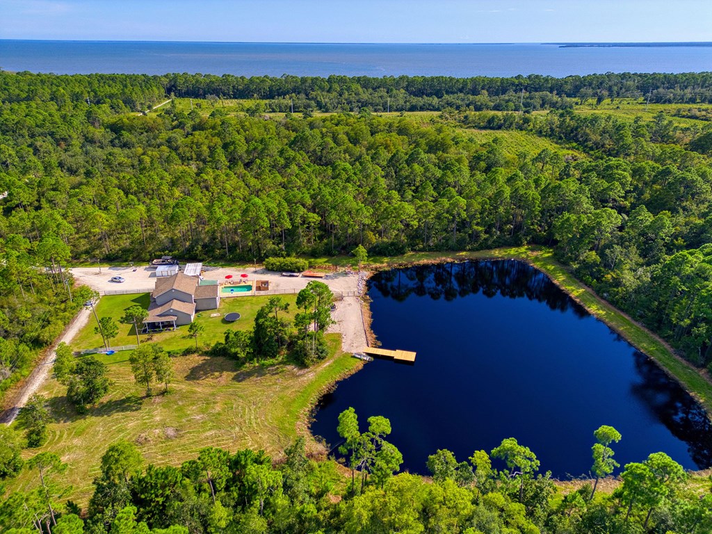 A Rare Opportunity to own a Large 5 Bedroom Home with an inground swimming pool, and a Private 2 Acre Lake! 35ft deep! No Flood insurance required! This really is a once in a lifetime type of residence only appx 4 miles from downtown Apalachicola, and 15 minutes from St. George Island. Home features Vaulted ceilings in the Living room, 5 Bedrooms, 2 Large Bathrooms, and a Huge Bonus Rec room. Home features mostly wall to wall beautiful real hardwood floors, and Tile in the Bathrooms. Kitchen has tremendous amount of space for entertaining guest, with tons of cabinet space, and a custom stacked stone Backsplash for a high-end feel. 3 Bedrooms are located on the 1st floor, with the Master and 5th bedroom/office on the 2nd floor. Master Bathroom has dual vanities, whirlpool jetted tub, and a newly renovated custom tile shower with pebble stone flooring! Front Porch with gorgeous landscaping sweeps around the front and side of the house for a cool breeze. An additional large Screened in porch with custom Ceiling Fans and sitting and dining area is located at the rear of the home. Enjoy beating the heat with your own private fenced inground pool, or splash off into the 35ft deep 2 acre lake! Pond is exclusive for this property only, and is loaded with Bass, Catfish, Bream, warmouth bass, crappie, and more! Tons of wildlife, deer, raccoons, and more surround this area. Perfect for the pet lover as a high-end 5ft black chain-link fenced covers 3 sides of the home all the way down into the pond! Your kids and pets will thank you for all the space to run and play in a safe fenced in area. Search the county and you won't find another property like this one. Don't miss your opportunity to own 4 acres backed up to 100s of acres of woods in Apalachicola, Florida, and only minutes from the Beaches of St. George Island and downtown Apalachicola Shopping and Restaurants! Call for a showing today!