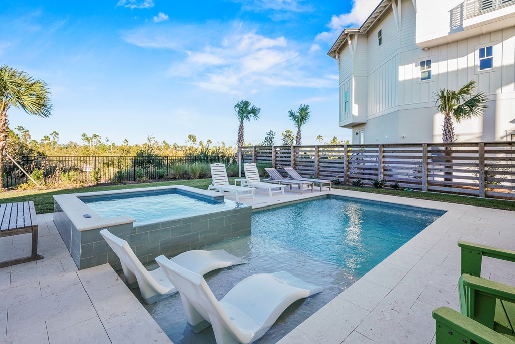 Experience beachside living at its best in this stunning five bed, five and a half bath custom home in the heart of Sugar Sands. Designed for laid back luxury, this home delivers resort style comfort on every level with elevator access to all floors. Inside you'll find a spacious open layout made for gathering and relaxing. The main living area features a chef's kitchen with high end appliances, a large dining space, and a cozy lounge that opens to sweeping Gulf views. Vaulted ceilings, natural light, and calm coastal dcor make it the perfect place to unwind or entertain. Each bedroom suite feels like a private retreat, complete with soft tones, elegant finishes, and spa style baths. Step outside and you're in your own resort paradise with a private heated saltwater pool and spillover spa surrounded by a fenced coastal garden. Multiple Gulf view decks invite you to enjoy morning coffee, sunset cocktails, or dinner under the stars. The outdoor kitchen with grill and ice maker makes hosting a breeze. Extras include covered parking, an outdoor shower, and a convenient poolside half bath. Residents also enjoy access to the Sugar Sands community pool and gym, golf cart friendly paths, a scenic boardwalk with cart parking, and plenty of overflow parking. This home captures the best of Gulf living with thoughtful design, incredible views, and unmatched comfort. Schedule your private showing today and start living the beach life.