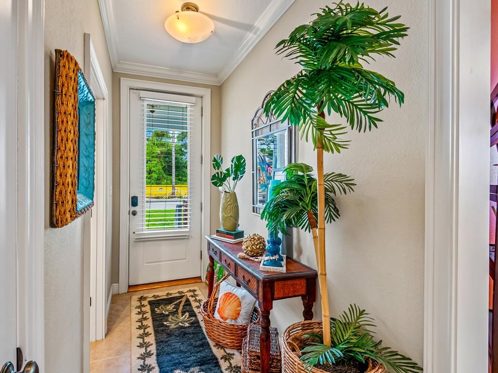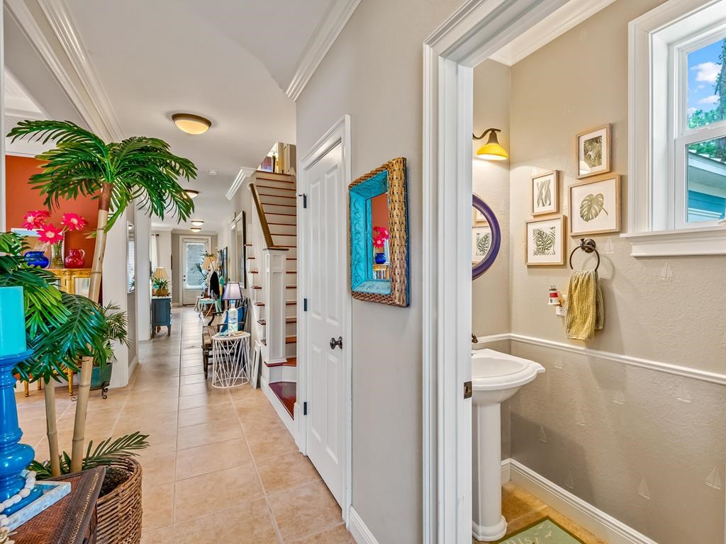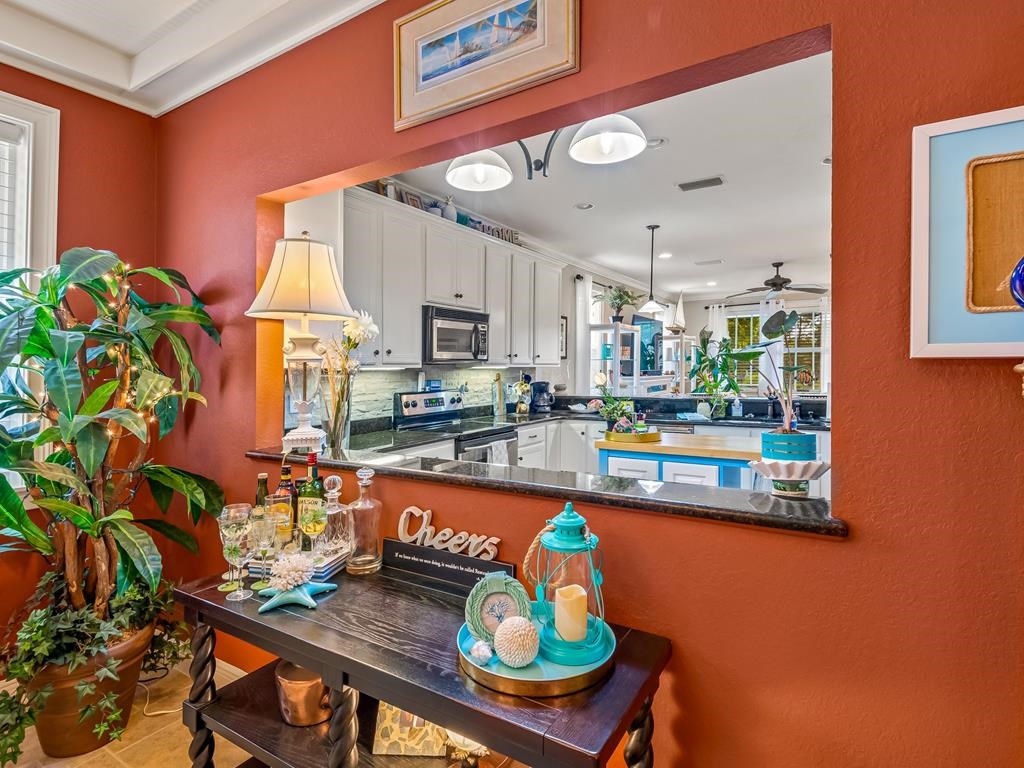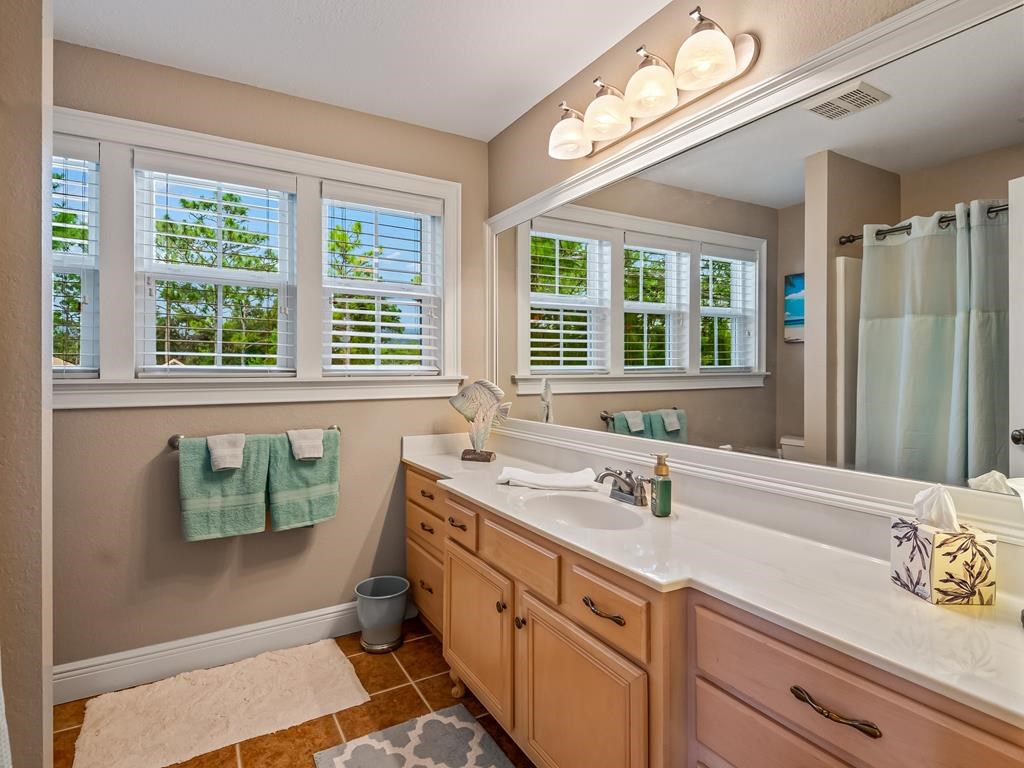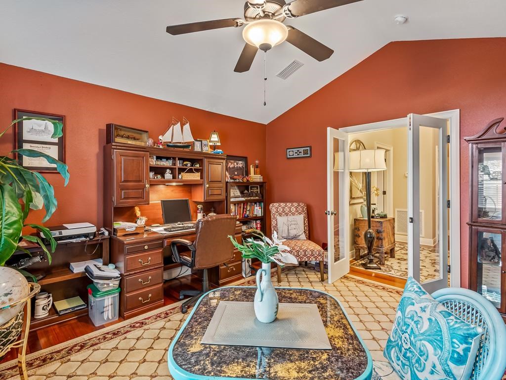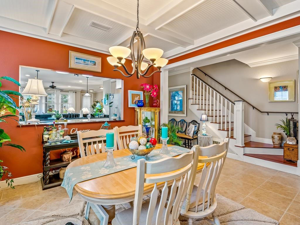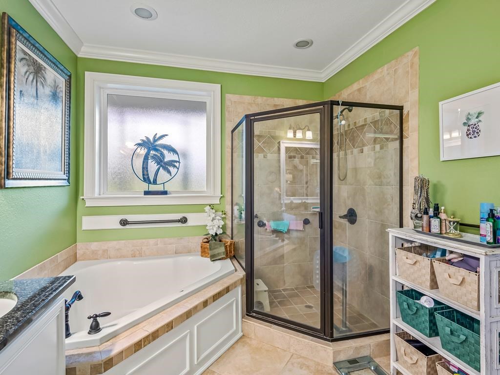 Beautiful Craftsman style custom designed and built home, located in the award-winning St. James Bay Golf & Pickleball Resort Community. This home offers an outdoor paradise with stunning views of the 14th green from both the large screened in back porch and the upstairs screen enclosed balcony. Features of this home include a welcoming covered screened front porch for entertaining guests and a downstairs master suite with dual sinks and granite countertops with a large walk in closet. Immaculate interior with crown molding, coffered ceilings, tile and cherry wood floors throughout living areas. Upstairs flex room for work at home office, craft space, or fourth bedroom. Stainless steel appliances complement the custom kitchen island and granite countertops. The finished attic is perfect for tons of additional storage. Recent updates include: HVAC(2025), stainless steel refrigerator(2024), exterior home painted(2023), second floor screened balcony(2024), professionally painted kitchen cabinetry & new stone backsplash(2023), custom screened front porch blinds(2024). You'll also enjoy private bay access to Bayfront Park owned by the POA with pavilions and dock, only 1/4 mile from your new home, and a stunning community beach with full amenities only a short 15 minute drive away. You will also have full use of a fenced in storage area owned by the POA, for all your recreational toys. St James Bay offers full and social memberships to the club amenities, including, golf course, community pool, pickleball courts, fitness center, etc. This is truly coastal living at its finest. Call today for your private tour.