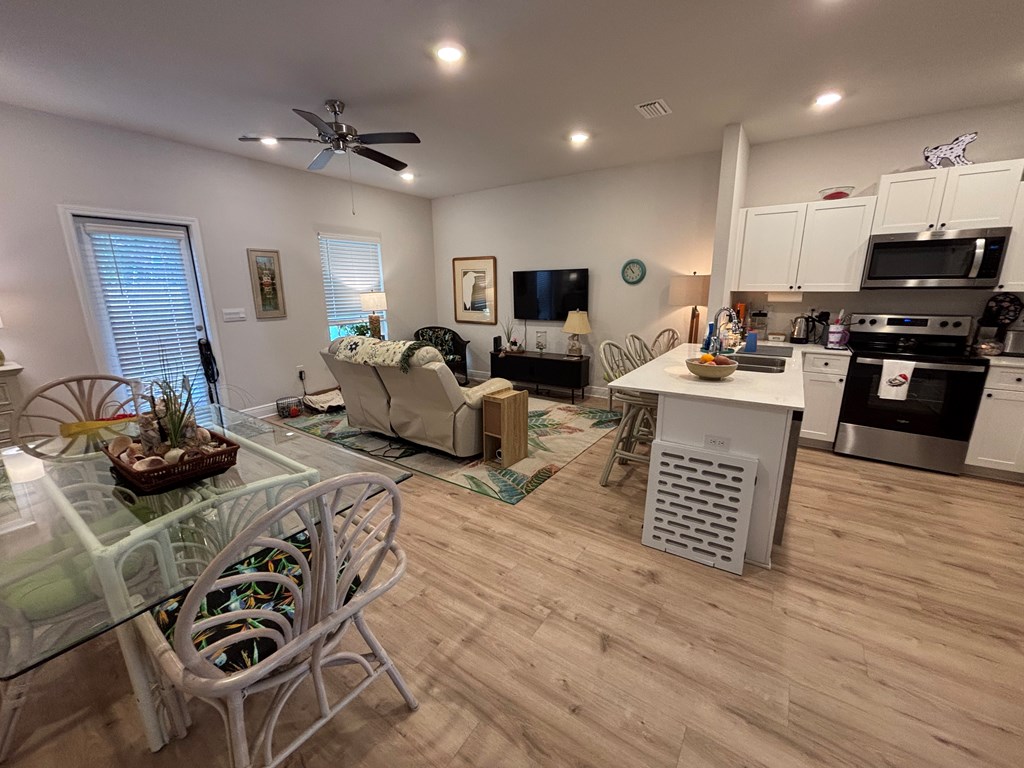 Built in 2023, this Newer Town home is located in a quiet neighborhood of Greater Apalachicola. All Whirlpool appliances remain with the property. Quartz countertops throughout. Berber carpet and Luxury Vinyl cover all the floors. Recessed lighting, Carrier AC, and ceiling fans with lights are a few of the features. This 3 bedroom 2.5 bathroom home offers comfortable living space for a couple or a family. The attached garage is a bonus for your golf cart or vehicle. Five minutes to the center of town or to the bay. 15 minutes to St. George Island and gorgeous Gulf Beaches. Apalachicola is a fun filled village with Mom and Pop boutiques, eclectic stores, restaurants, bars, music and a variety of entertainment. Take a leisurely walk along the waterfront and admire the coastal vessels docked alongside. A great place to live and play. 3/4 million acres to the North is State and National Forest perfect for hunting, fishing, hiking, boating and exploring. This newer town home is in excellent condition leaving you plenty of leisure time to enjoy your life on the Forgotten Coast.