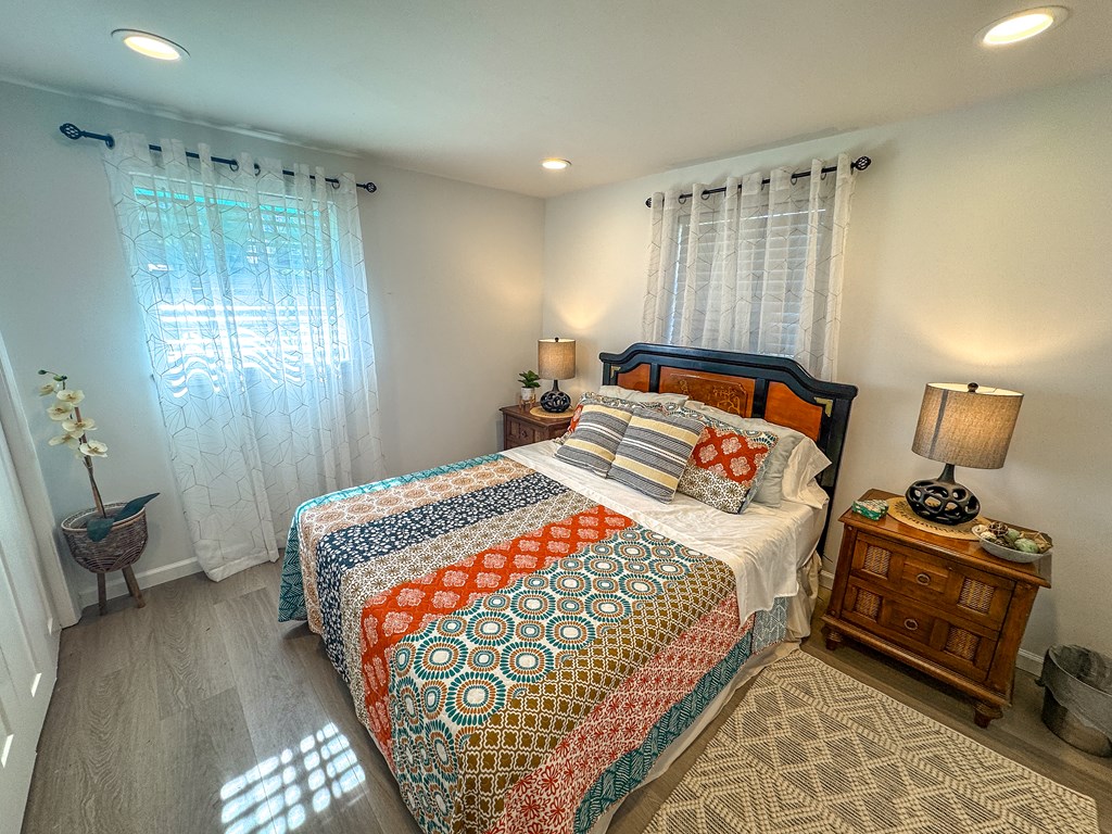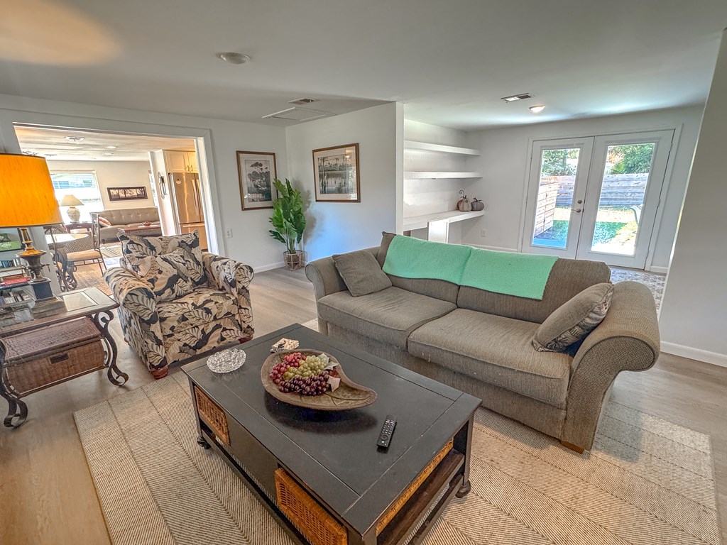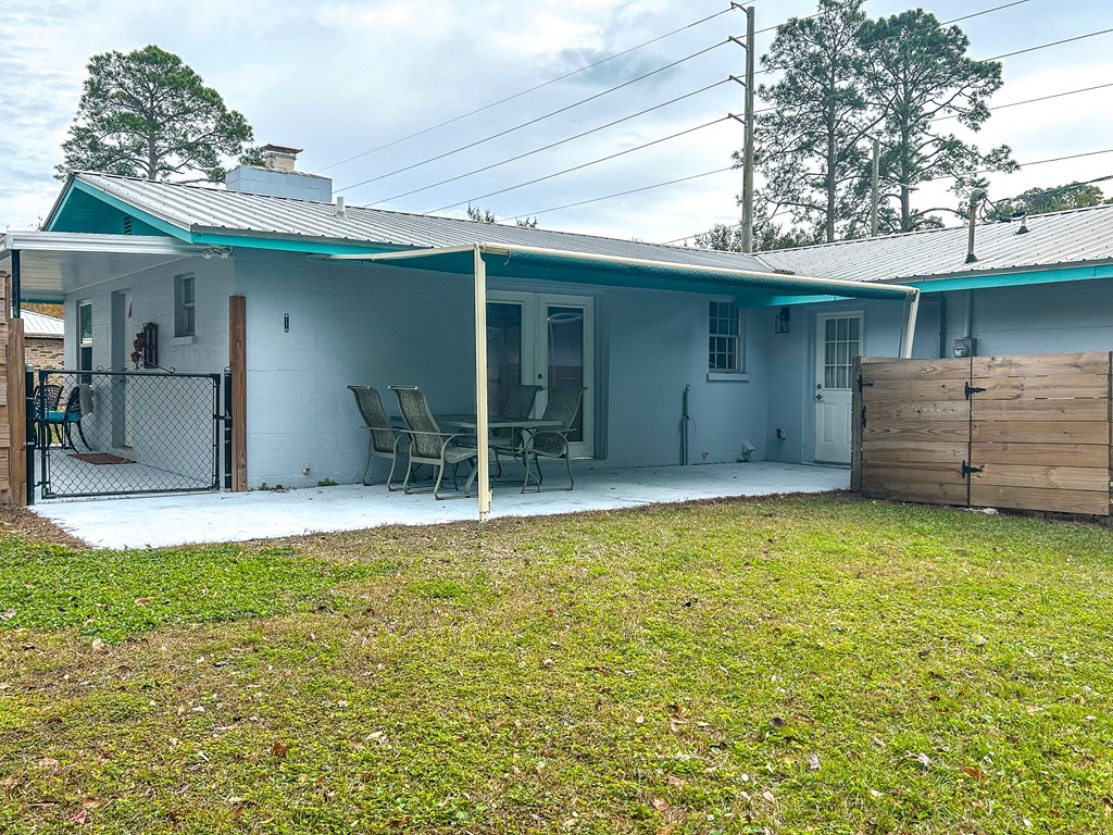 Beautifully renovated 3-bedroom, 2.5-bath home situated on three spacious corner lots in a X flood Zone. This home underwent a complete renovation in 2018, featuring a new roof, updated electrical and plumbing (with easy attic access), new drywall, windows, lighting, and a stunning kitchen with granite countertops, pull-out soft-close cabinetry, and under-cabinet lighting. Luxury vinyl plank flooring was installed throughout in 2023. Additional upgrades include a Rinnai gas tankless water heater, R/O system, and owned water softener. The A/C handler was replaced in 2024 for added peace of mind. A large office with a full bath offers excellent flexibility and could easily be converted into a 4th bedroom, with direct access to the backyard patio. The fully fenced backyard is perfect for outdoor enjoyment. Fantastic location—just a short golf cart ride to downtown Apalachicola, and a golf cart is included with the purchase! 4 Point and Wind Mit Inspection uploaded in Doc's.