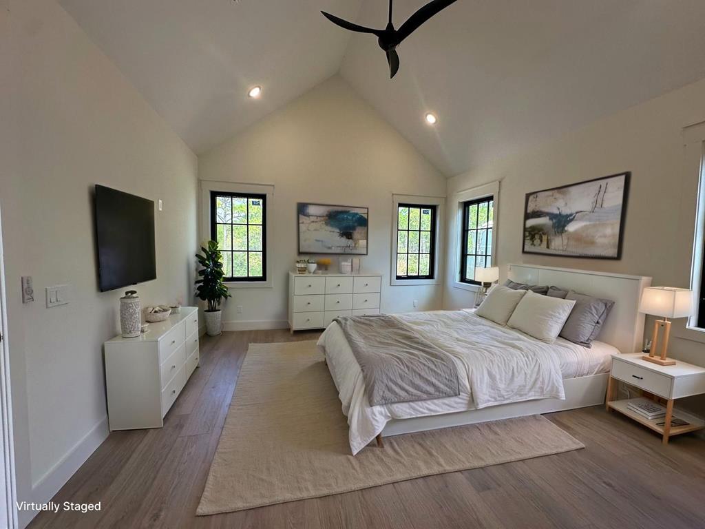 NEW CONSTRUCTION! This custom build at Summer Camp Beach is a true showstopper, designed with exceptional attention to detail and high-end finishes. Its striking curb appeal includes composite decking, aluminum rails, extra-wide steps and iron double doors. The alabaster exterior with tricorn black trim creates a modern look, complemented by a beautifully landscaped yard. Inside, wide-plank LVL flooring, 8-foot doors and upgraded trim enhance the space. Blown-in wall insulation ensures superior efficiency. The chef's kitchen features quartz countertops, a solid wood pantry with custom shelving and dedicated plug-ins. The family room boasts a custom feature wall with an electric fireplace, high-low tv outlets and floor outlets. A grand Turkish chandelier adorns the entryway. French doors lead to a 600 sq ft screened porch with stone tile flooring. The master suite includes vaulted ceilings, custom walk-in closet, and barn doors leading to a flex/office. The spa-like master bath features a massive floor to ceiling tile shower, free standing tub and double vanities. The guest bedroom offers a custom closet and upgraded bath. A spacious loft/bunk room upstairs has plenty of room for additional bedding. Additional highlights include a laundry room with a sink,. A doggie room with custom dog door, high end black crank out windows with inside screens. Below, ample parking with EV charging station, utility room, outdoor shower, recreational space and beautiful views of the pond. Residents enjoy exclusive amenities like a pool, lock room, private beach and lodge, with short-term rentals permitted-making this an incredible investment opportunity. Buyer to pay Title Insurance and Closing cost.
