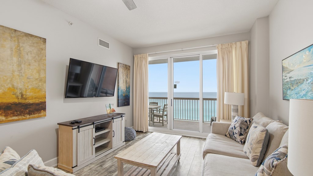 Experience beachfront living at its best in this beautifully updated condo at Sunrise Beach, where floor-to-ceiling views showcase the emerald Gulf waters and the iconic PCB shoreline. This spacious layout features 2 bedrooms, 2 bathrooms, and a full bunk room, offering the flexibility of a three-bedroom setup—perfect for guests, extended family, or maximizing rental potential. The main living area is filled with natural light, enhanced by high ceilings and seamless tile flooring that flows straight out to the oversized private balcony. Whether you're sipping your morning coffee or unwinding at sunset, the Gulf views here are nothing short of spectacular. The kitchen is designed for both style and function, complete with granite countertops, a breakfast bar, and modern appliances, while the full laundry room adds everyday convenience. The Gulf-front primary suite creates a peaceful retreat, offering balcony access and a large ensuite with double vanities, a soaking tub, and a separate walk-in shower. Guests will appreciate the comfortable second bedroom and the dedicated bunk room that makes excellent use of space. At Sunrise Beach, every amenity is thoughtfully placed on the Gulf side of Front Beach Road for effortless beach access. Enjoy two gulf-front pools (one seasonally heated), hot tubs, a splash area for kids, a fitness center, grilling stations, an owners' lounge, arcade, and high-speed elevators. With 346 feet of pristine beachfront and some of the most reasonable HOA fees on the coast, this resort feels like a true getaway. Ideally located less than a mile from Pier Park and within walking distance of dining hotspots, this condo places the best of Panama City Beach right at your doorstep. Whether you're seeking a second home, investment property, or full-time beach retreat, this Sunrise Beach beauty delivers incredible views, comfort, and convenience in one exceptional package.